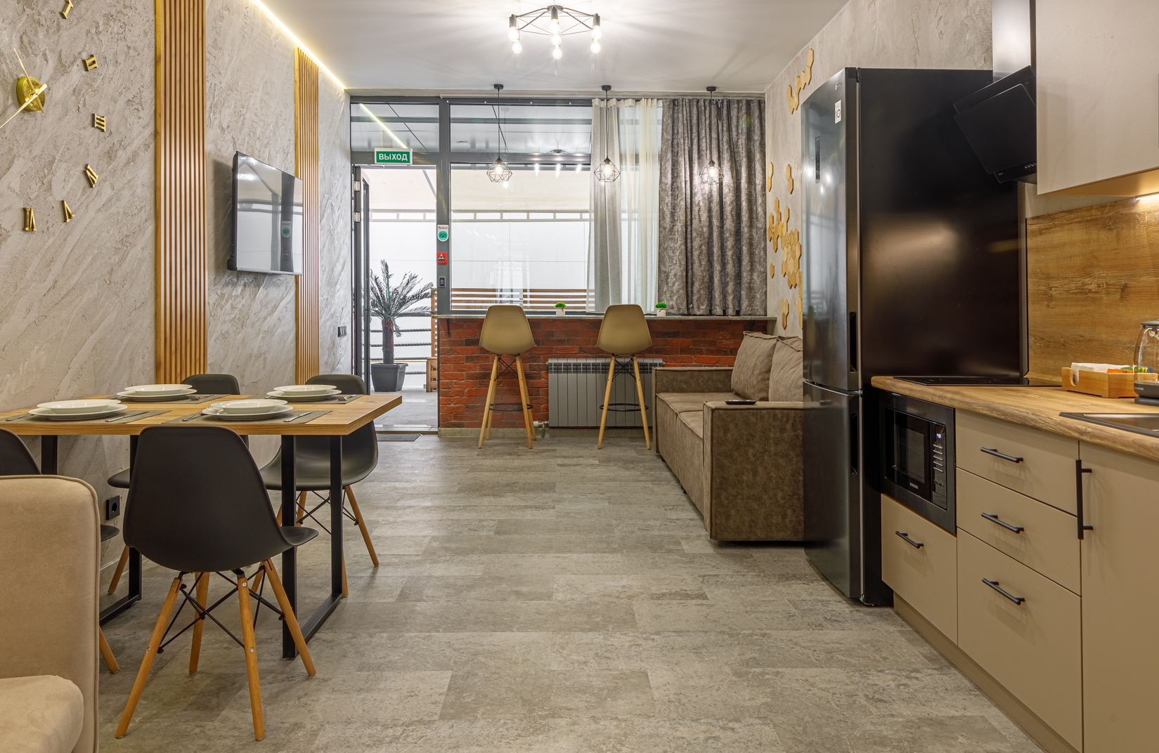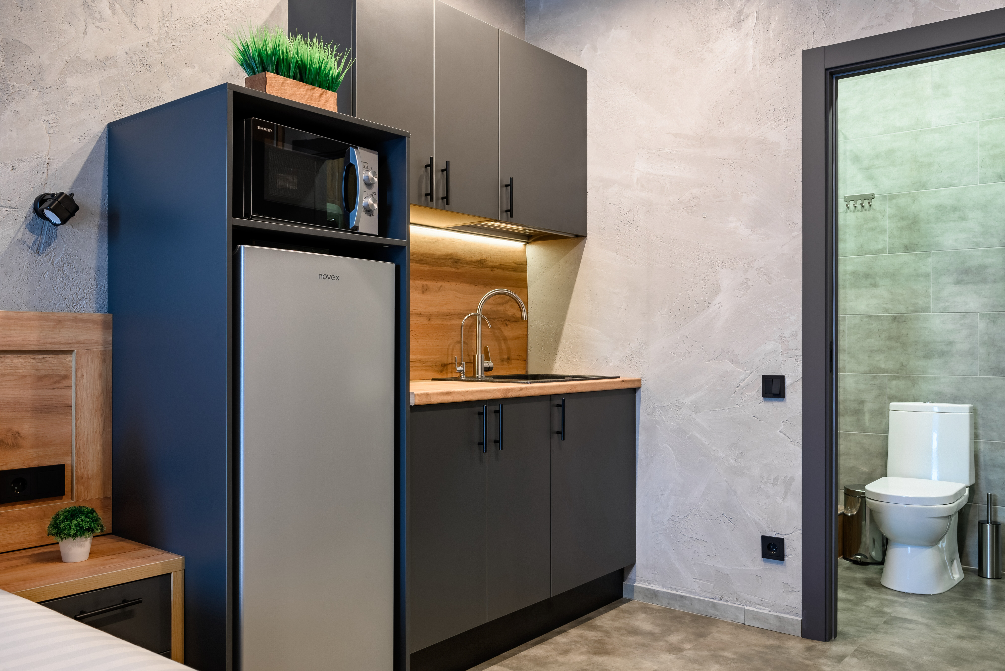 - общая кухня в хостеле, в апартаментах мини-кухня в номере