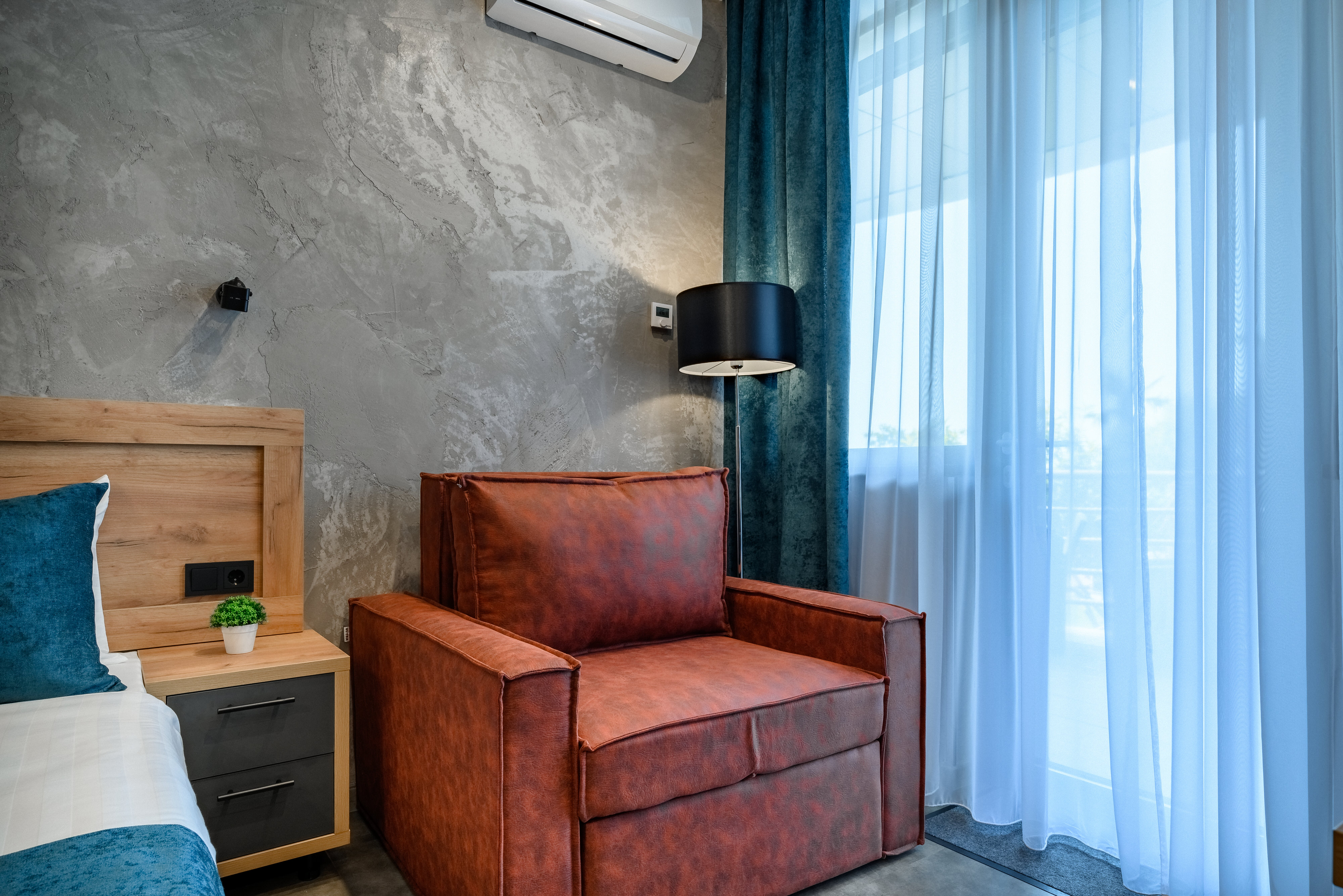 В номере: кресло-кровать, кровати односпальные /одна двуспальная кровать, прикроватные тумбочки, стол, стулья, шкаф, гладильная доска, кондиционер, микроволновая печь, сейф, стиральная машина, телевизор, утюг, холодильник