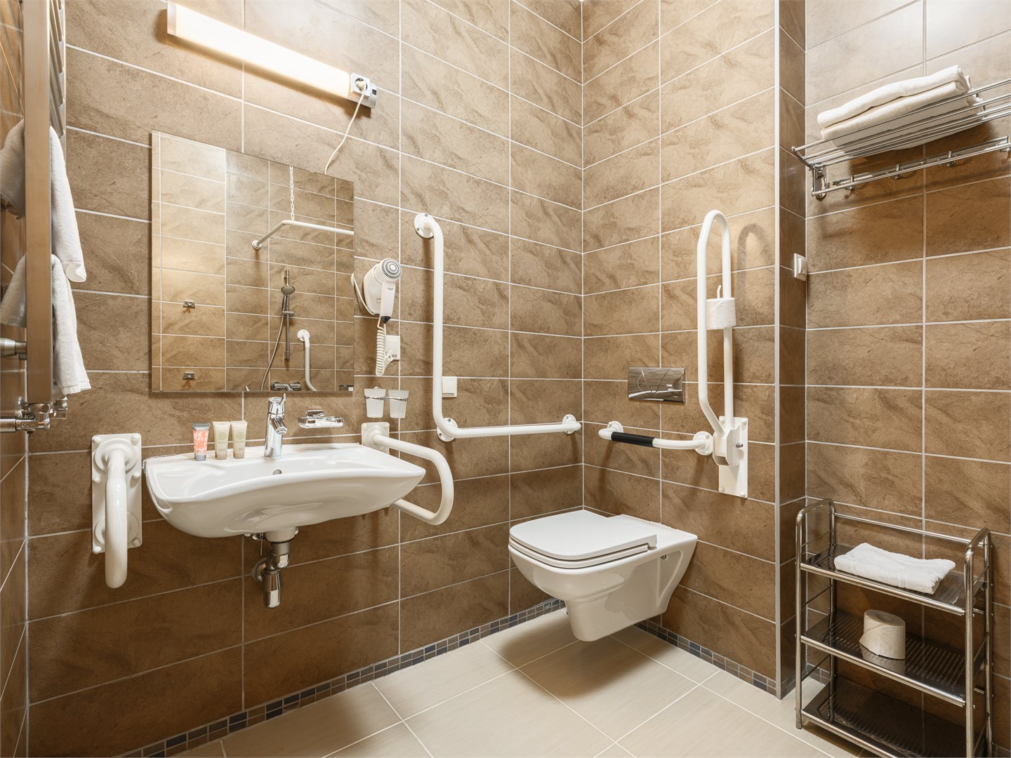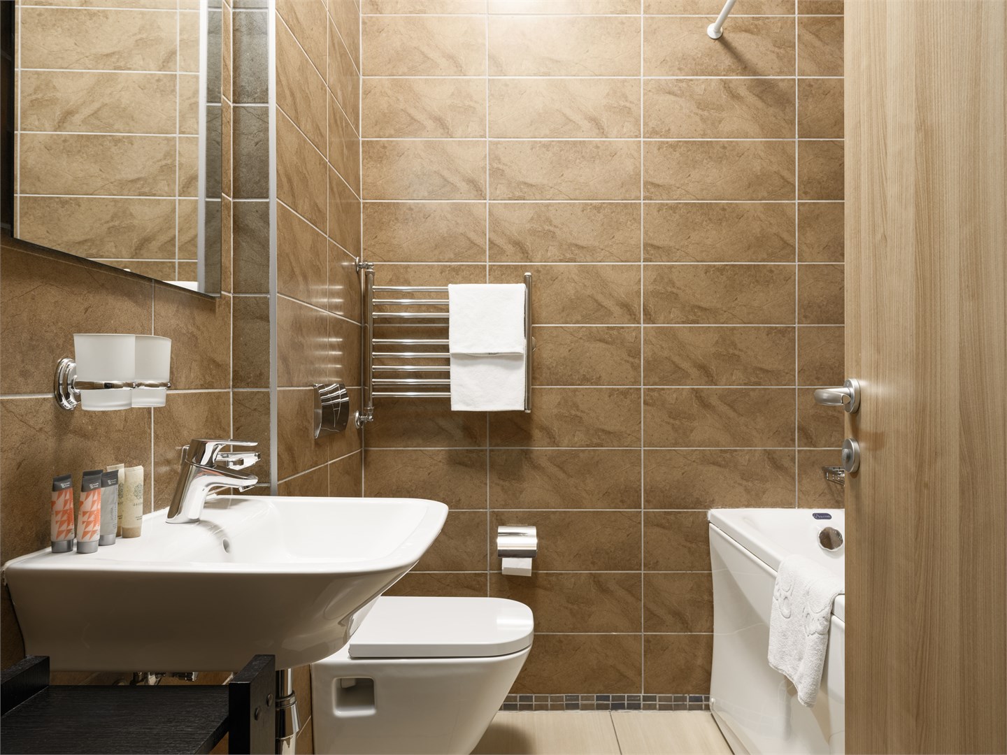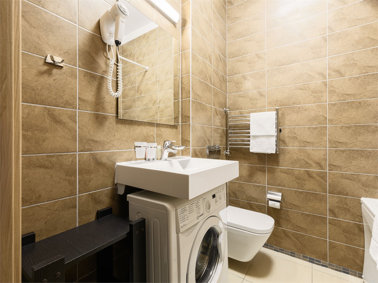 Санузел: с ванной или душевой кабиной, туалетные принадлежности, фен