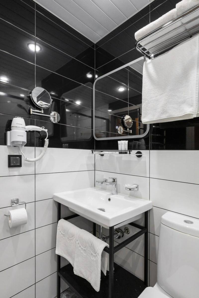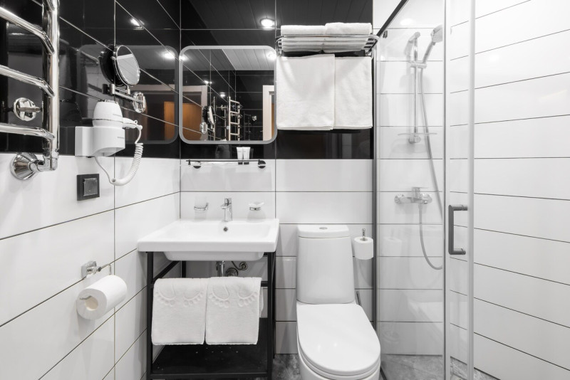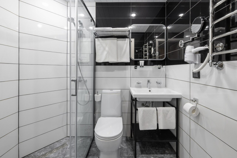 Санузел: с душевой кабиной, туалетные принадлежности, фен