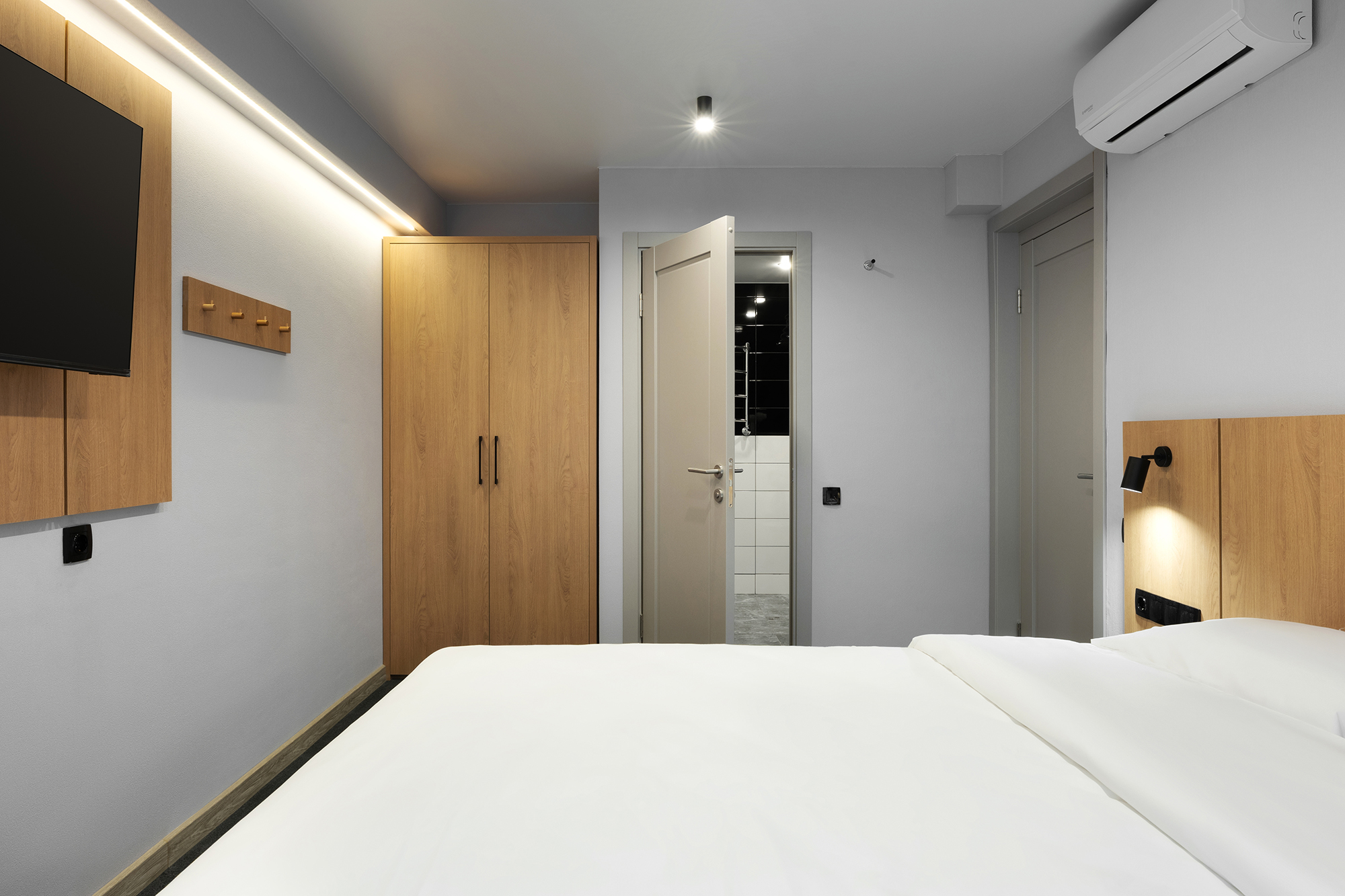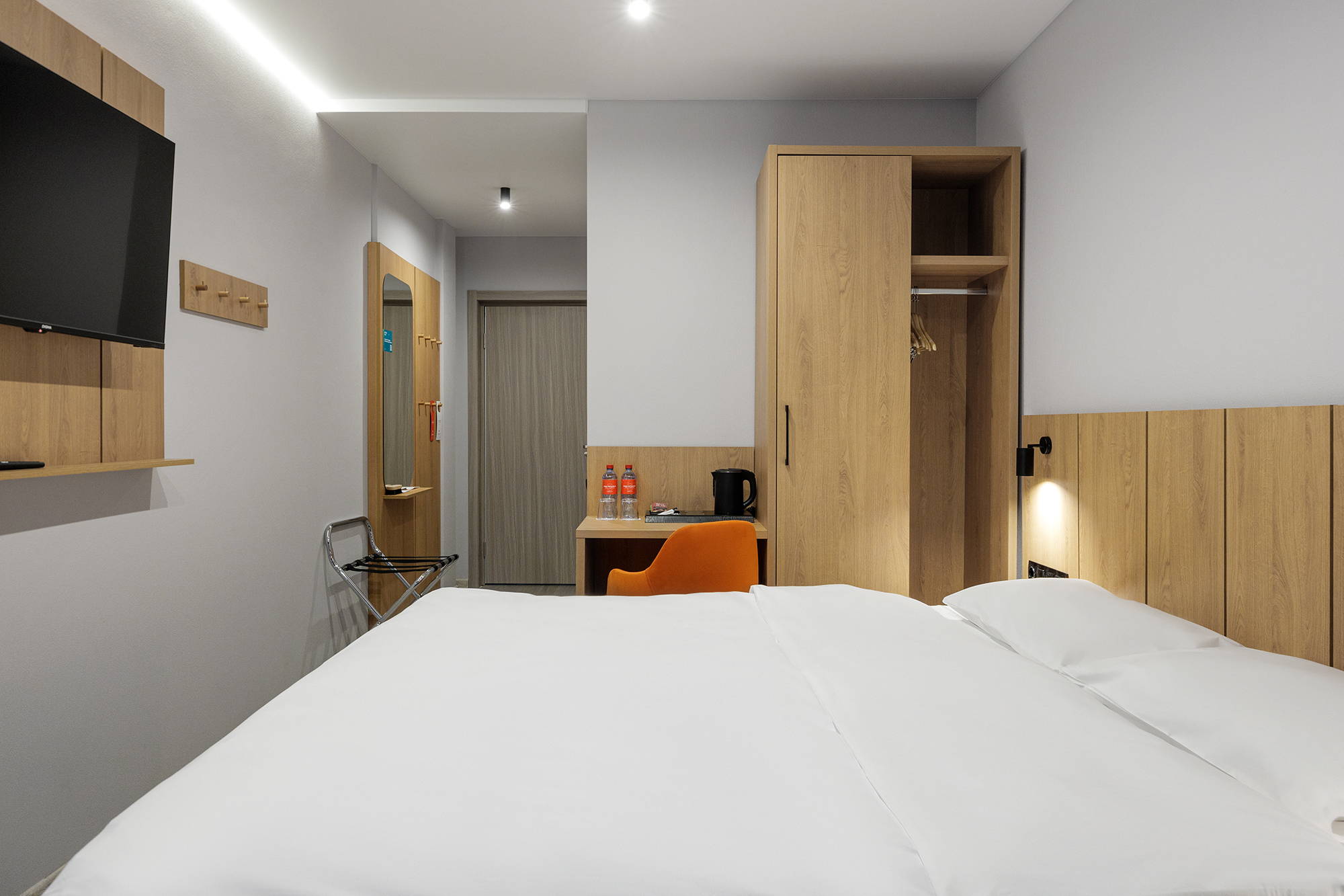 В номере: зеркало, кровати односпальные /одна двуспальная кровать, прикроватные тумбочки, стол, стул, шкаф, сейф, телевизор, телефон, холодильник, центральная система охлаждения