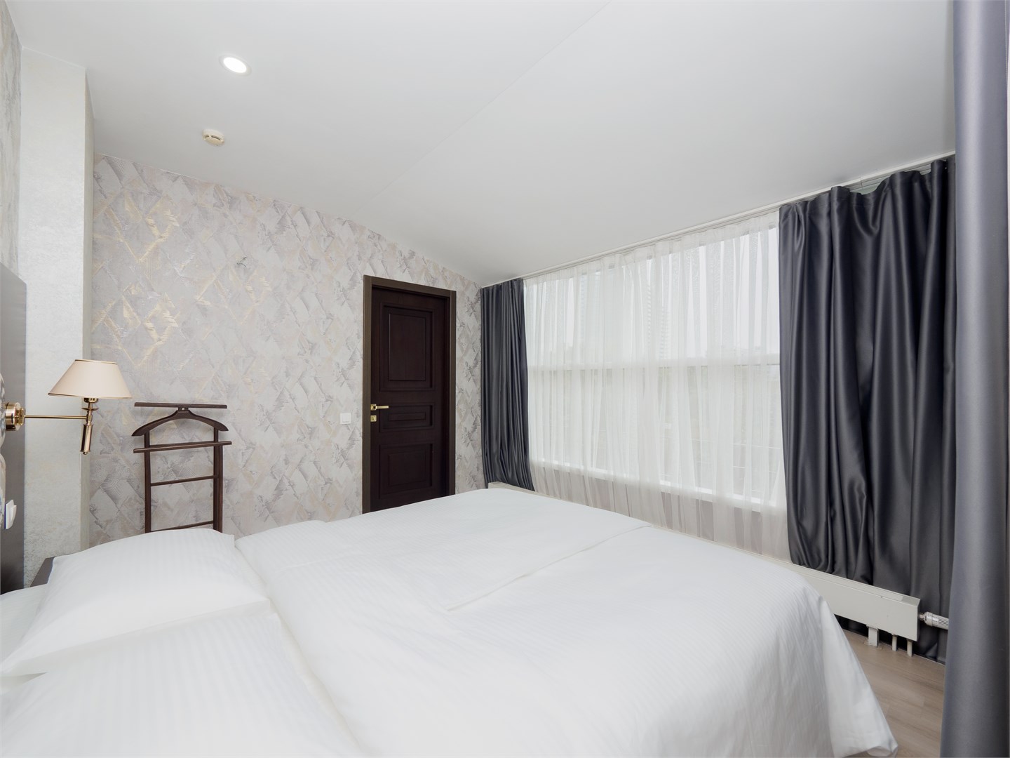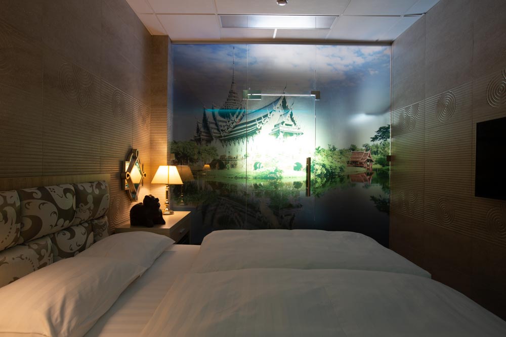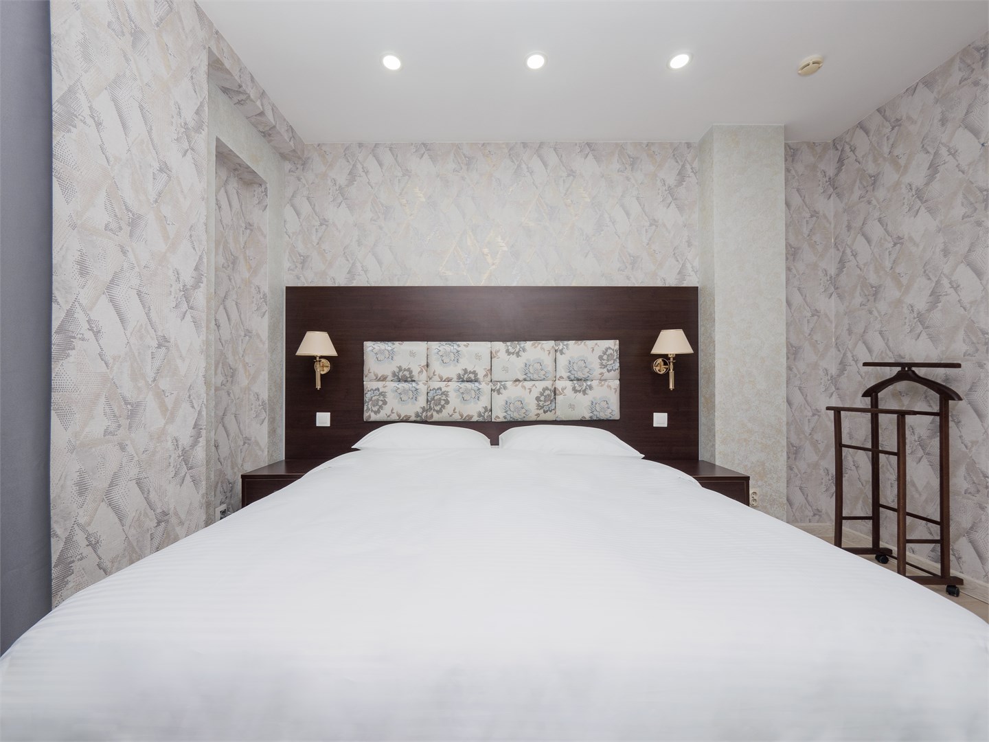 В номере: вешалка, зеркало, кровать двуспальная, стол, стулья, шкаф, мини-холодильник, сплит-система, телевизор, электрочайник