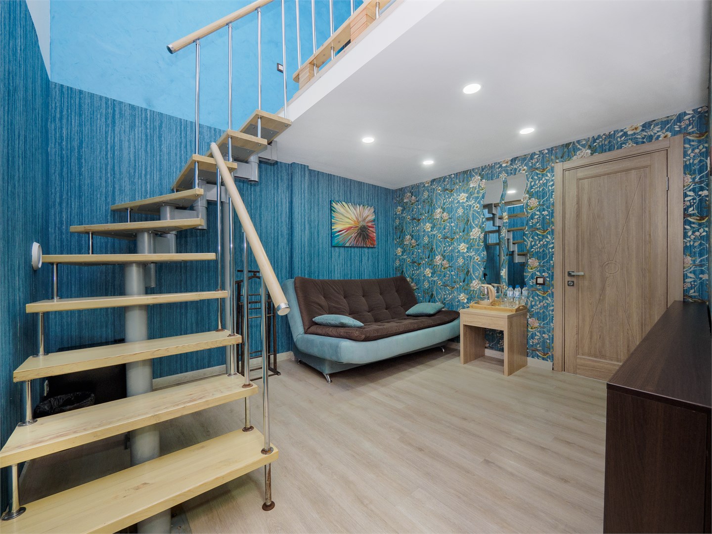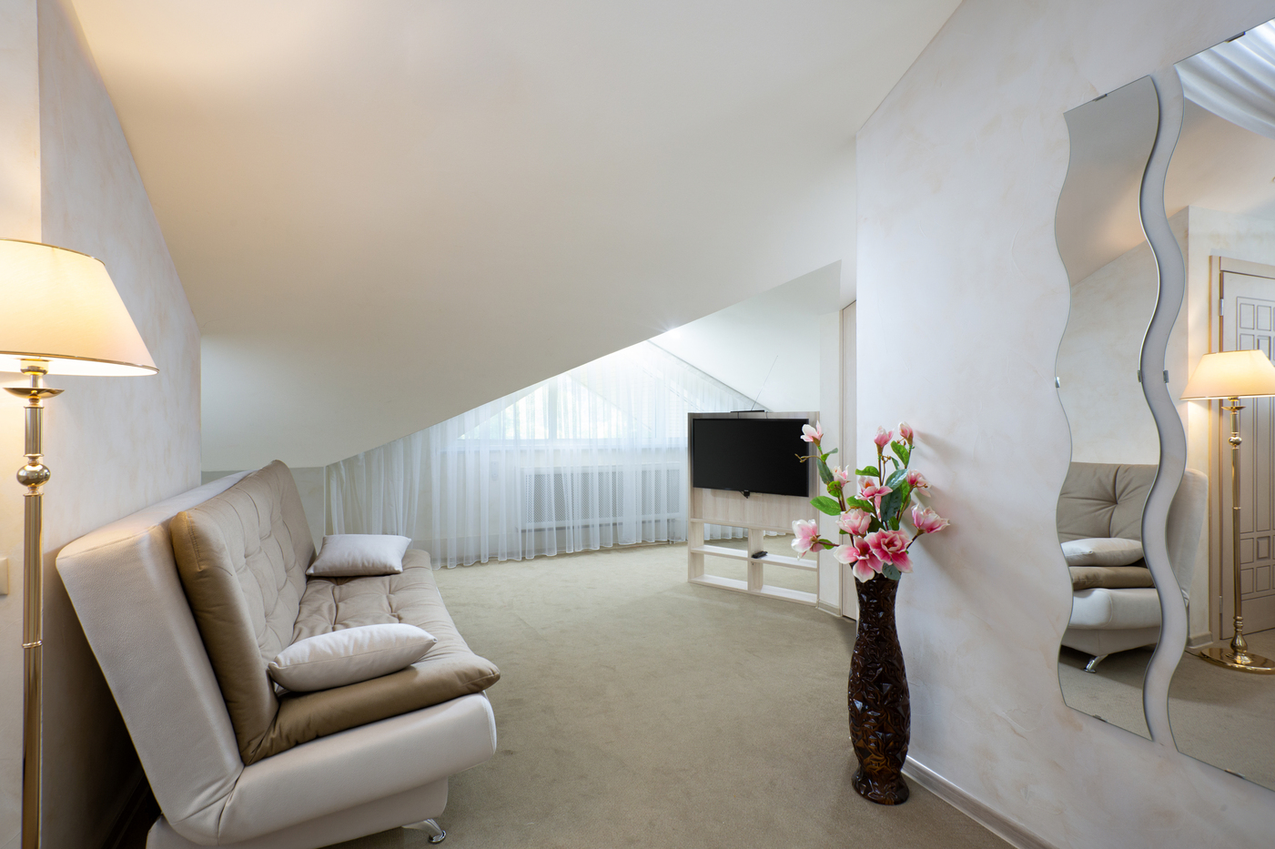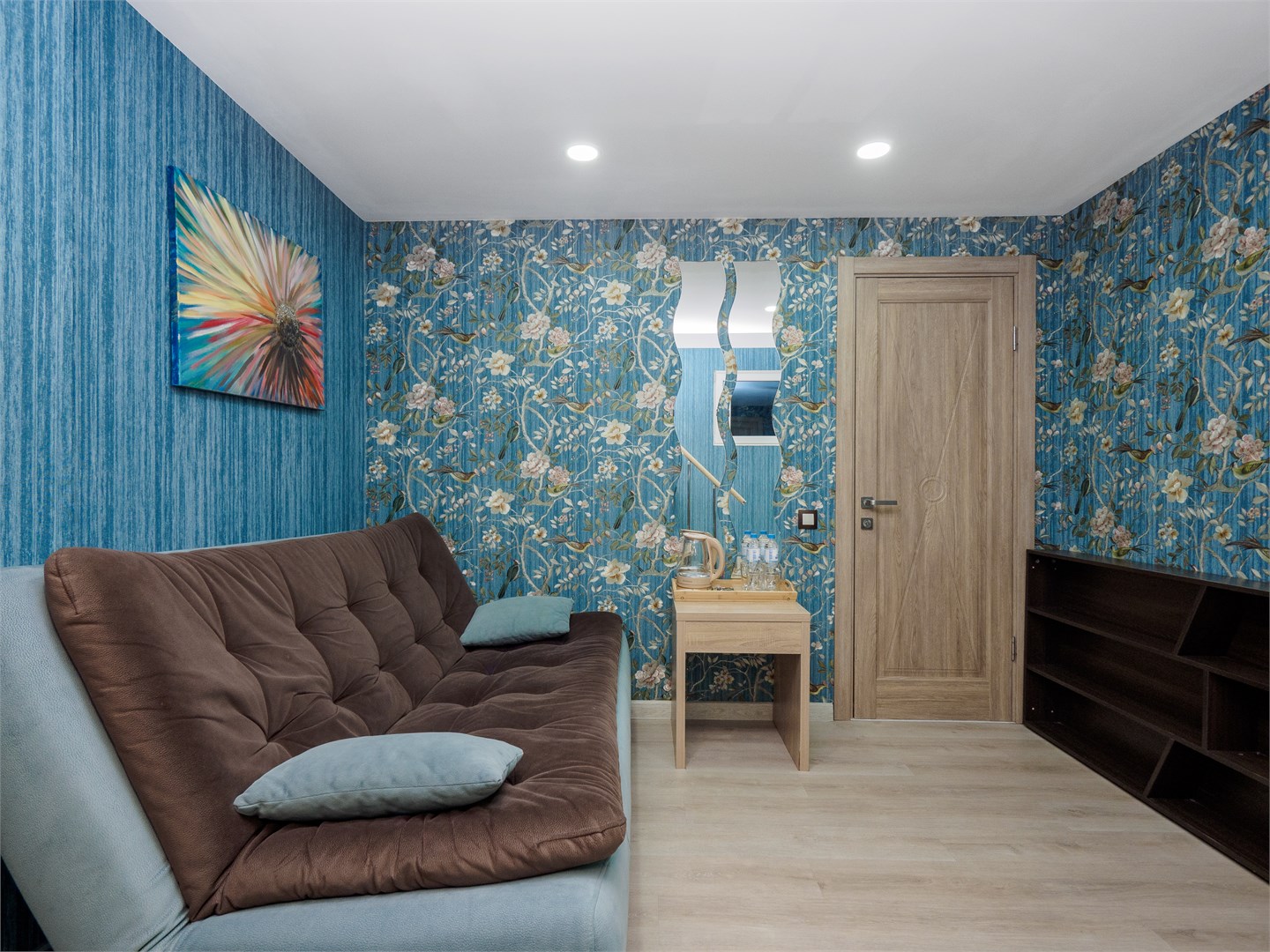 В номере: диван раскладной, зеркало, кровать двуспальная, стол, стул, шкаф, мини-холодильник, сплит-система, телевизор, холодильник, чайный набор посуды, электрочайник