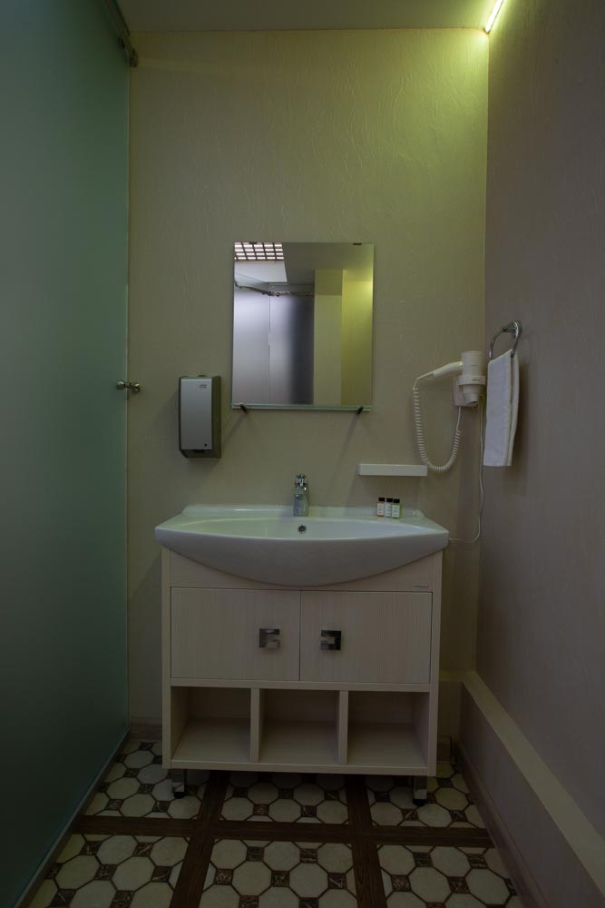 В номере: зеркало, кровати односпальные /одна двуспальная кровать, стол, стулья, шкаф, мини-холодильник, сплит-система, телевизор, чайный набор посуды, электрочайник