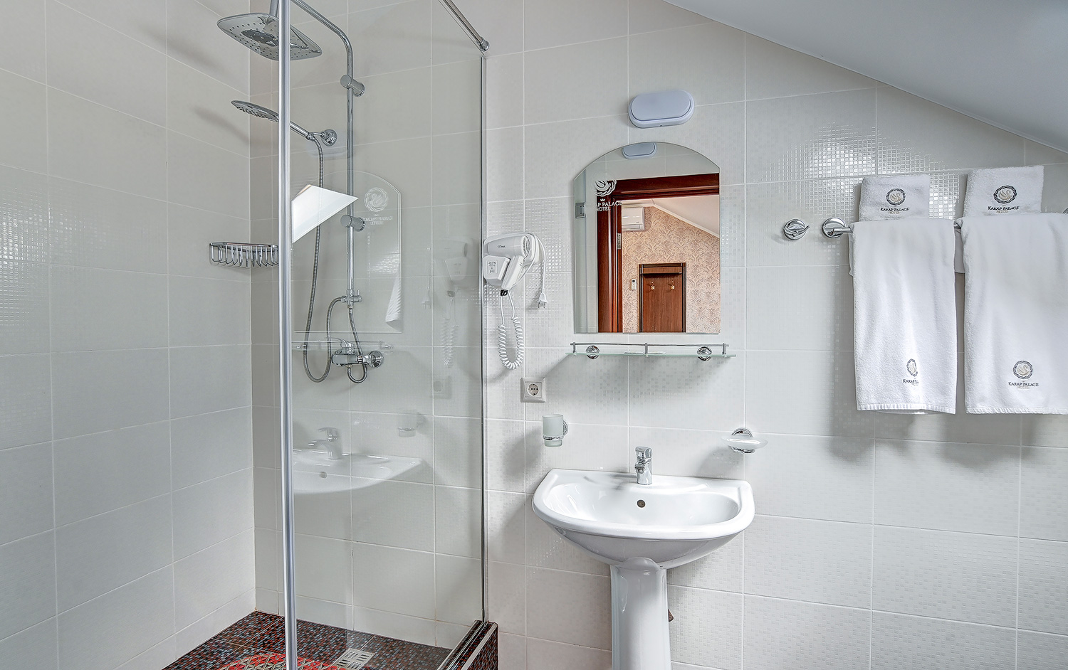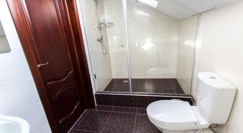 Санузел: с душем, тапочки, туалетные принадлежности, фен