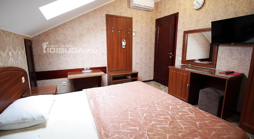 Гости могут выбрать как стандартные номера, так и разместиться в комнатах на мансарде. Во всех номерах классический интерьер, есть индивидуальный санузел, кондиционер, плазменный телевизор, в ряде комнат предусмотрены меблированные балконы.В летний период на территории отеля работает фреш-бар. Круглогодично гостям доступна крытая охраняемая парковка, беспроводной интернет и услуги прачечной. При желании родители могут арендовать для малышей кроватки-манежи.В минуте ходьбы — городской пляж со всей необходимой инфраструктурой. Для отдыхающих установлены раздевалки, навесы, шезлонги, на набережной открыты бары и кафе.