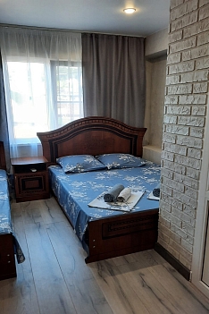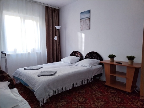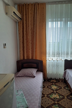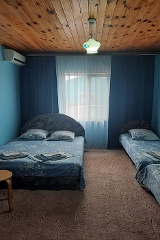 В номере: кровати односпальные, кровать двуспальная, столик журнальный, стулья, шкаф, кондиционер, телевизор