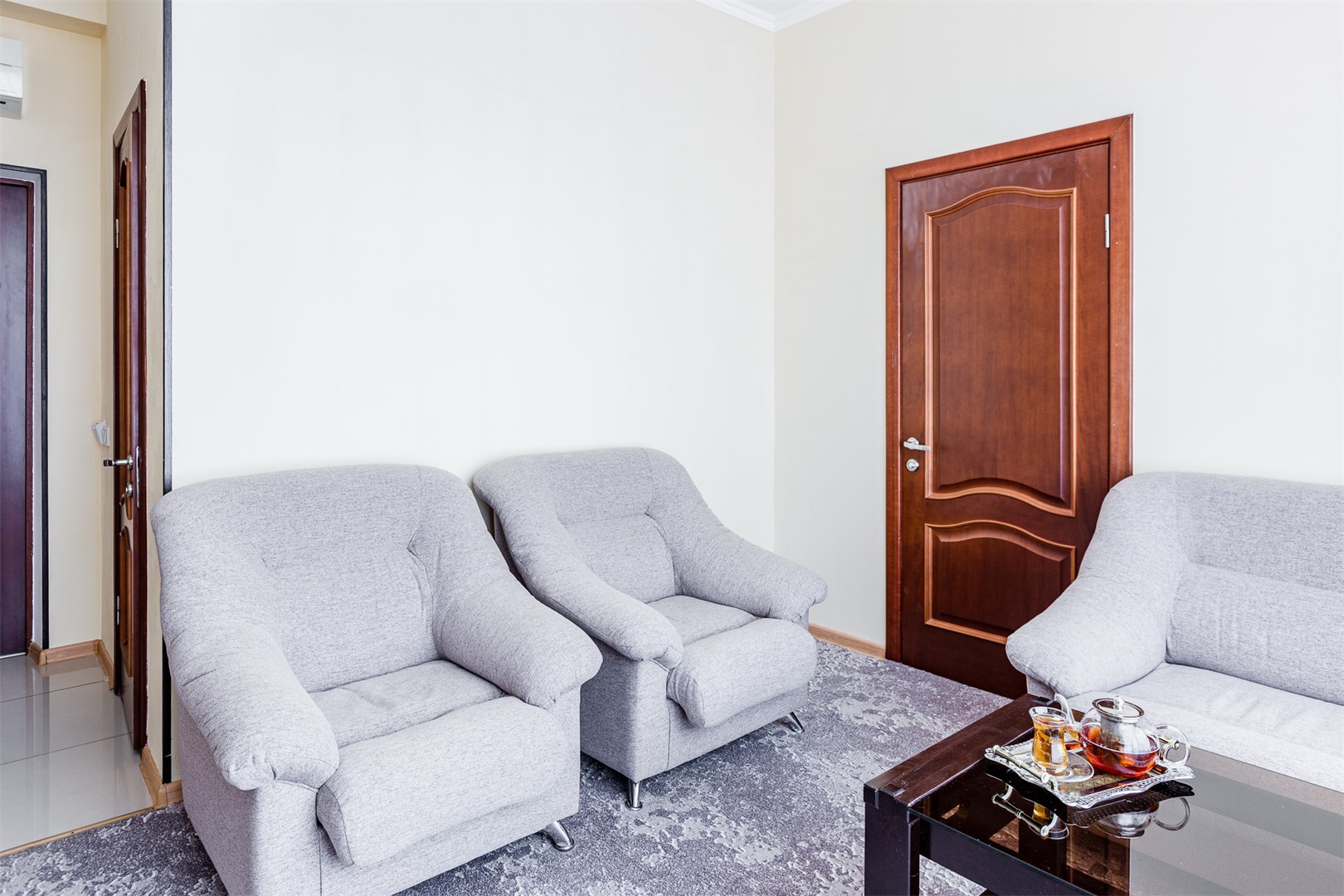 В номере: вешалка, диван, зеркало, кровать двуспальная, кровать односпальная, прикроватные тумбочки, стул, шкаф, кондиционер, мини-холодильник, телевизор