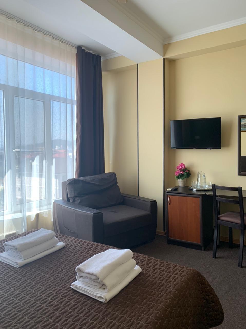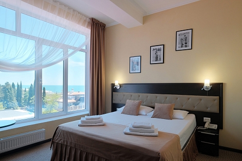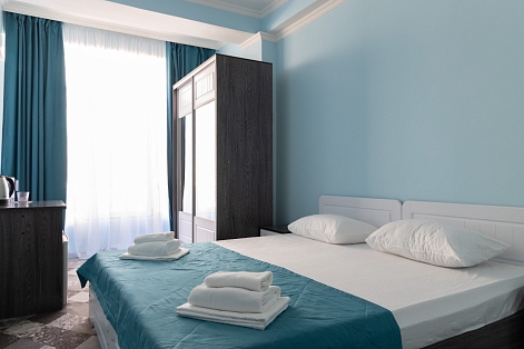Железнодорожный вокзал находится в 3 километрах, аэропорт — в 11. Шестиэтажный отель возвышается в 50 метрах от Черноморского побережья. Жилой фонд, рассчитанный на 120 человек, предлагает отдыхающим номера разной категории комфорта. В каждом имеется удобный мебельный гарнитур, собственный санузел, кондиционер, телевизор и холодильник. Из комнат открываются виды на море или город. При отеле работают столовая и ресторан с русской, европейской и кавказской кухней. Гостям доступны охраняемая парковка возле корпуса, беспроводной интернет, услугам бытовых служб. В минуте ходьбы — городской песчано-галечный пляж. Пляж оснащен лежаками, шезлонгами, есть кабинки для переодевания, доступны водные развлечения.