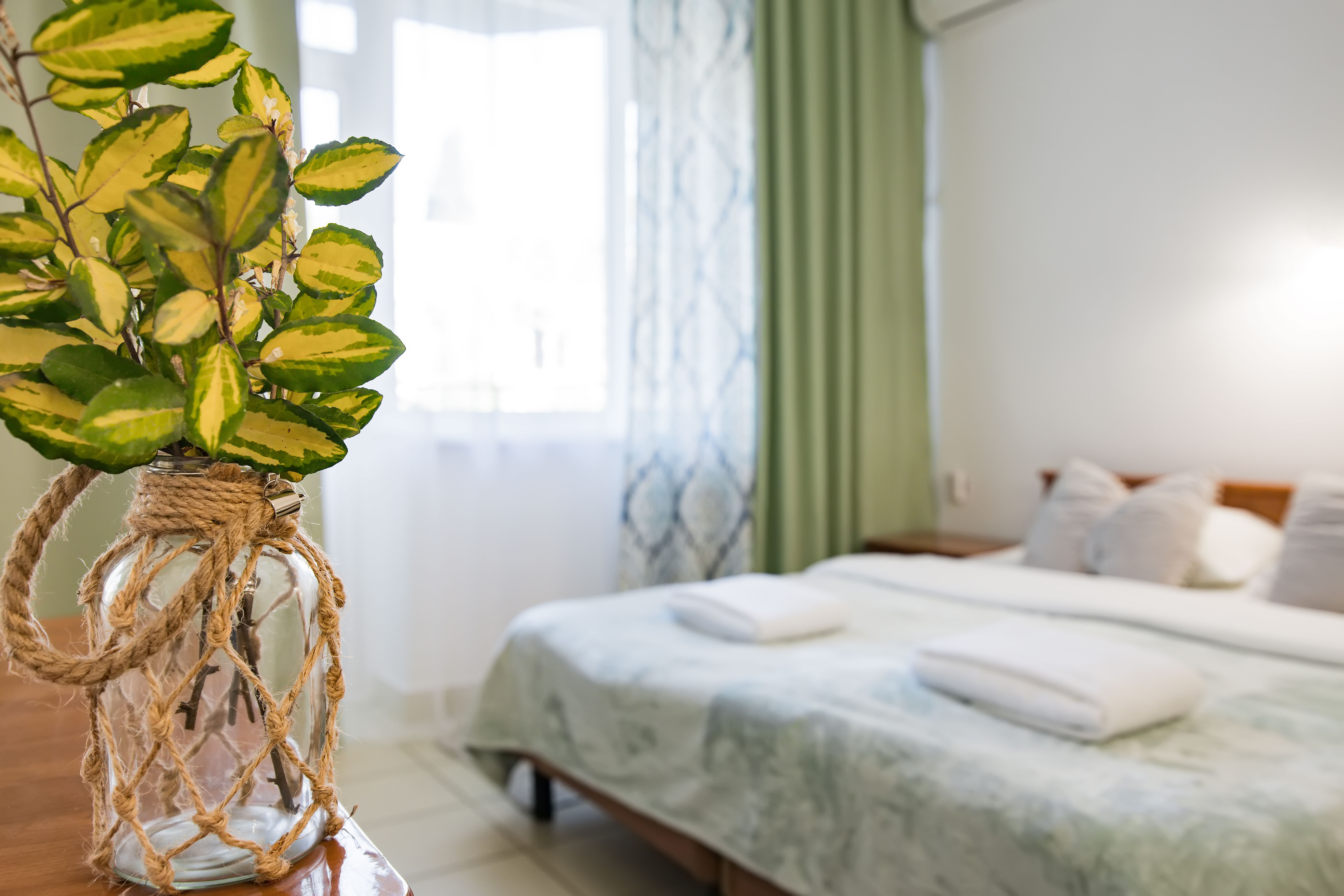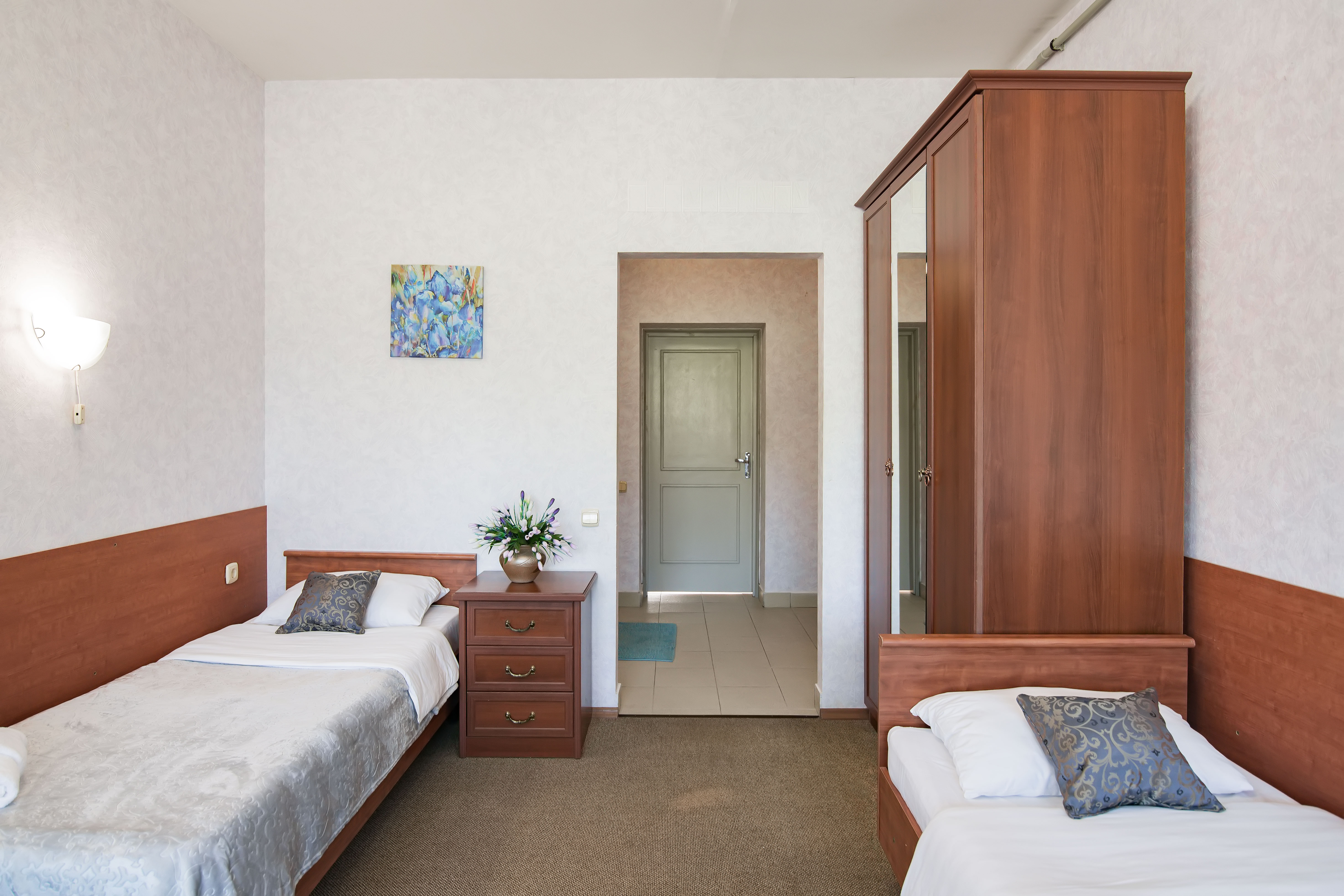 В номере: зеркало, кровати односпальные /одна двуспальная кровать, прикроватные тумбочки, стол, стул, шкаф, кондиционер, телевизор, холодильник