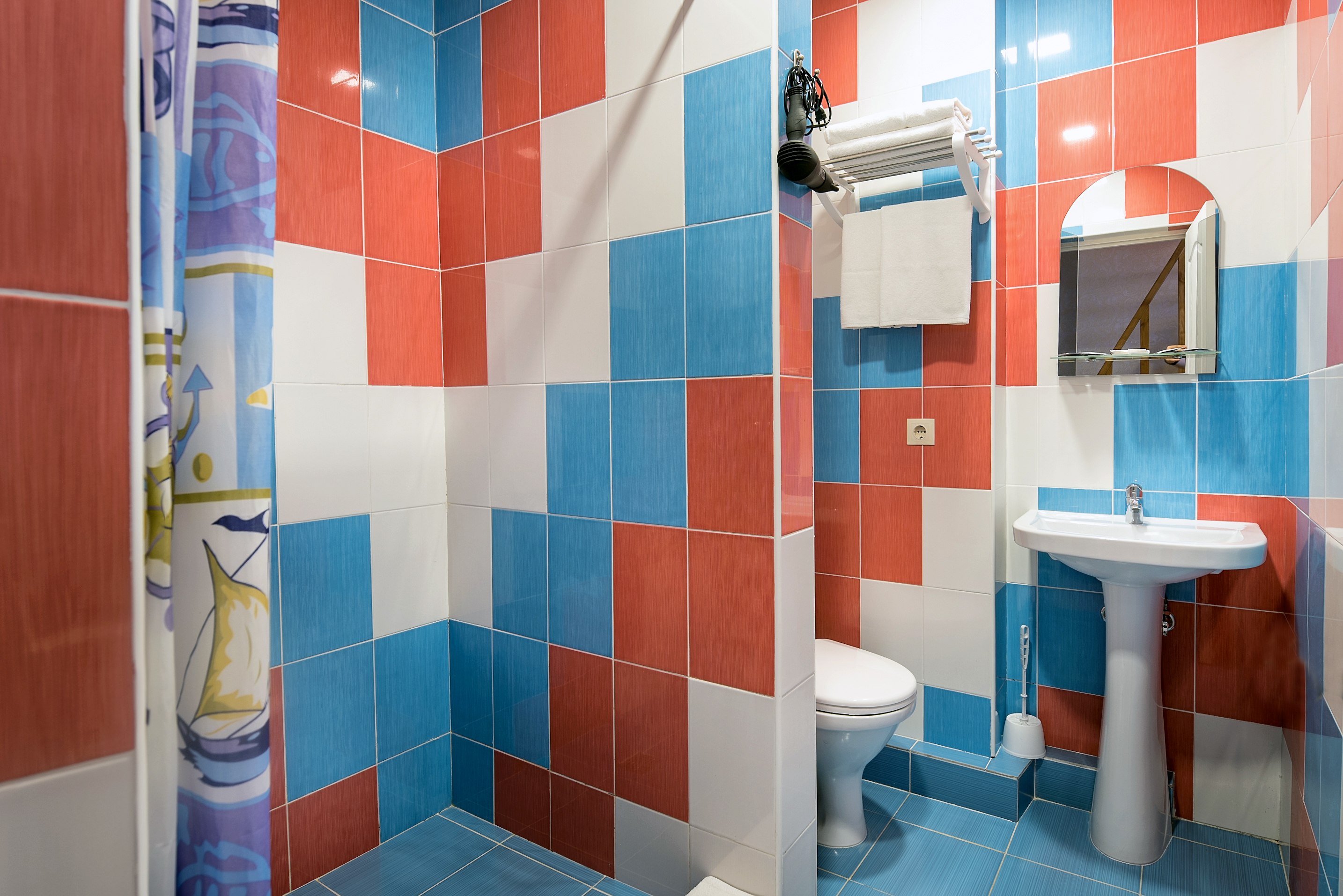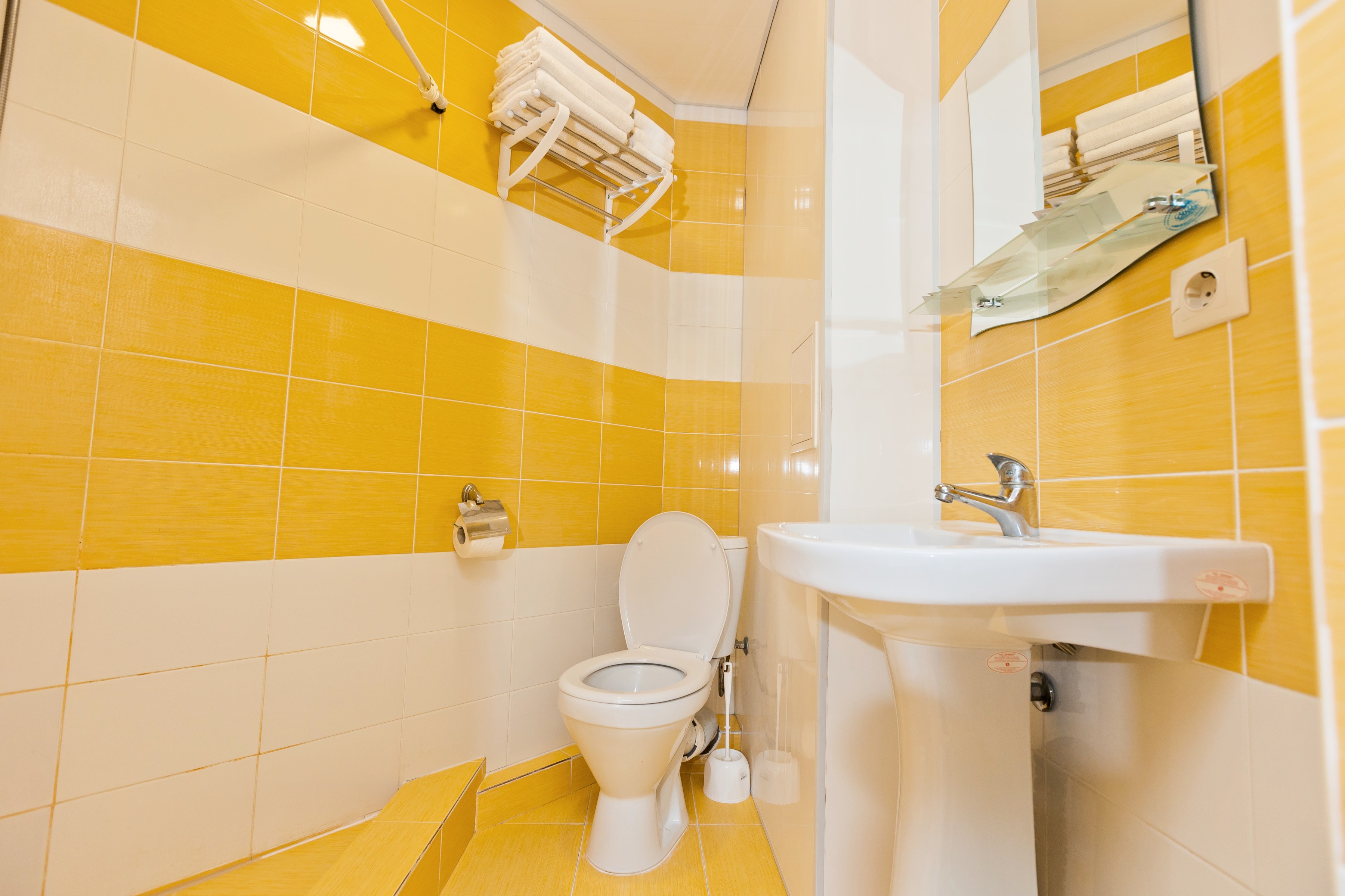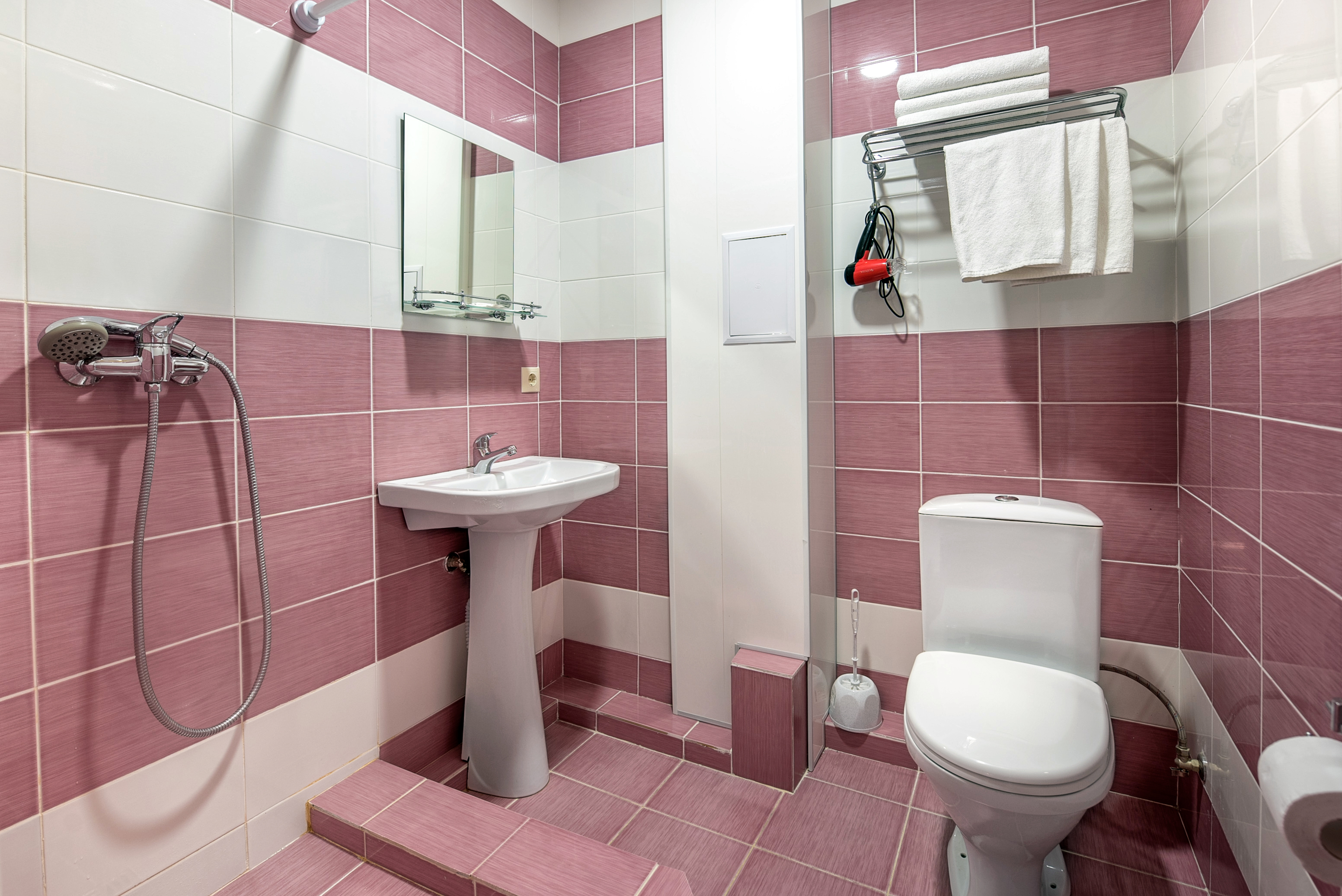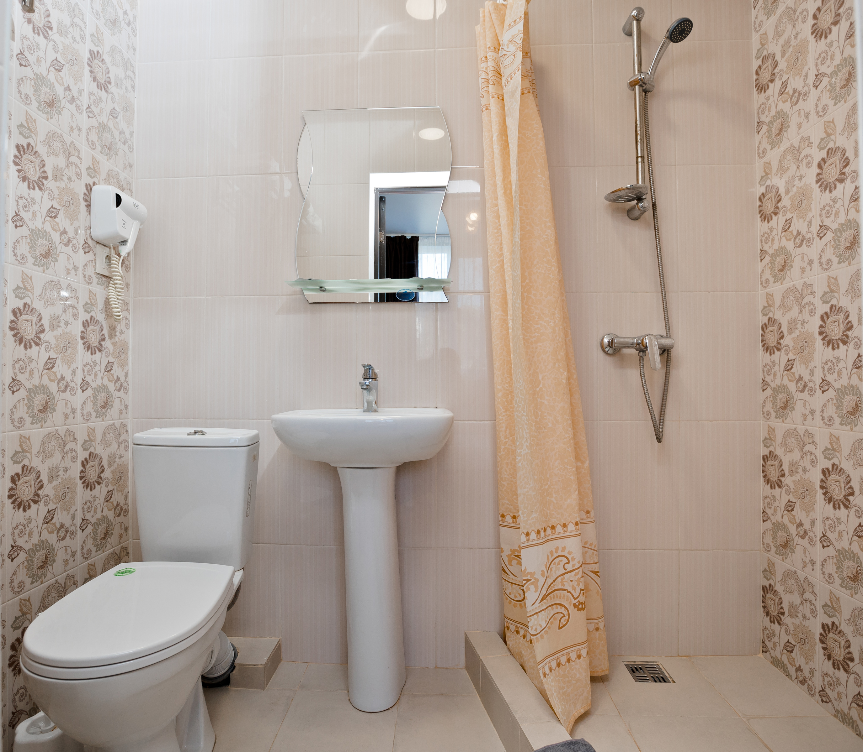 Санузел: с душем, туалетные принадлежности, фен