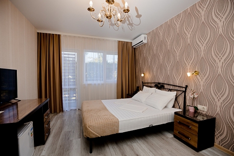 В номере: диван раскладной, зеркало, кровать двуспальная/ две полутороспальные кровати, прикроватная тумбочка, стол, стул, шкаф, кондиционер, мини-холодильник, сейф, телевизор ЖК