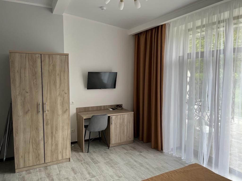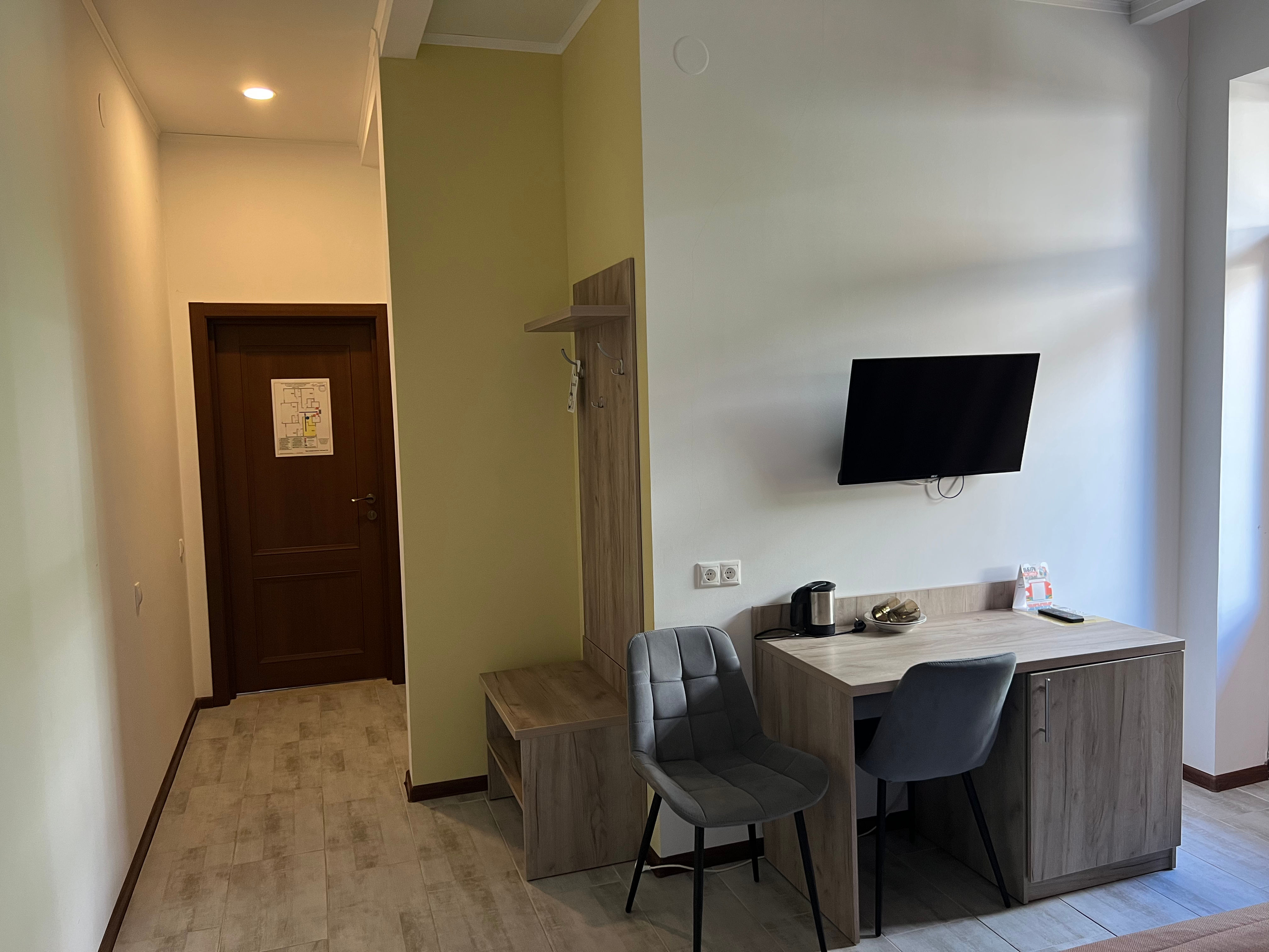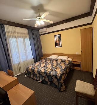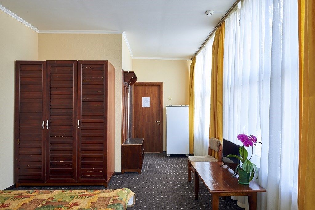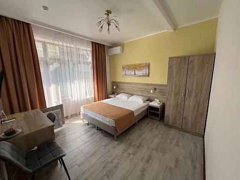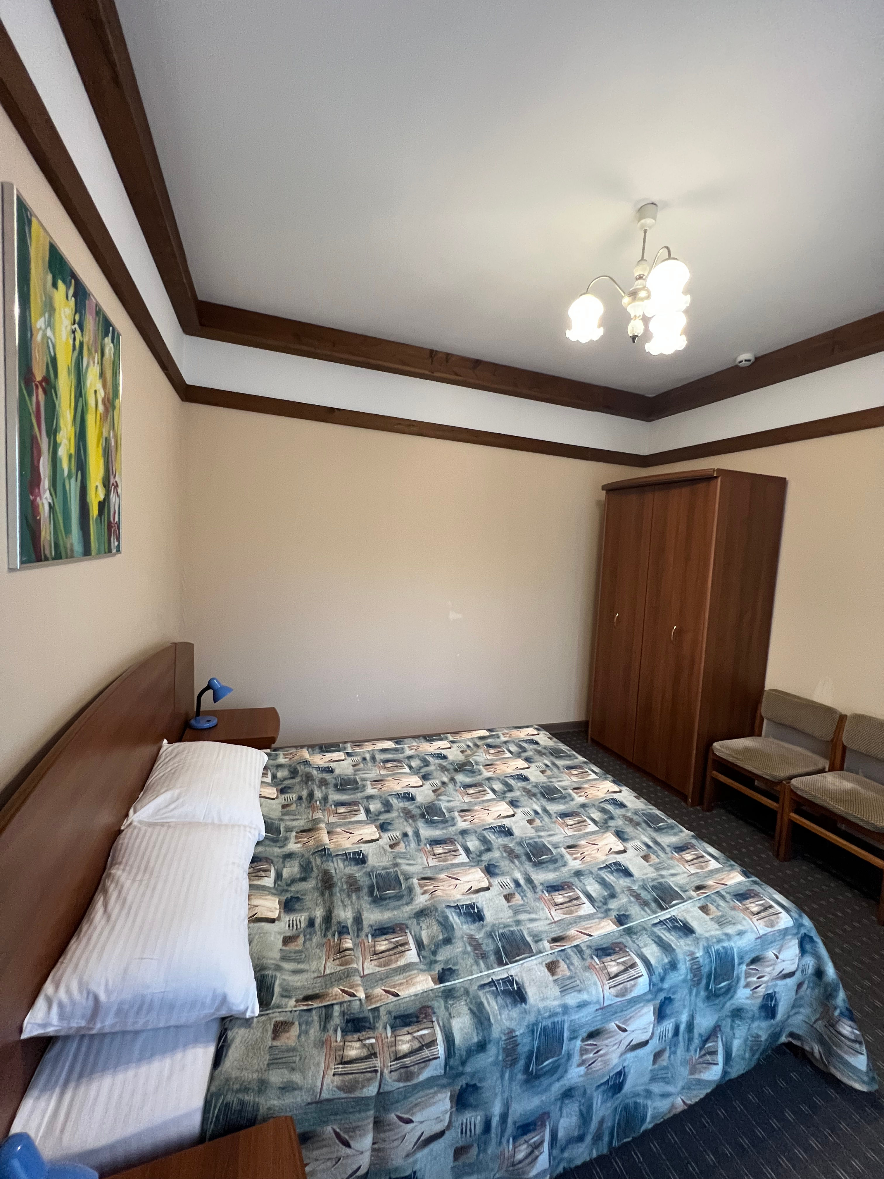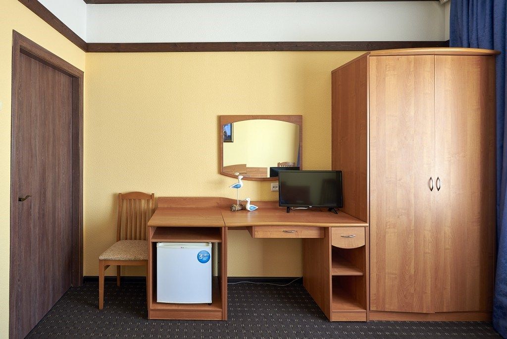 В номере: кровать двуспальная, стол, стулья, шкаф, кондиционер, мини-холодильник, телевизор