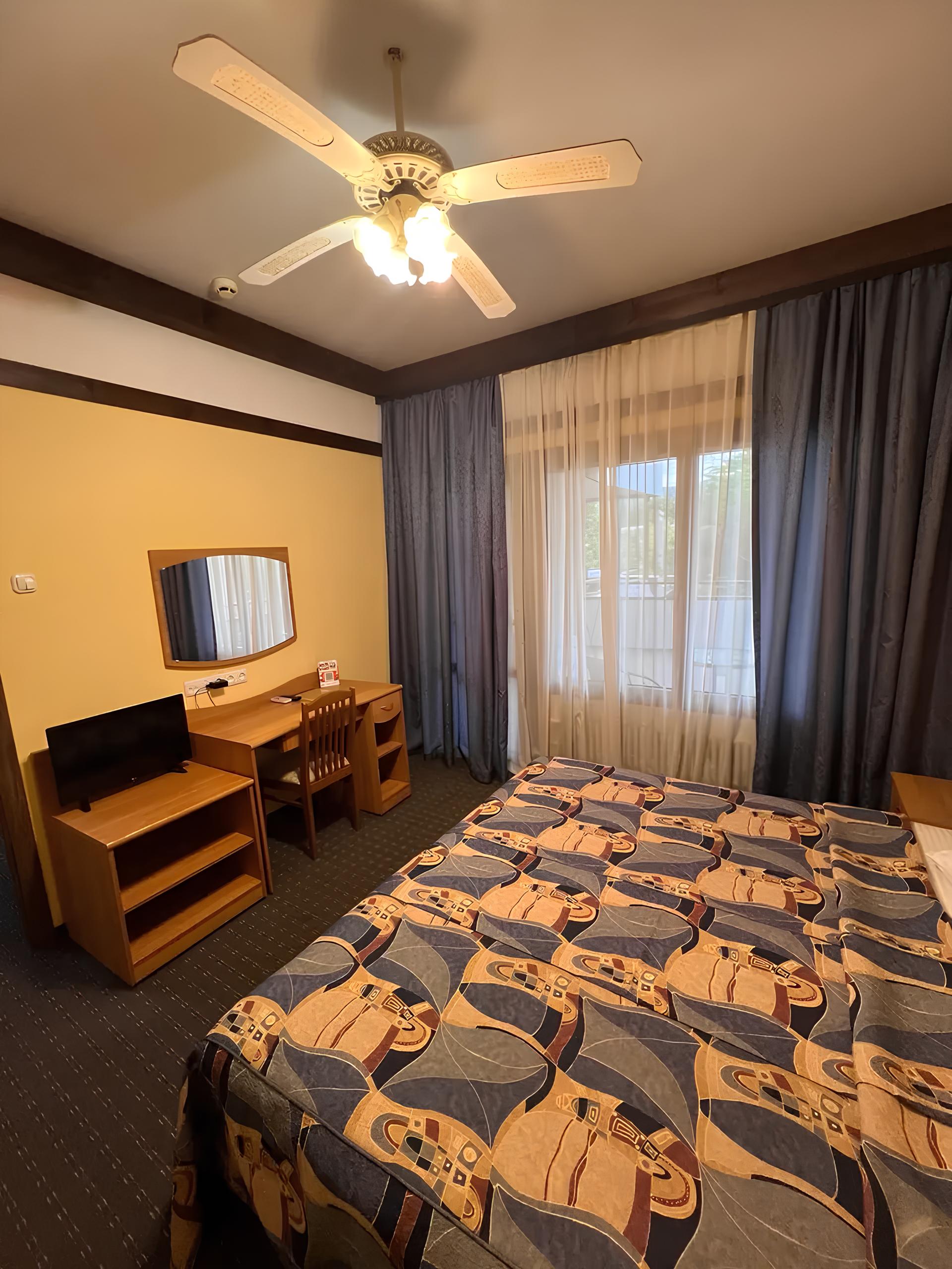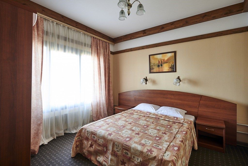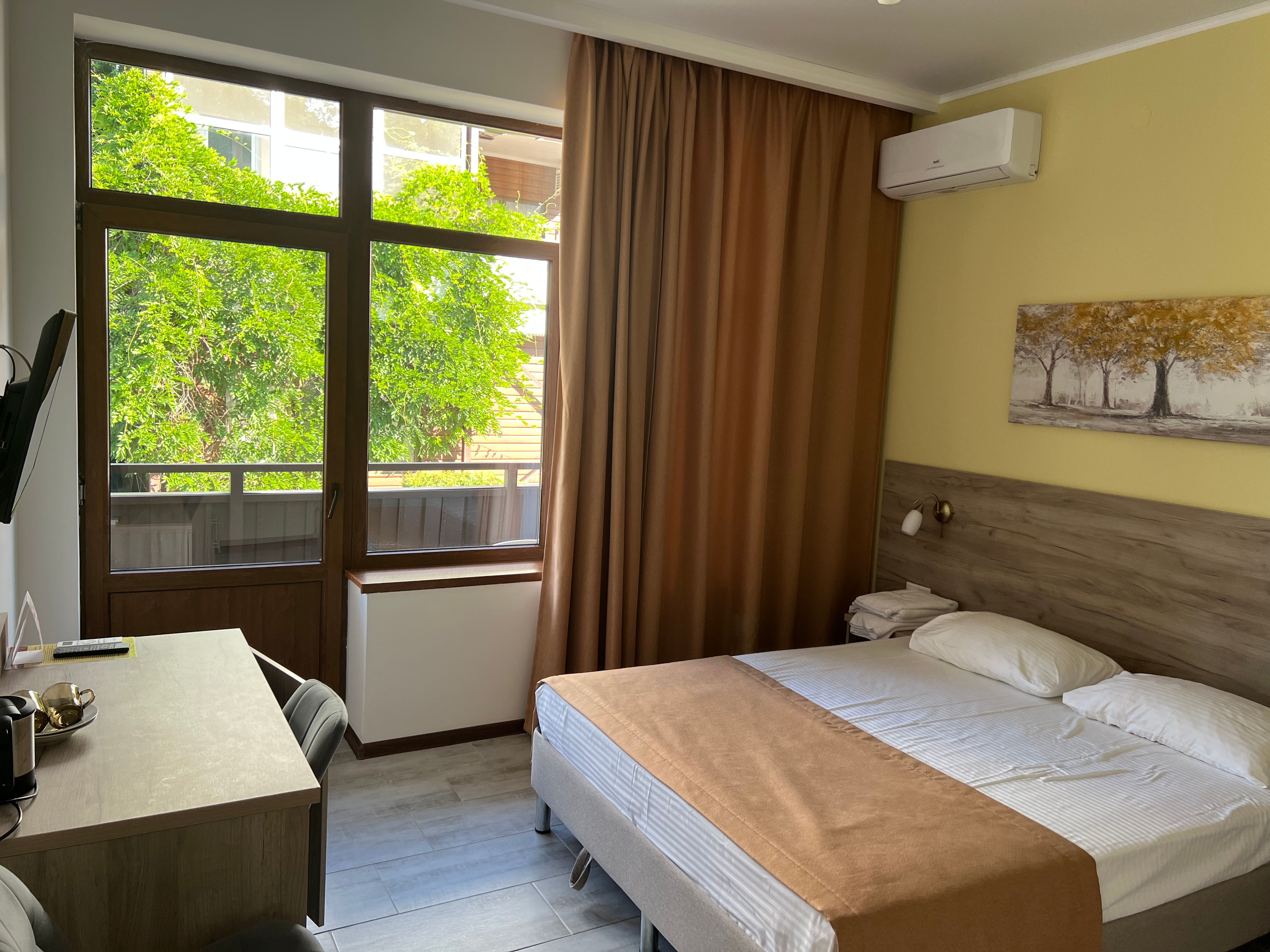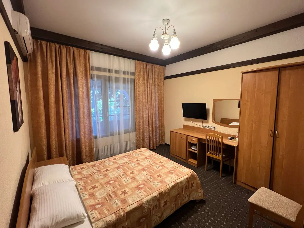 В номере: кровать двуспальная, стол, стулья, шкаф, кондиционер, мини-холодильник, телевизор
