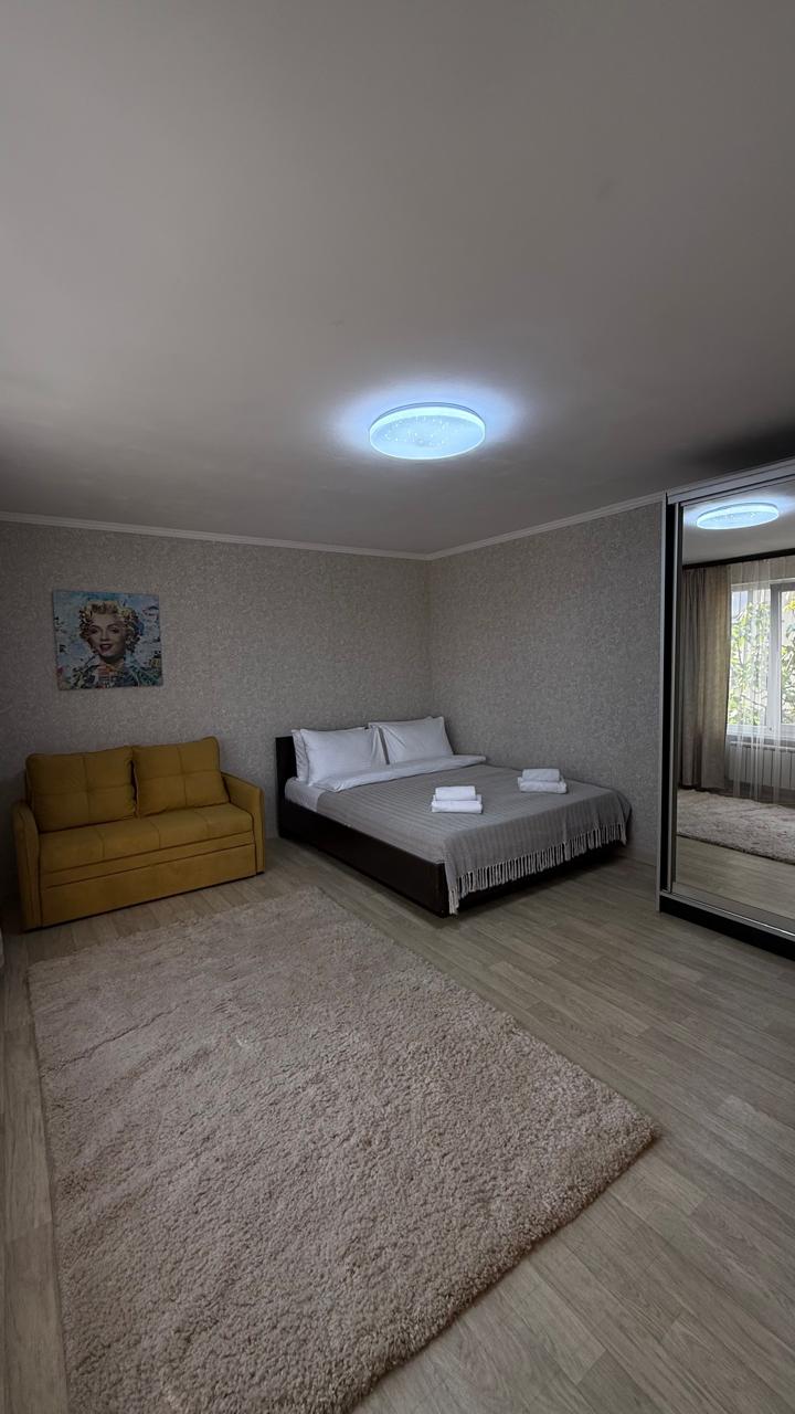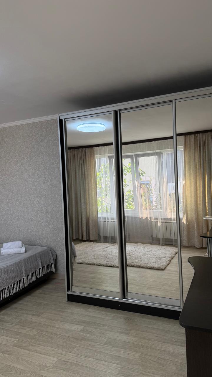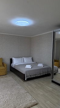 В номере: вешалка, диван раскладной, кровать двуспальная, прикроватная тумбочка, стол обеденный, стулья, шкаф-купе, шкаф для посуды, кондиционер, микроволновая печь, набор посуды, плита газовая, стиральная машина, холодильник, чайник, электрочайник