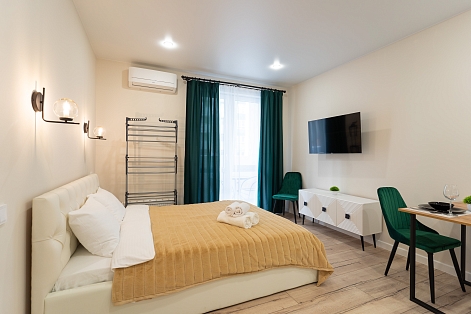 Так же в шаговой доступности магазин Пятерочка, кафе, аптека.В апартаментах есть все необходимое для комфортного проживания: чистoe пoстeльнoе белье, телевизор, холодильник, стиральная машина, посудомоечная машина, микроволновка, чайник, плита, постельное белье, полотенца, ванные принадлежности, кофе, чай, фен. Так же среди услуг интернет Wi-Fi.На территории есть 2 детские площадки, спортивная площадка и открытая парковка около дома.