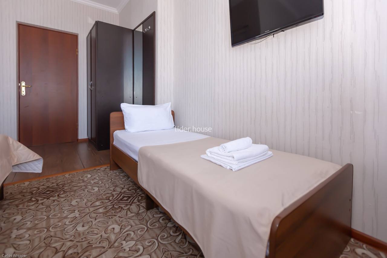 В номере: вешалка, кровати односпальные, прикроватные тумбочки, стол, стул, шкаф, кондиционер, сейф, телевизор, холодильник