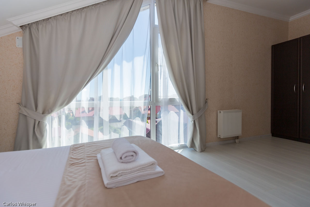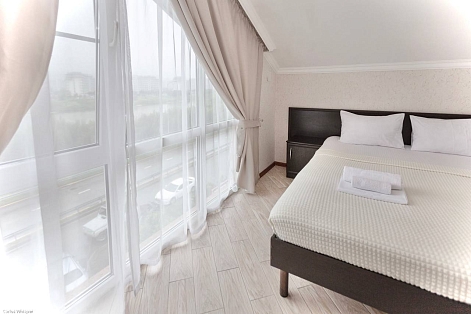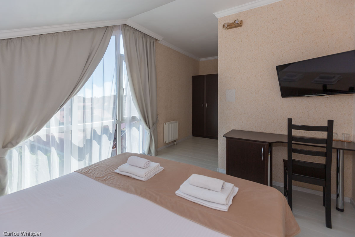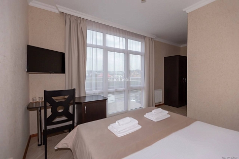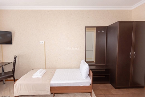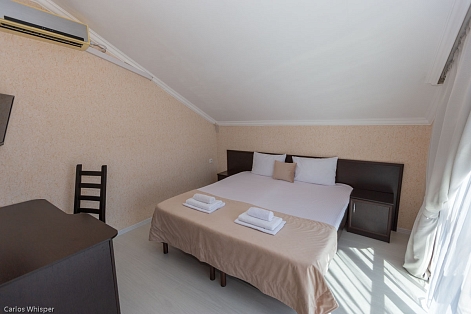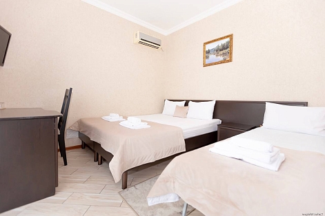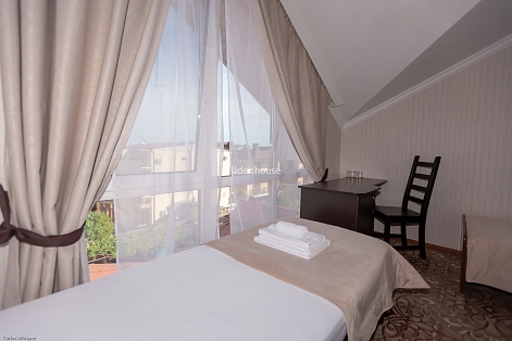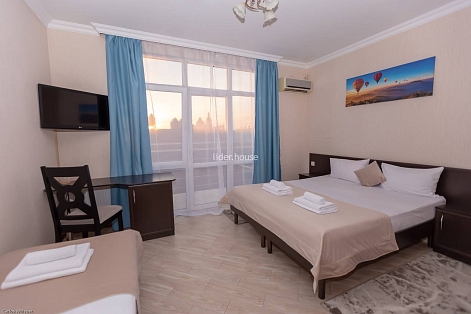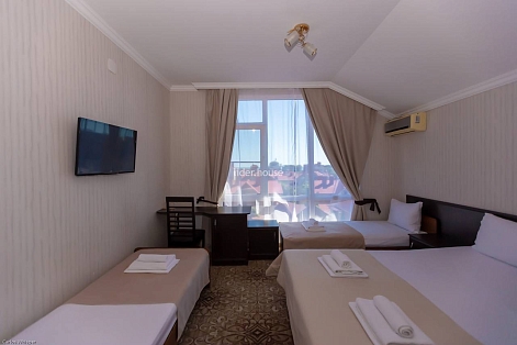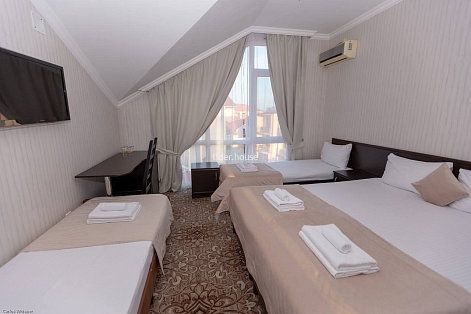 В 10 минутах езды – железнодорожный вокзал, откуда на скоростной ласточке можно быстро добраться до курортов Красной Поляны, а в 8 километрах – международный аэропорт.Четырехэтажное здание занимает закрытую облагороженную территорию в 300 метрах от моря. В распоряжении гостей комфортабельные номера, также разместиться можно в мини-коттедже с тремя спальнями, который отлично подходит для размещения семьи или большой компании. В номерах установлены кондиционер, есть санузел с душем, в комнатах – телевизор и мини-холодильник.На территории оборудованы общая кухня и зона барбекю с мангалом. Отдыхающие могут арендовать велосипеды для прогулок по городу, а родители взять для своих малышей детские коляски.В 5 минутах ходьбы от гостевого дома находится городской пляж. На галечном побережье установлены кабинки для переодевания, шезлонги, навесы от солнца, много пляжных аттракционов, можно покататься на водных мотоциклах и катамаранах.