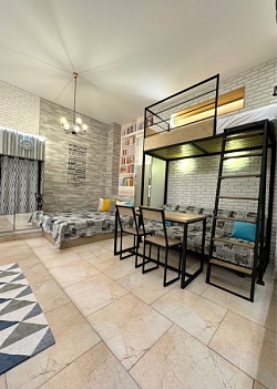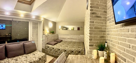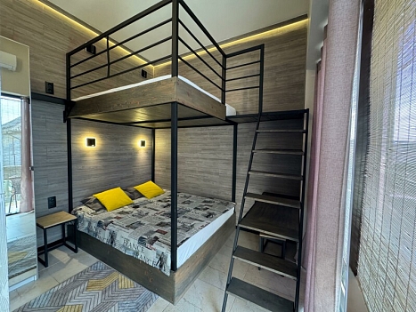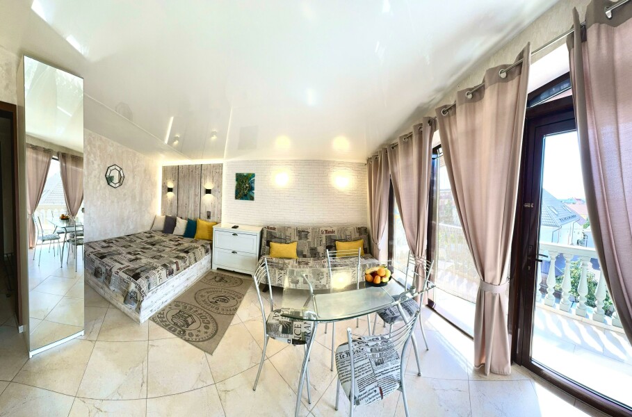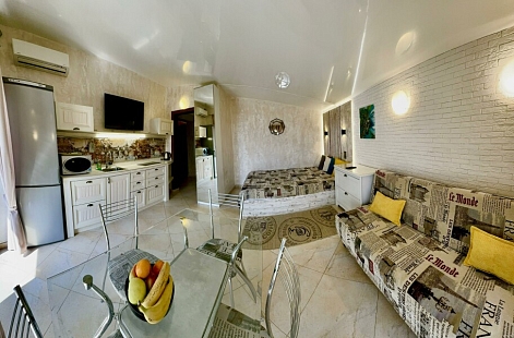 Тихие семейные студии и домик у бассейна расположены в частном жилом доме в центре Олимпийского парка ФТ Сириус. Продуктовые магазины, столовая, пекарня, кафе, ресторан, аптека находятся рядом. Номера оформлены в современном стиле.