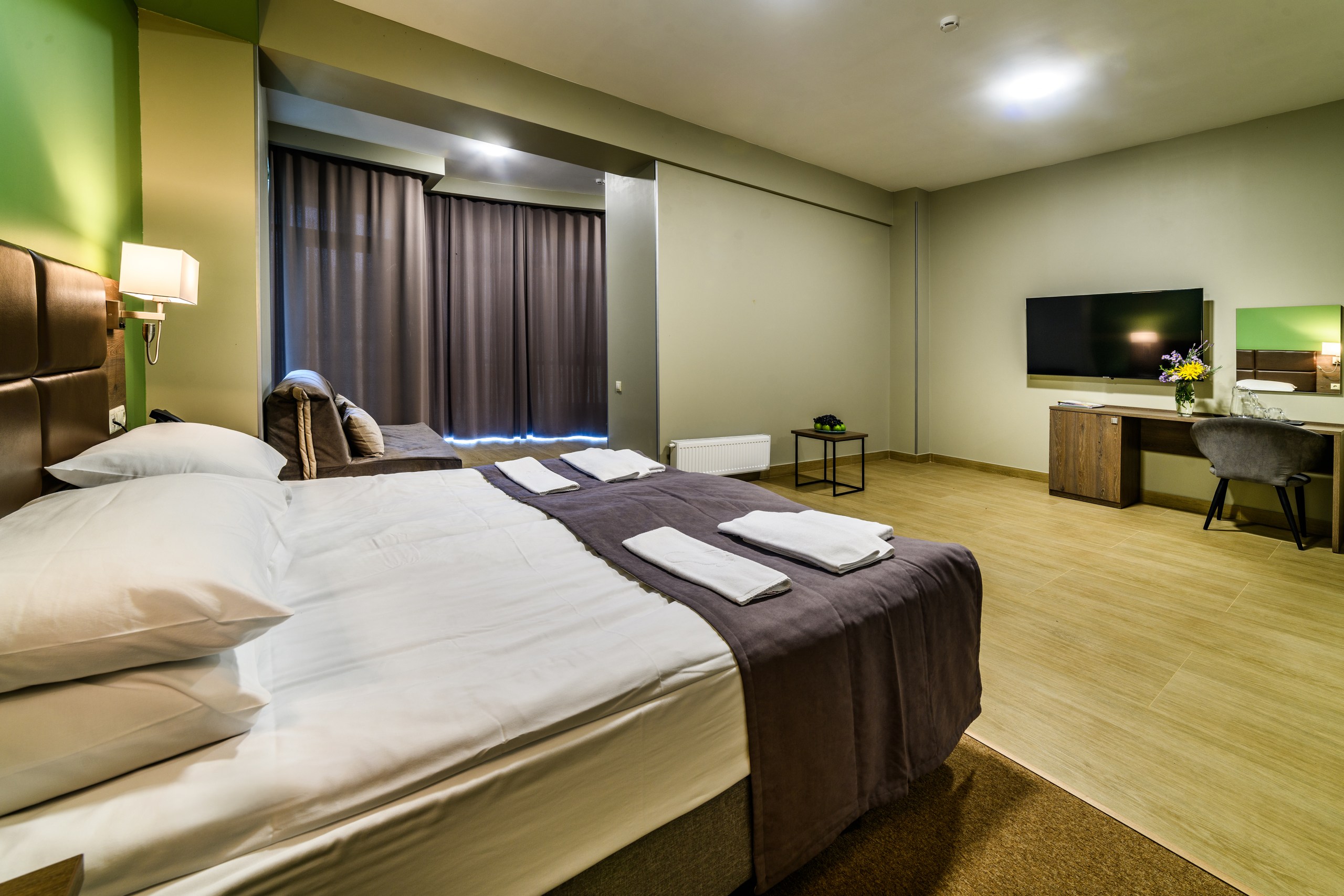 В номере: кровати односпальные /одна двуспальная кровать, набор посуды, сейф, система общего кондиционирования, телевизор ЖК, телефон, холодильник