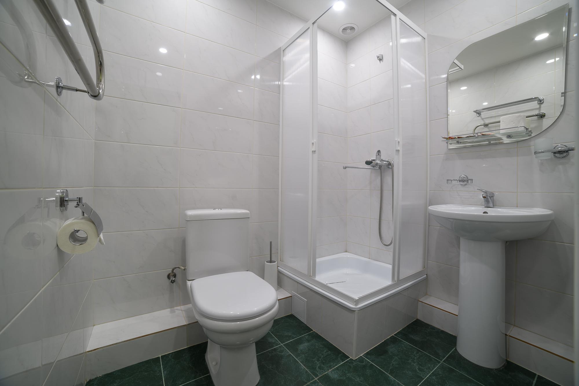 Санузел: с душевой кабиной, туалетные принадлежности, фен