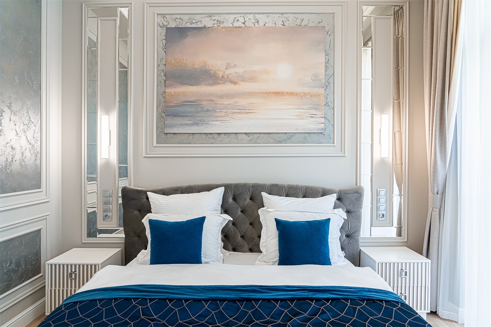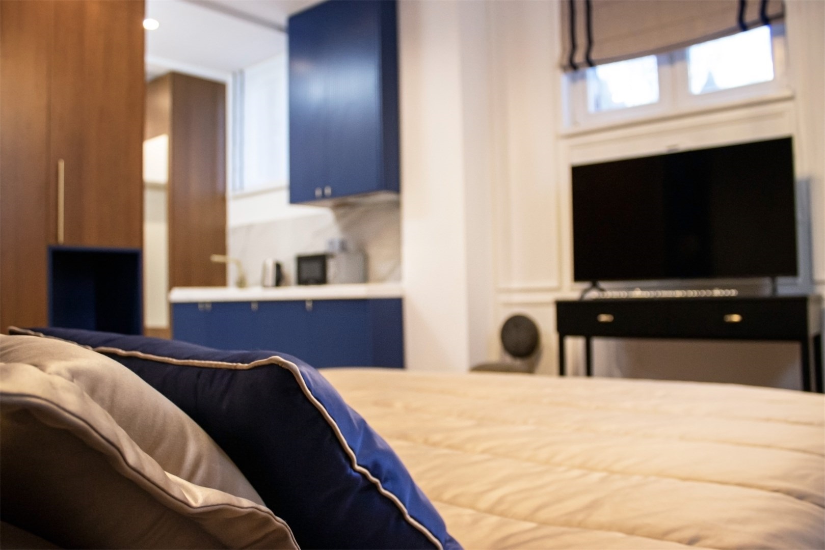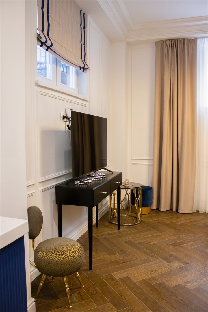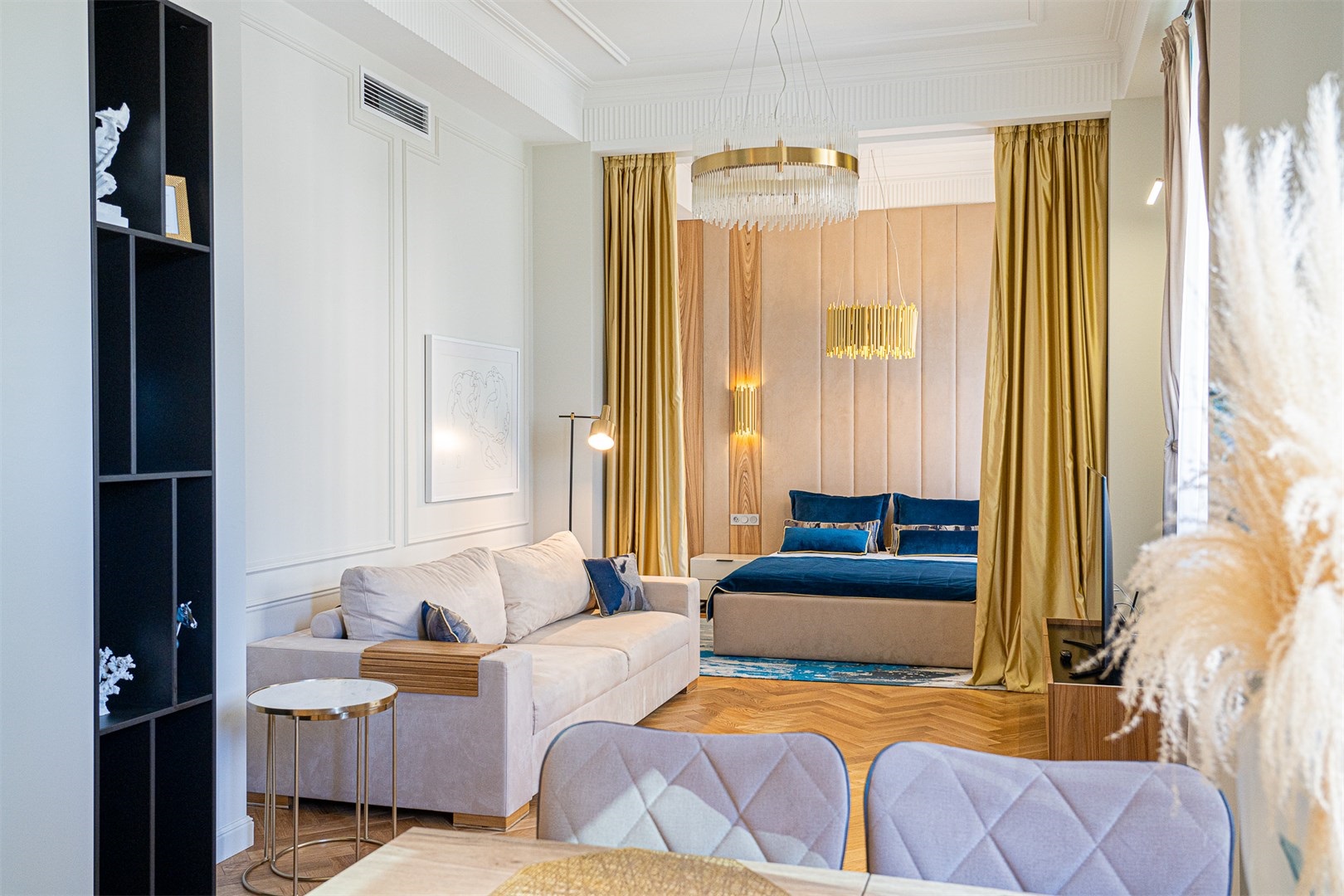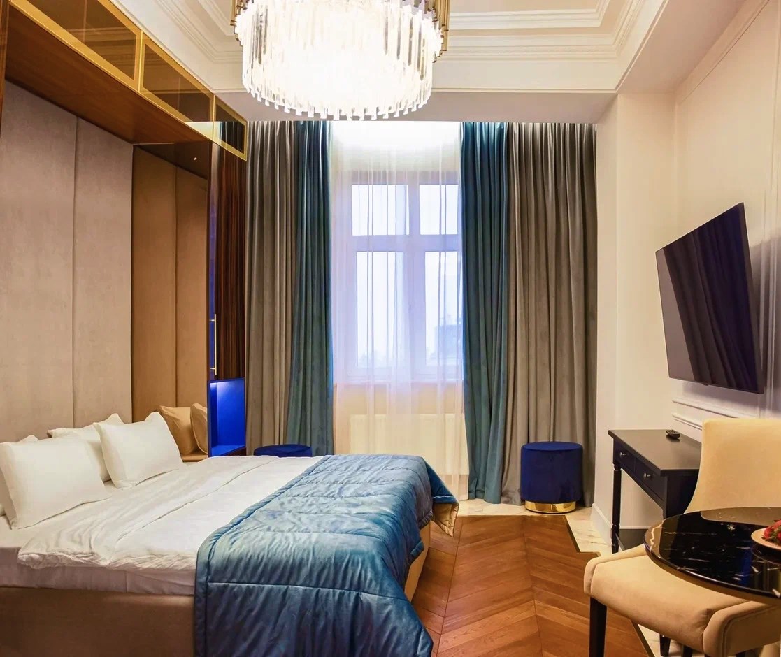 В дизайнерских интерьерах апарт-отеля прослеживаются барочные и классицистические мотивы, а в отделке используются только высококачественные материалы, например, полы в холлах выложены из натурального мрамора. Гостей ожидают 15 просторных комфортабельных номеров-апартаментов площадью от 22 до 50 квадратных метров с продуманным индивидуальным дизайном и авторской мебелью. Каждый номер оснащен мини-кухней с варочной панелью, системой кондиционирования, необходимой бытовой техникой, в ванных комнатах подготовлены наборы косметики класс люкс, установлена стиральная машина.Во внутреннем дворе для отдыхающих оборудована лаундж-зона, на территории доступен беспроводной интернет, организована парковка. Всего в 5 минутах ходьбы разместился городской галечный пляж. На побережье работают бары, есть кабинки для переодевания, лежаки и навесы.