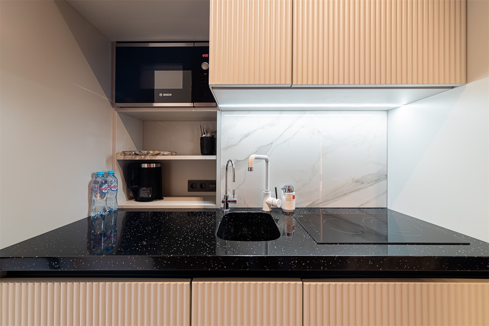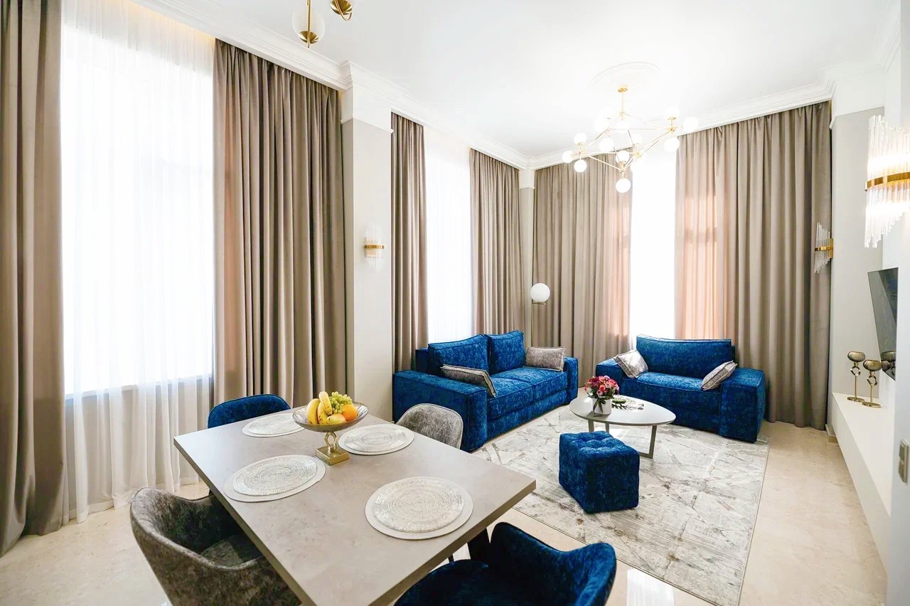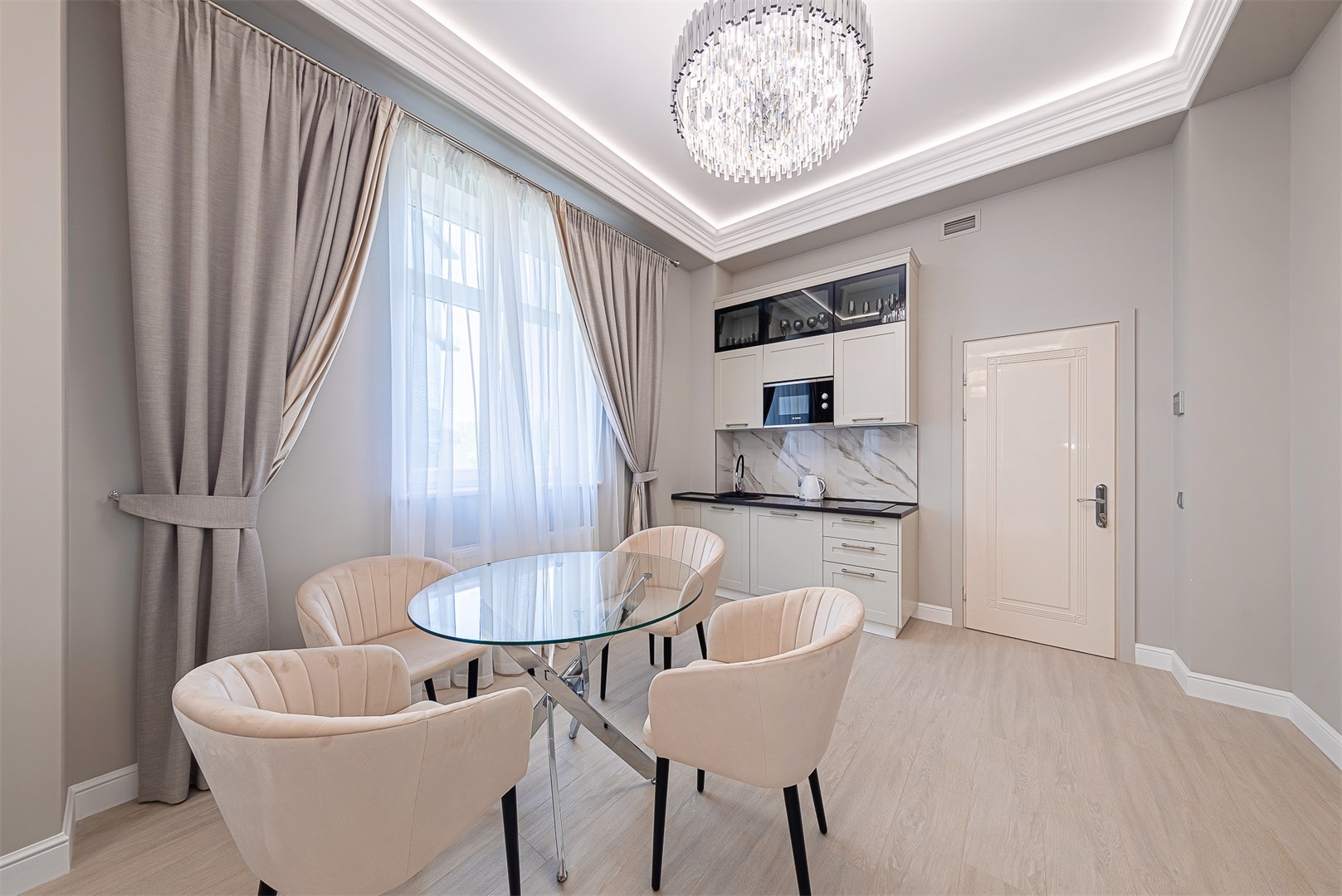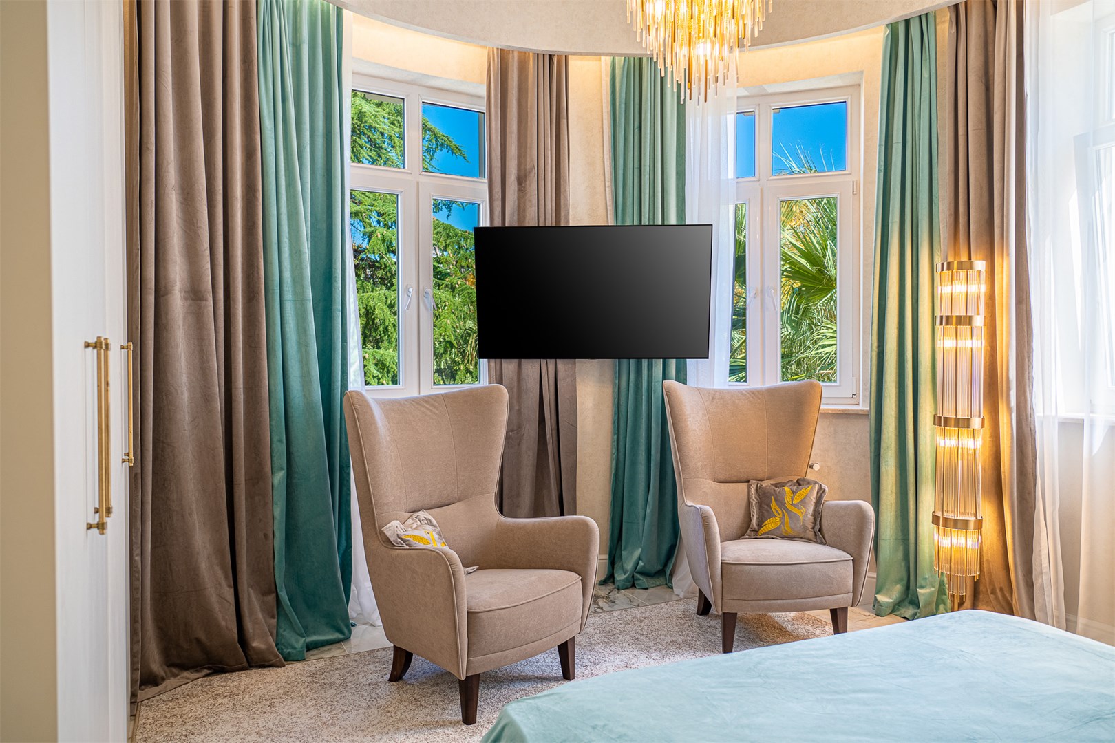 В дизайнерских интерьерах апарт-отеля прослеживаются барочные и классицистические мотивы, а в отделке используются только высококачественные материалы, например, полы в холлах выложены из натурального мрамора. Гостей ожидают 15 просторных комфортабельных номеров-апартаментов площадью от 22 до 50 квадратных метров с продуманным индивидуальным дизайном и авторской мебелью. Каждый номер оснащен мини-кухней с варочной панелью, системой кондиционирования, необходимой бытовой техникой, в ванных комнатах подготовлены наборы косметики класс люкс, установлена стиральная машина.Во внутреннем дворе для отдыхающих оборудована лаундж-зона, на территории доступен беспроводной интернет, организована парковка. Всего в 5 минутах ходьбы разместился городской галечный пляж. На побережье работают бары, есть кабинки для переодевания, лежаки и навесы.