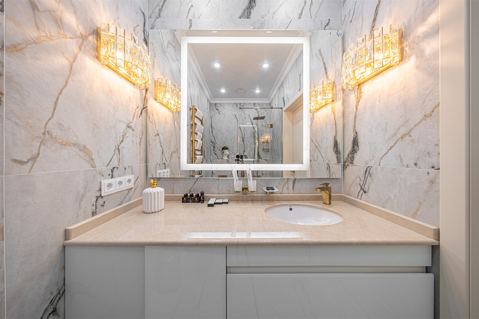 Санузел: с ванной или душевой кабиной, тапочки, туалетные принадлежности, фен, халат