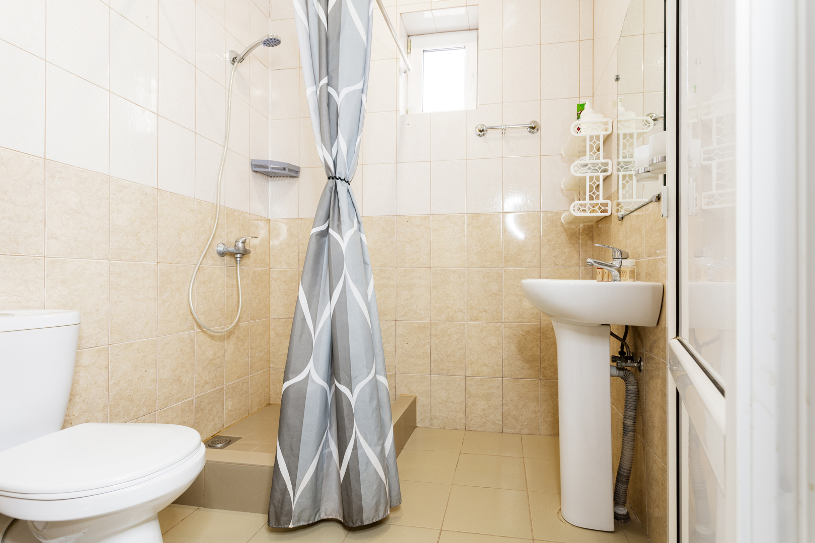Санузел: с душем, теплый пол, туалетные принадлежности, фен