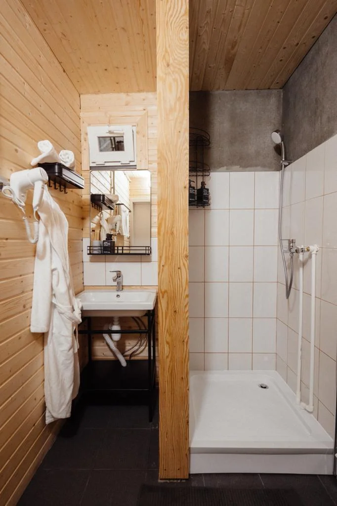 Санузел: с душем, тапочки, туалетные принадлежности, халат