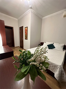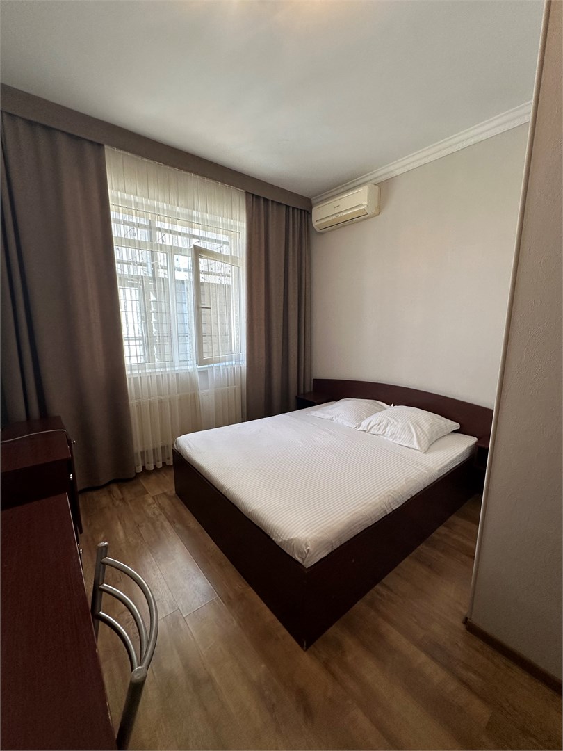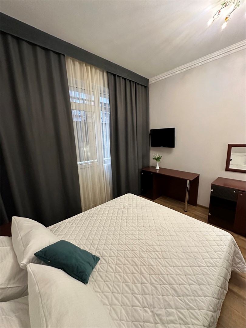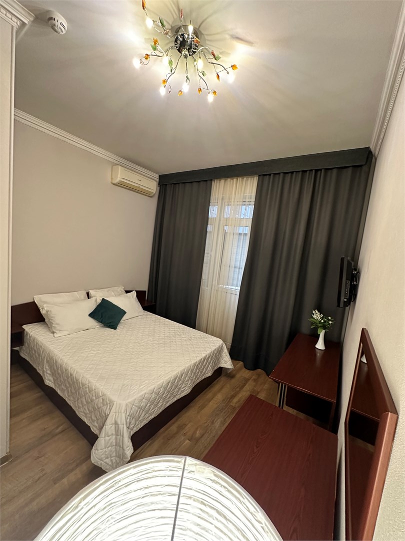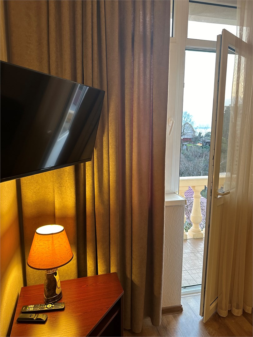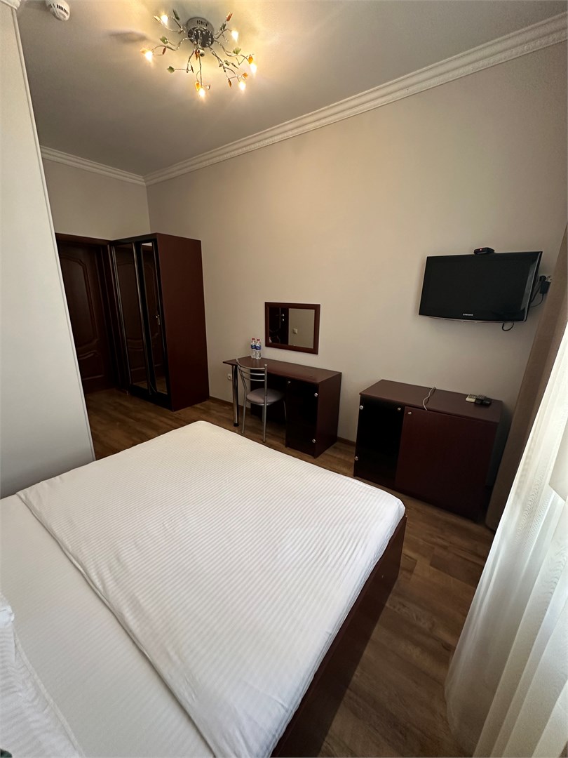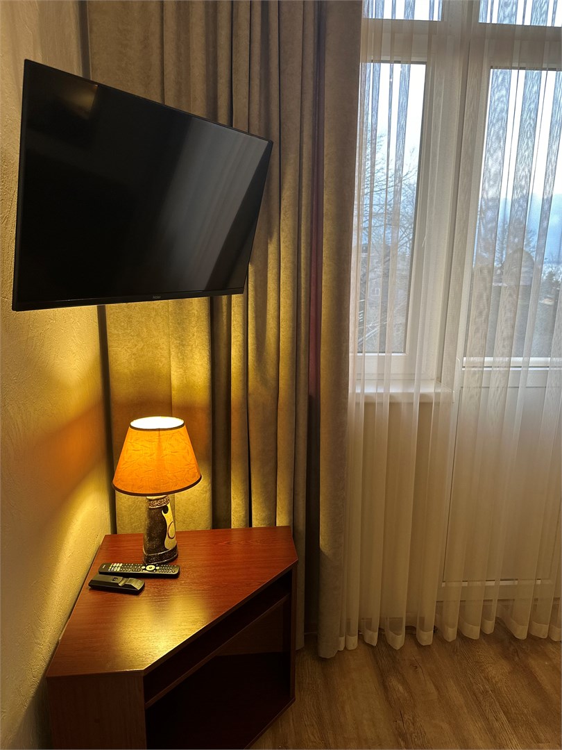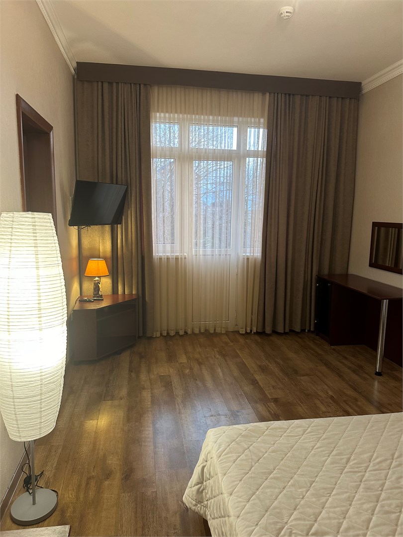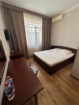 В номере: вешалка, зеркало, кровать двуспальная, стол, стулья, шкаф-купе, кондиционер, мини-холодильник, набор посуды, телевизор ЖК, электрочайник