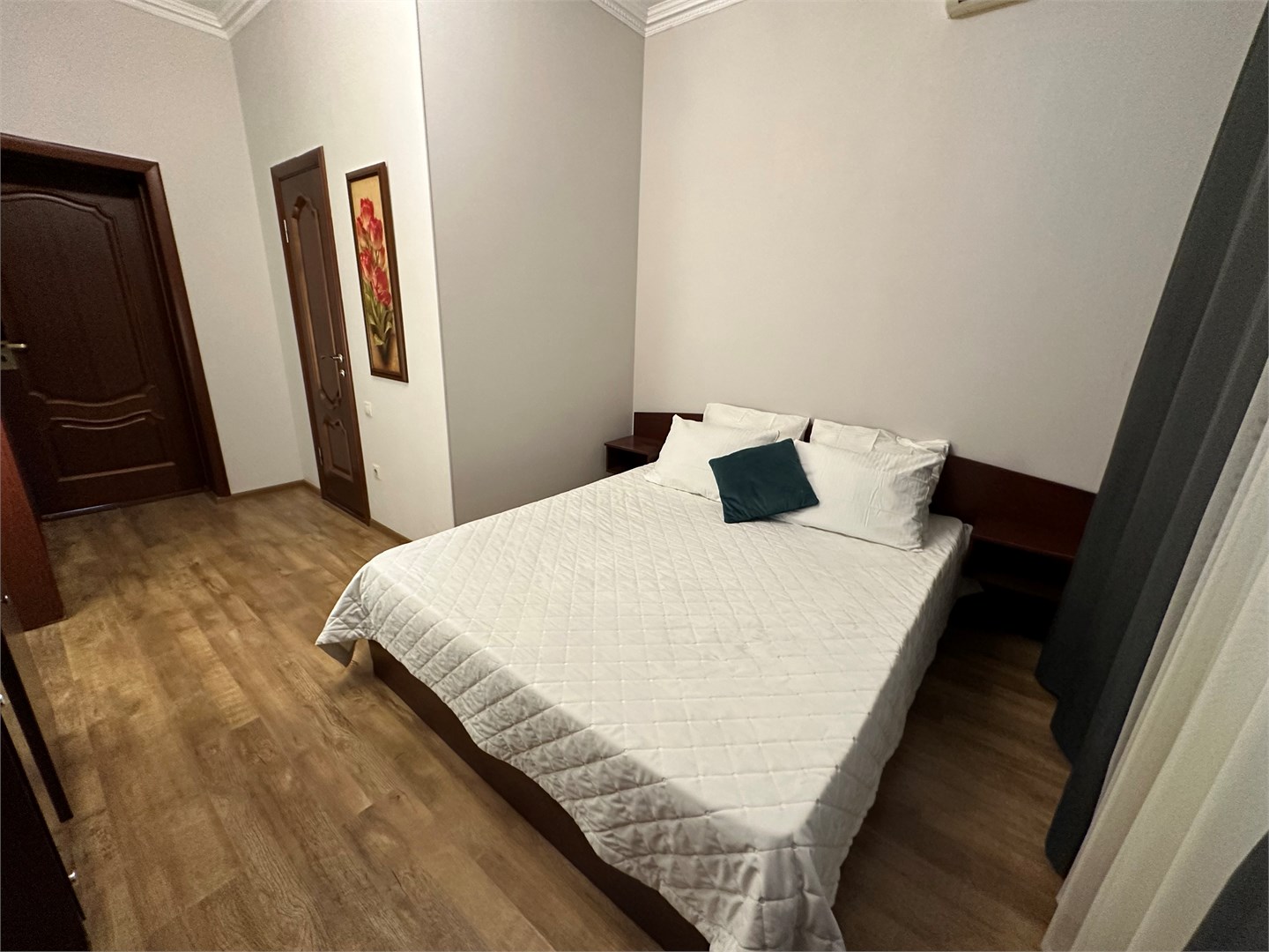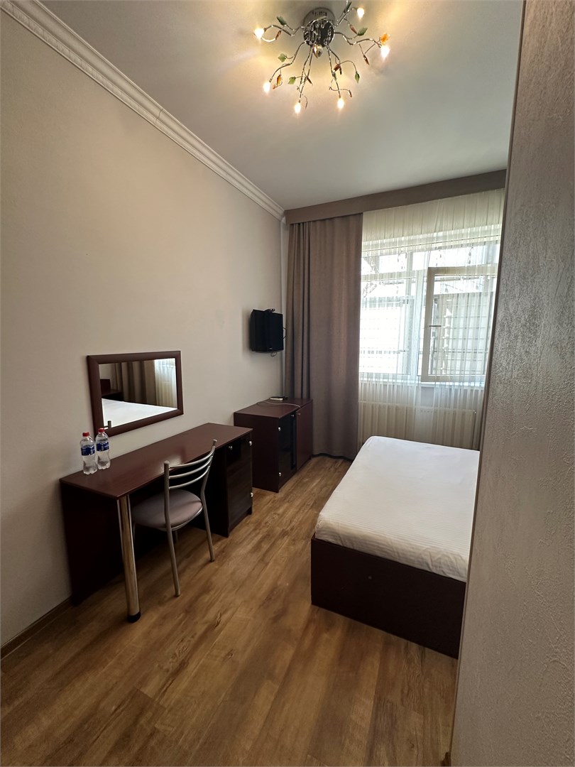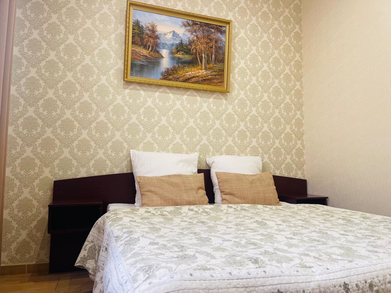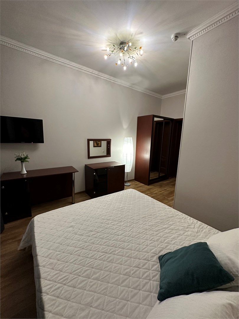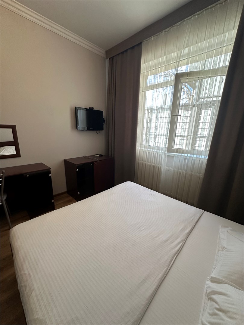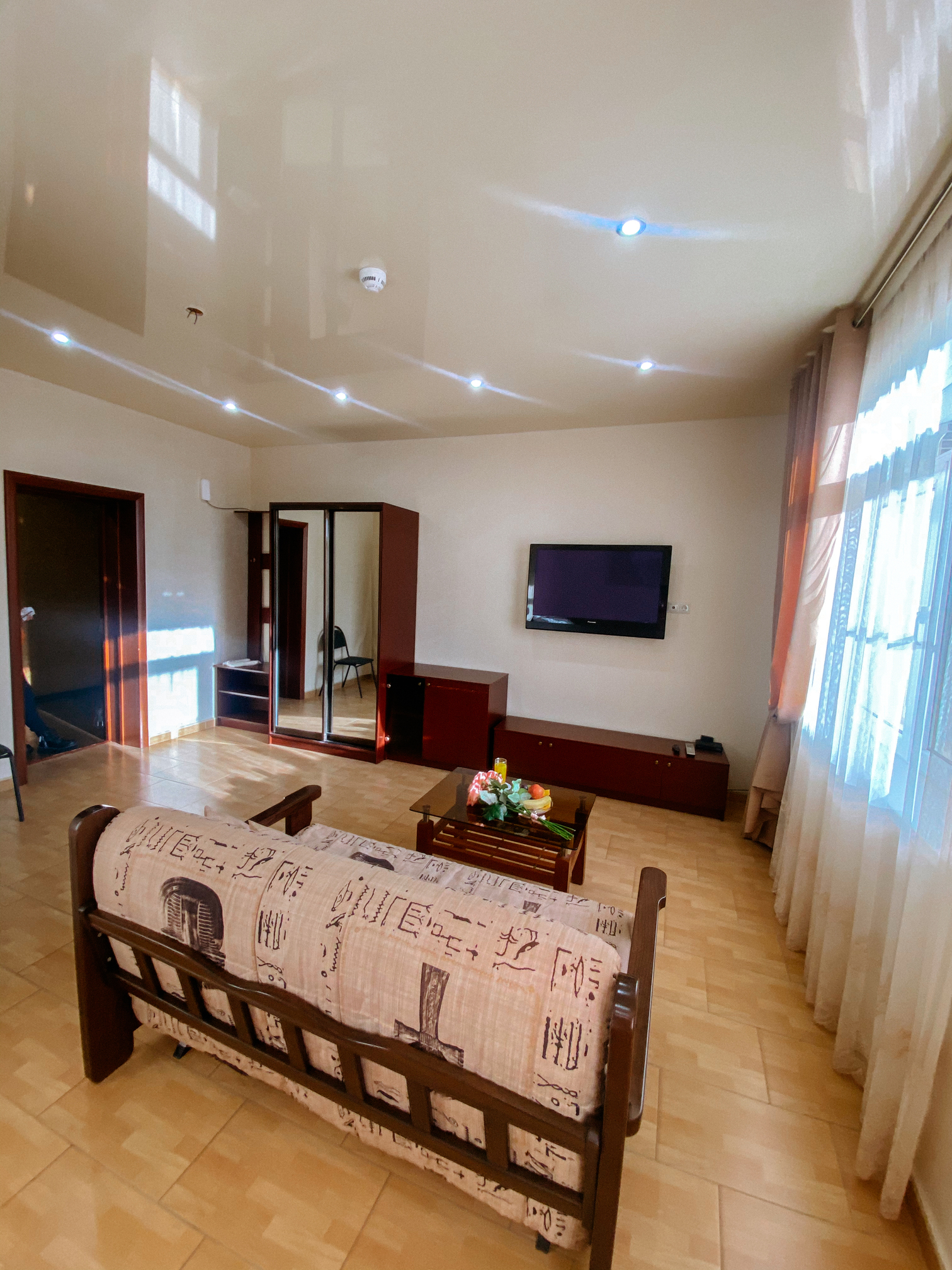 В номере: вешалка, зеркало, кровать двуспальная, стол, стулья, шкаф-купе, кондиционер, мини-холодильник, набор посуды, телевизор ЖК, электрочайник