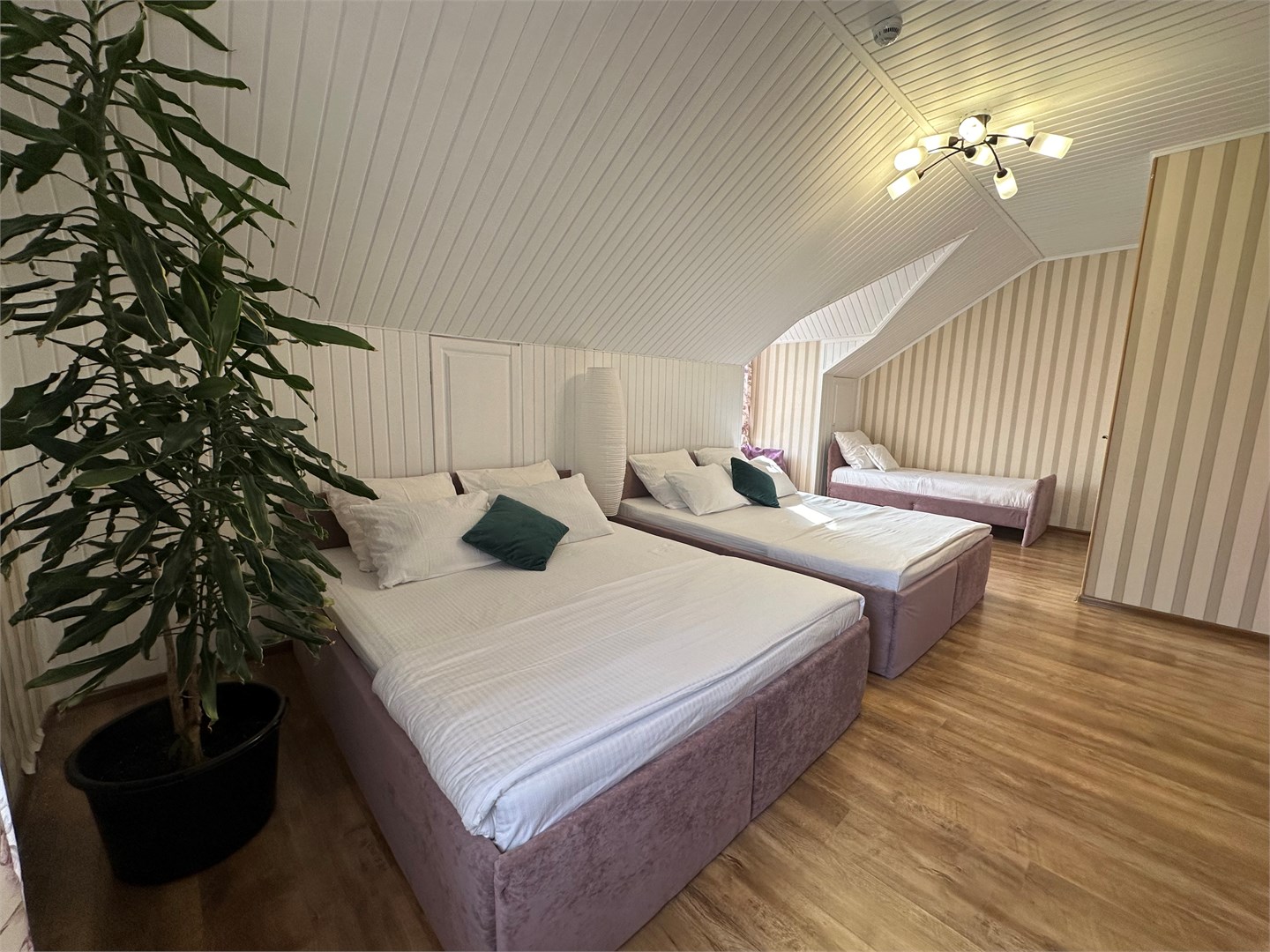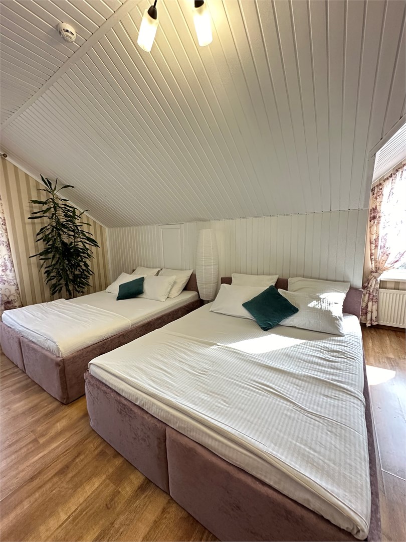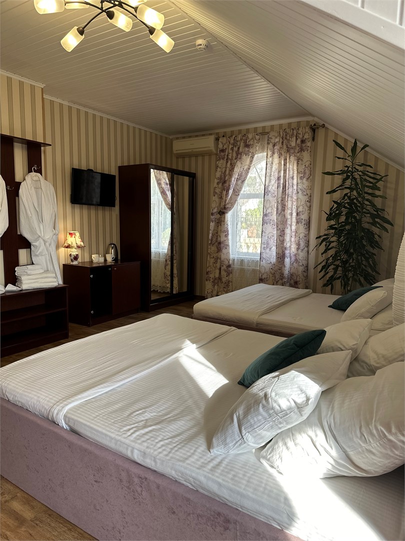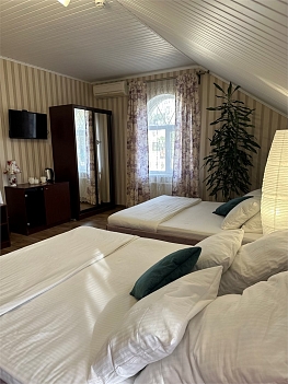 В номере: вешалка, зеркало, кровати односпальные /одна двуспальная кровать, стол, стулья, шкаф, кондиционер, мини-холодильник, набор посуды, телевизор ЖК, электрочайник