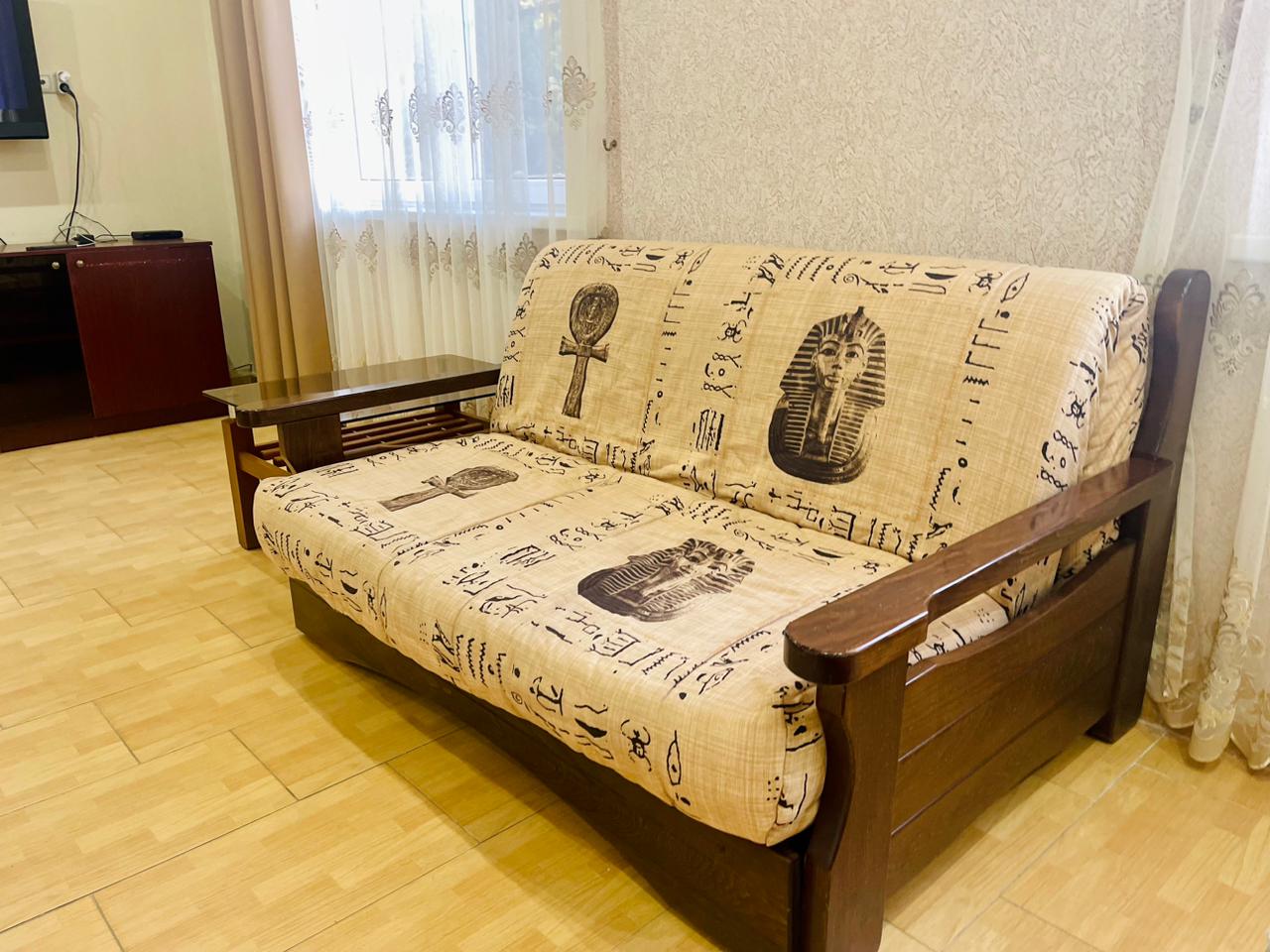 В номере: вешалка, диван, зеркало, кровати односпальные /одна двуспальная кровать, прикроватные тумбочки, столик журнальный, шкаф, кондиционер, мини-холодильник, набор посуды, телевизор ЖК, электрочайник