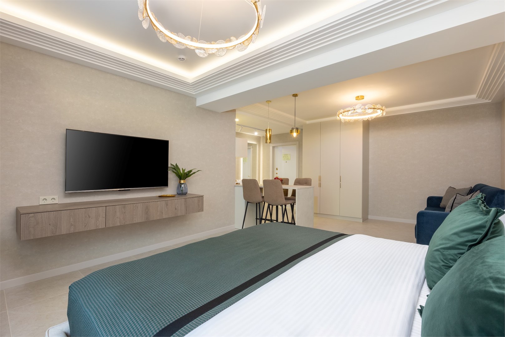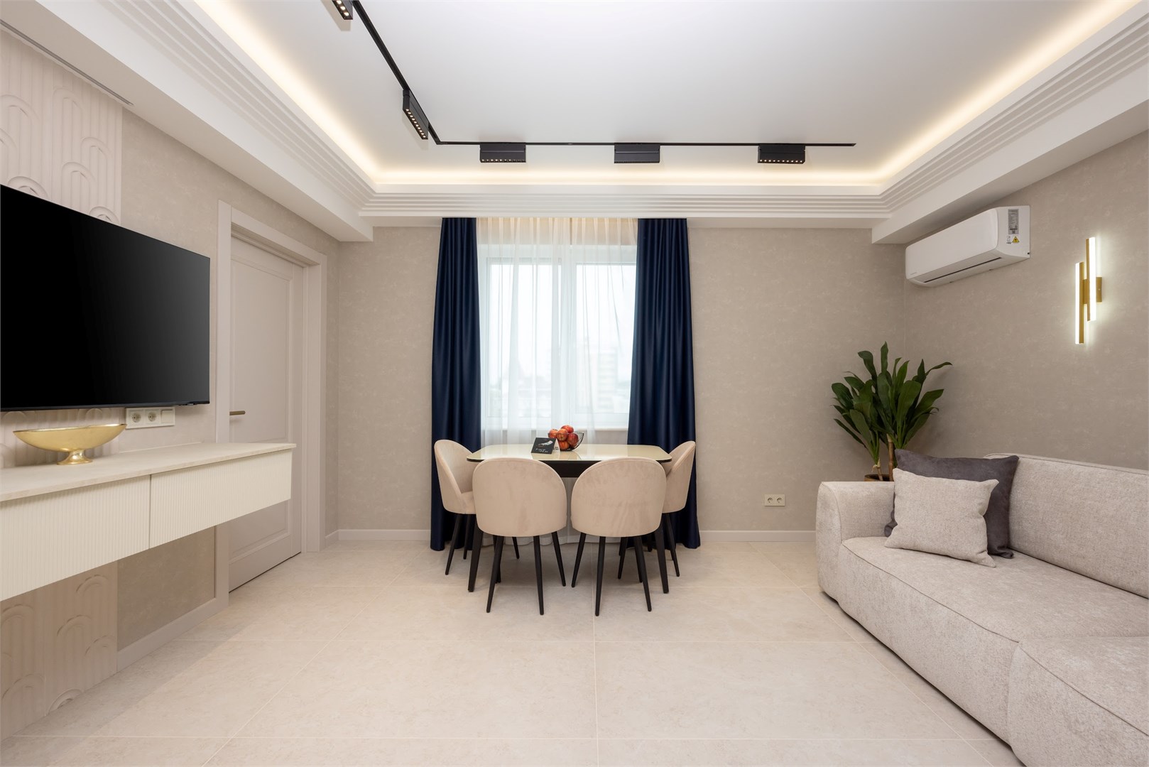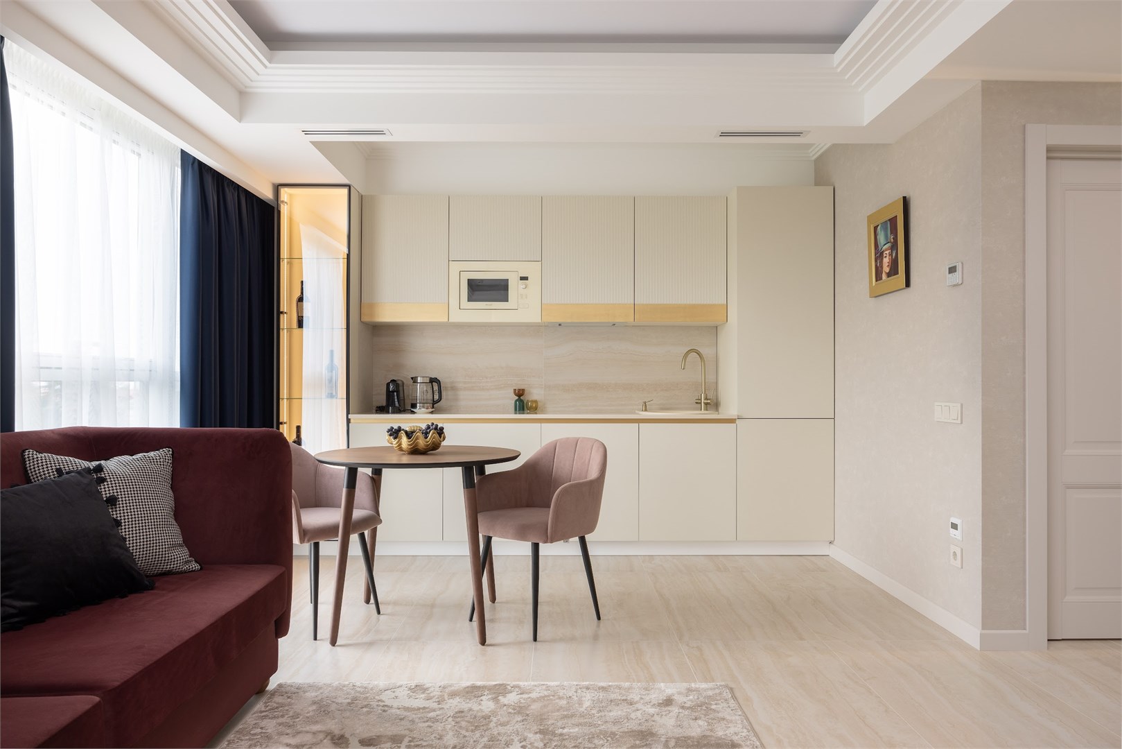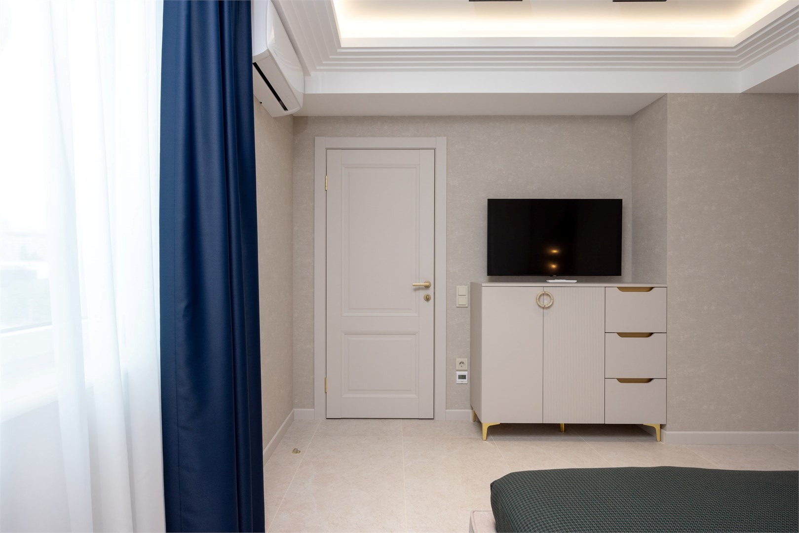 Море тут близко — до него всего чуть более 100 м. Рядом вся инфраструктура: кафе, рестораны, магазины, скверы, пляжи, банки, сувениры, остановки общественного транспорта, набережная.В элегантных апартаментах созданы все условия для комфортного пребывания — есть удобная, современная мебель, санузел с душевой кабиной, феном и косметическими средствами, кондиционер, мини-холодильник, телевизор, утюг, гладильная доска, чай/кофе, посуда, кофеварка, чайник, микроволновая печь, сейф, мини-бар. Уборка — в определённые дни. У каждого гостя персональный доступ в интернет по сети Wi-Fi.Для гостей на машине есть возможность оставить её на парковке около апарт-отеля. К услугам постояльцев: прачечная, камера хранения, ускоренная регистрация заезда/отъезда.Апарт-отель обеспечивает исключительный сервис и индивидуальный подход к каждому гостю.