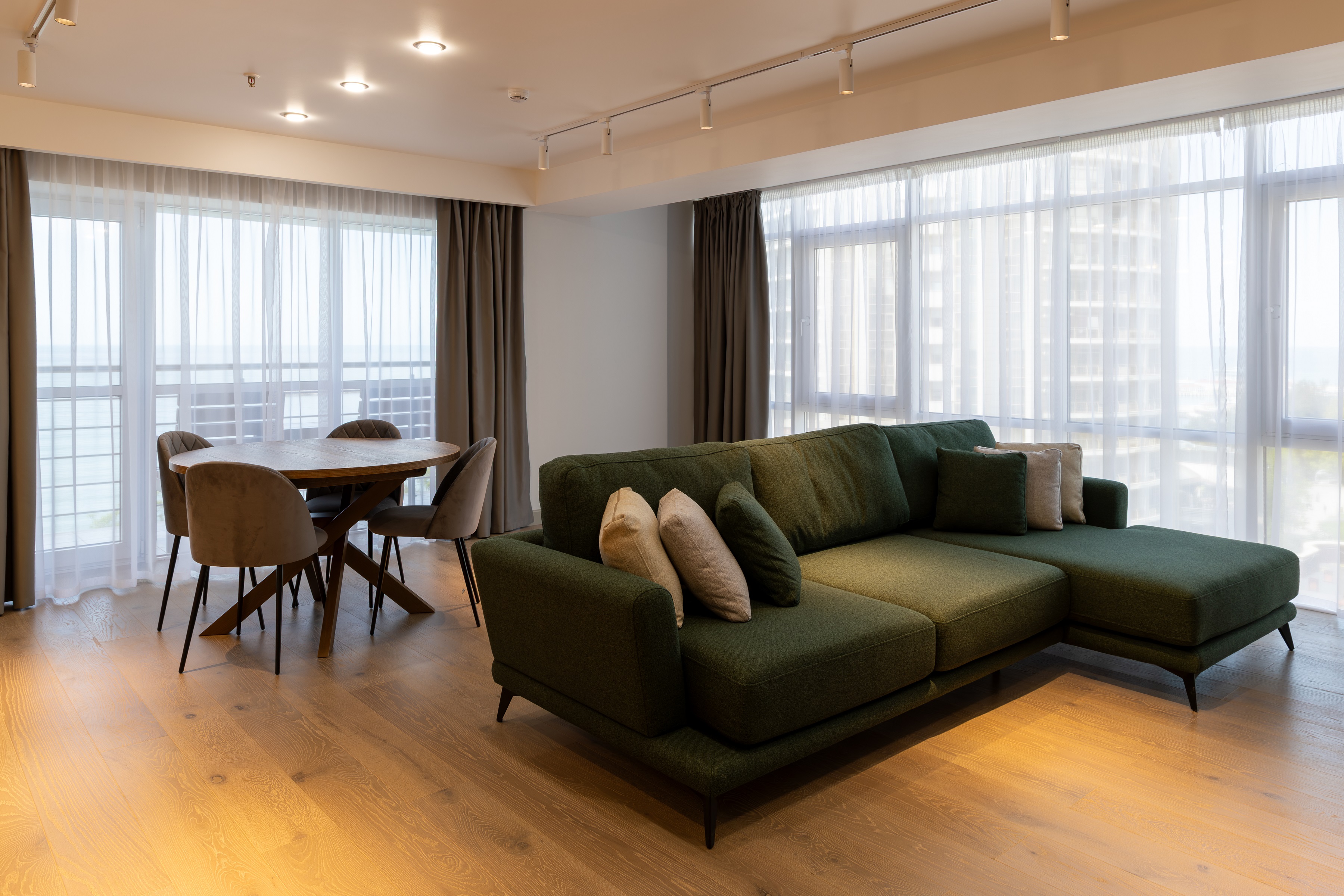 В номере: кровать двуспальная, кровать раскладная, прикроватные тумбочки, стол, стулья, шкаф, кофемашина, мини-холодильник, сейф, сплит-система, телевизор ЖК, чайная станция, чайный набор посуды