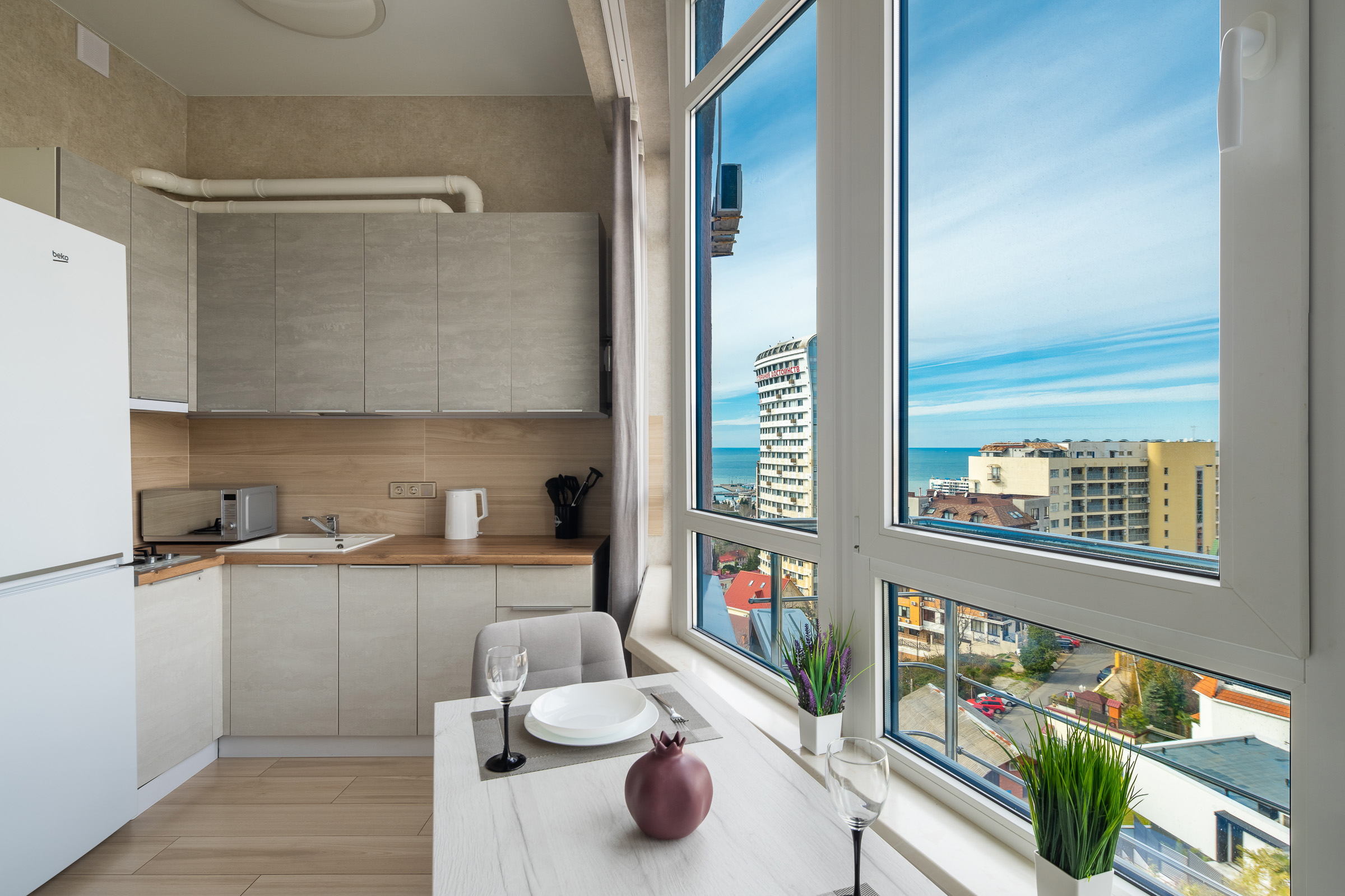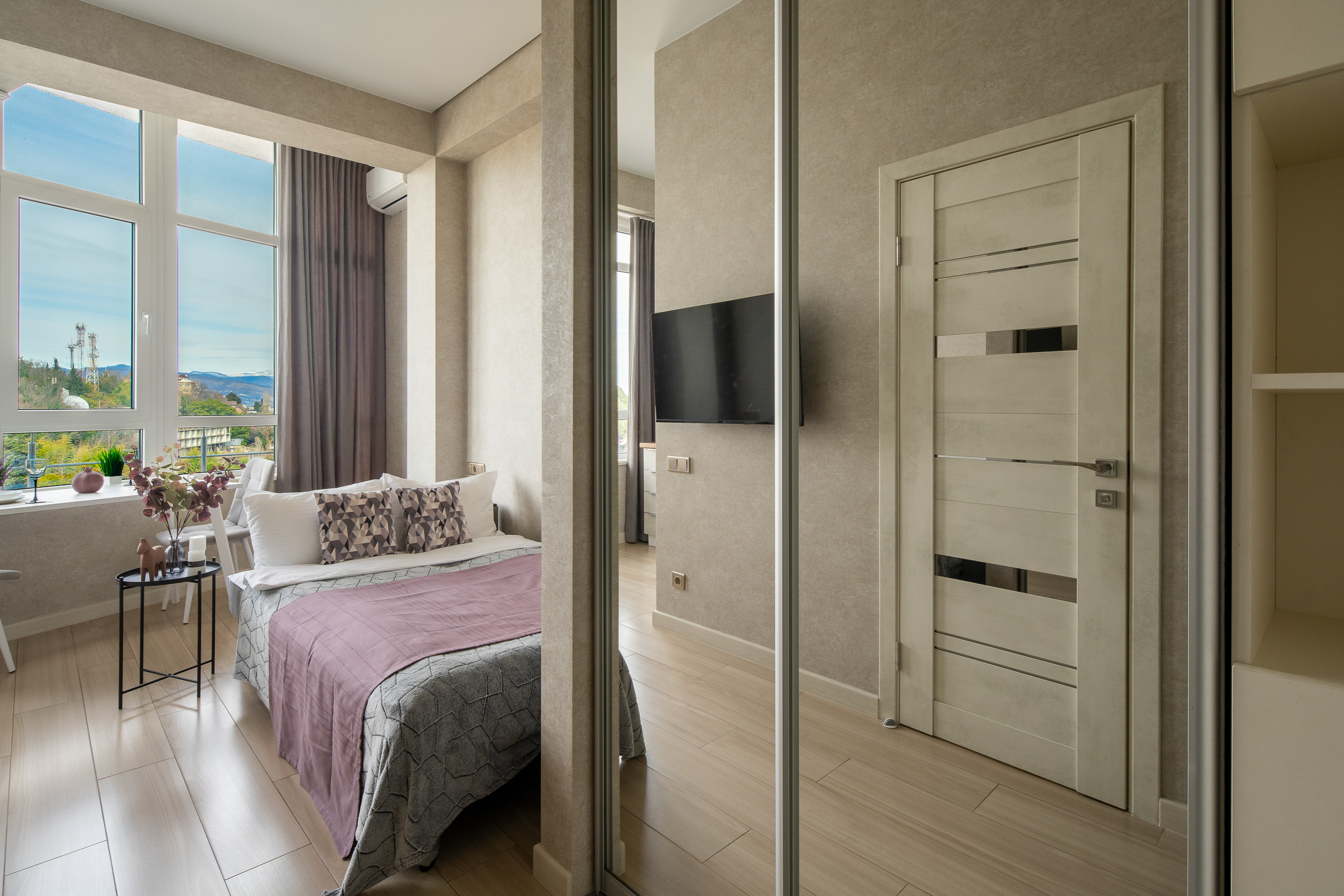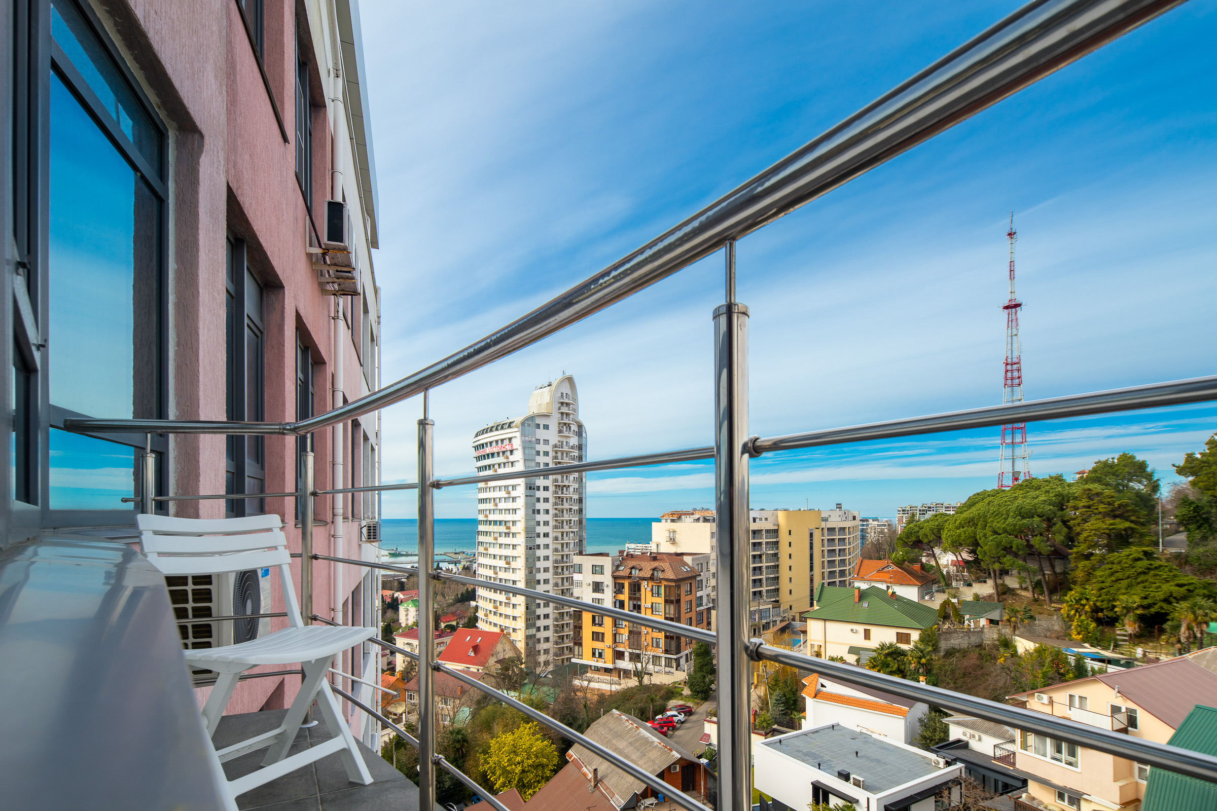 Апартаменты с видом на море и горы находятся в центре Сочи. Уютная Студия с продуманной планировкой и балконом размещает до 3 гостей и прекрасно подходит для семьи с ребенком.Удачная локация обеспечит гостям незабываемый отдых. До моря 15 минут пешком, ближайший самый благоустроенный пляж Маяк, рядом Морской порт, Приморская набережная с променадом, Торговая галерея, Зимний театр, Художественный музей, парк Ривьера, а также множество кафе, магазинов, спа-центров и салонов красоты.