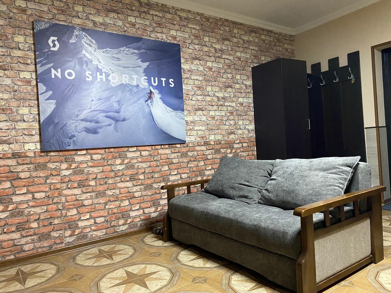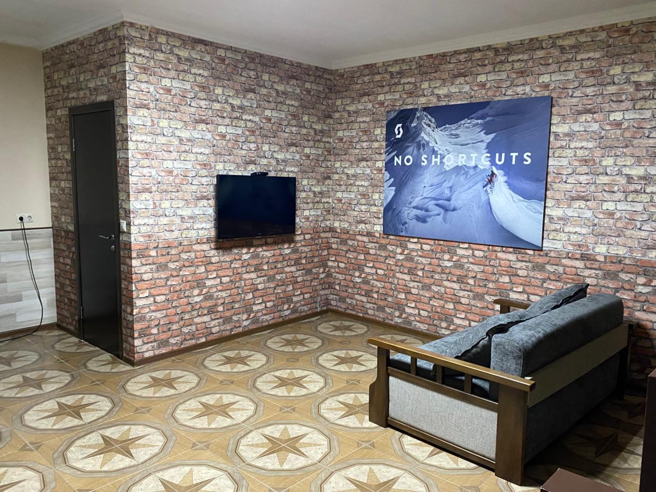 В номере: вешалка, диван раскладной, кровать двуспальная, стол, стулья, шкаф, кондиционер, микроволновая печь, набор посуды, плита газовая, телевизор ЖК, холодильник, чайник