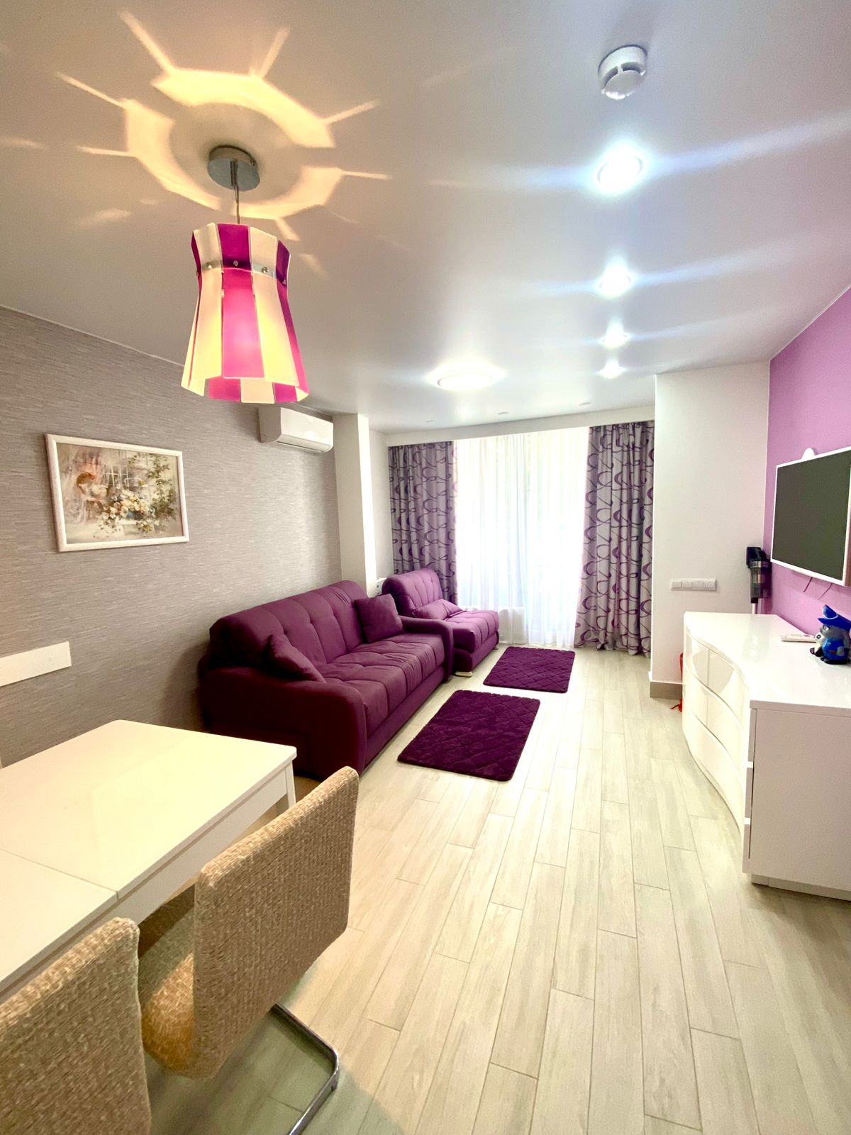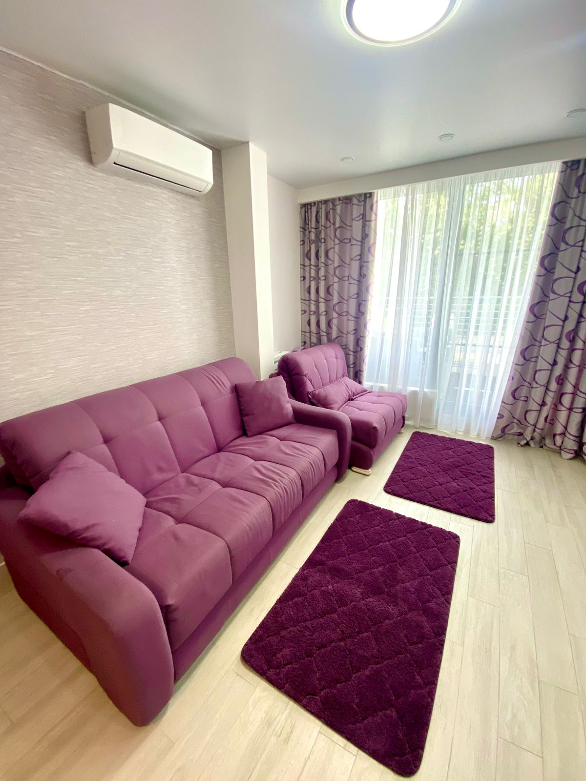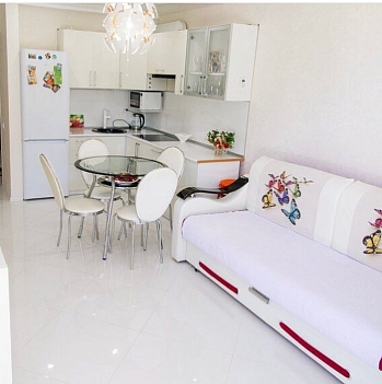 Территория закрытая, охраняется круглосуточно.Номер укомплектован двуспальной кроватью, тремя раскладными диванами и вмещает до 8 гостей. Функциональная кухня оснащена рабочей зоной для приготовления еды и обеденной группой. В наличии вся необходимая бытовая техника, включая кондиционеры и телевизоры в каждой комнате, посудомоечную и стиральную машины. Оборудованы теплые полы. Совмещенный санузел дополнен хаммамом. Есть выход на панорамную террасу с летней мебелью. Можно подключиться к Wi-Fi. Апартаменты предоставляют возможность заселиться с домашним питомцем.На территории ЖК расположены зоны отдыха, сезонный бассейн, детская площадка, парковка. У постояльцев также есть возможность пользоваться инфраструктурой и закрытым оборудованным пляжем соседнего апарт-отеля «Адажио». Морской берег в Дагомысе галечный. Есть зонты, лежаки, кабинки для переодевания, водные развлечения. На набережной работают многочисленные кафе и магазины, оснащены прогулочные зоны и места для отдыха.