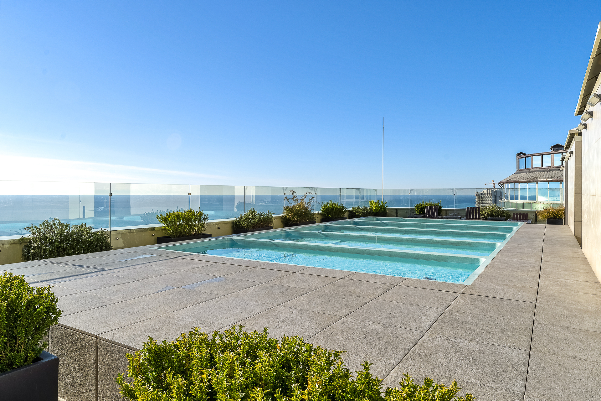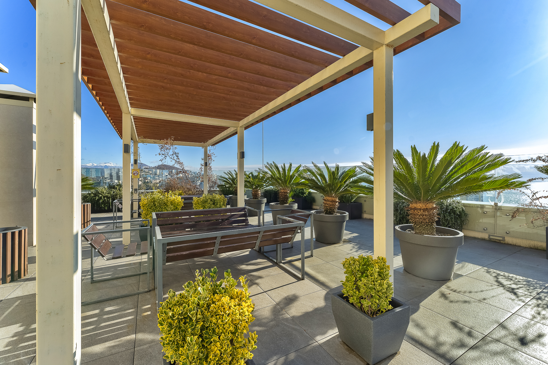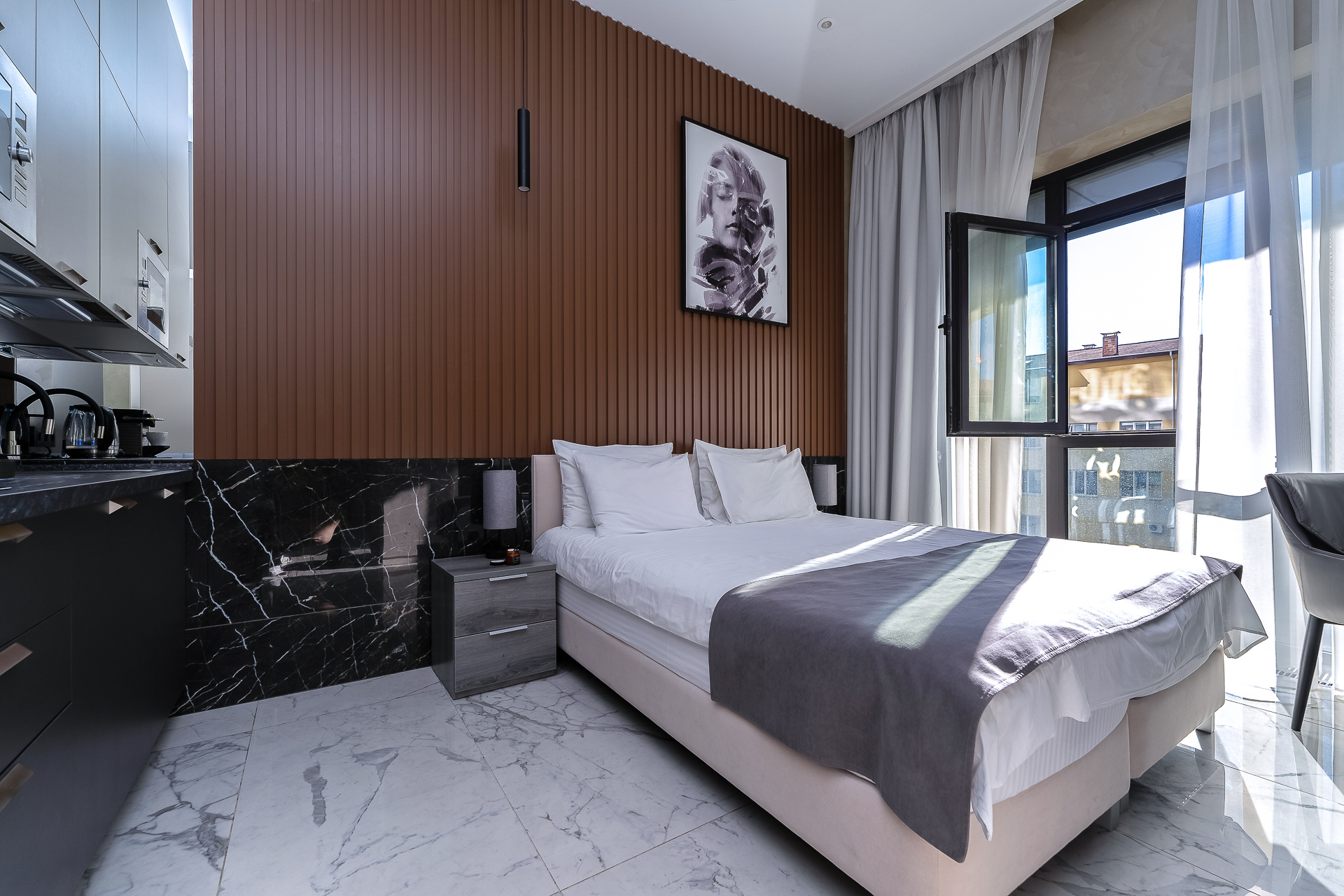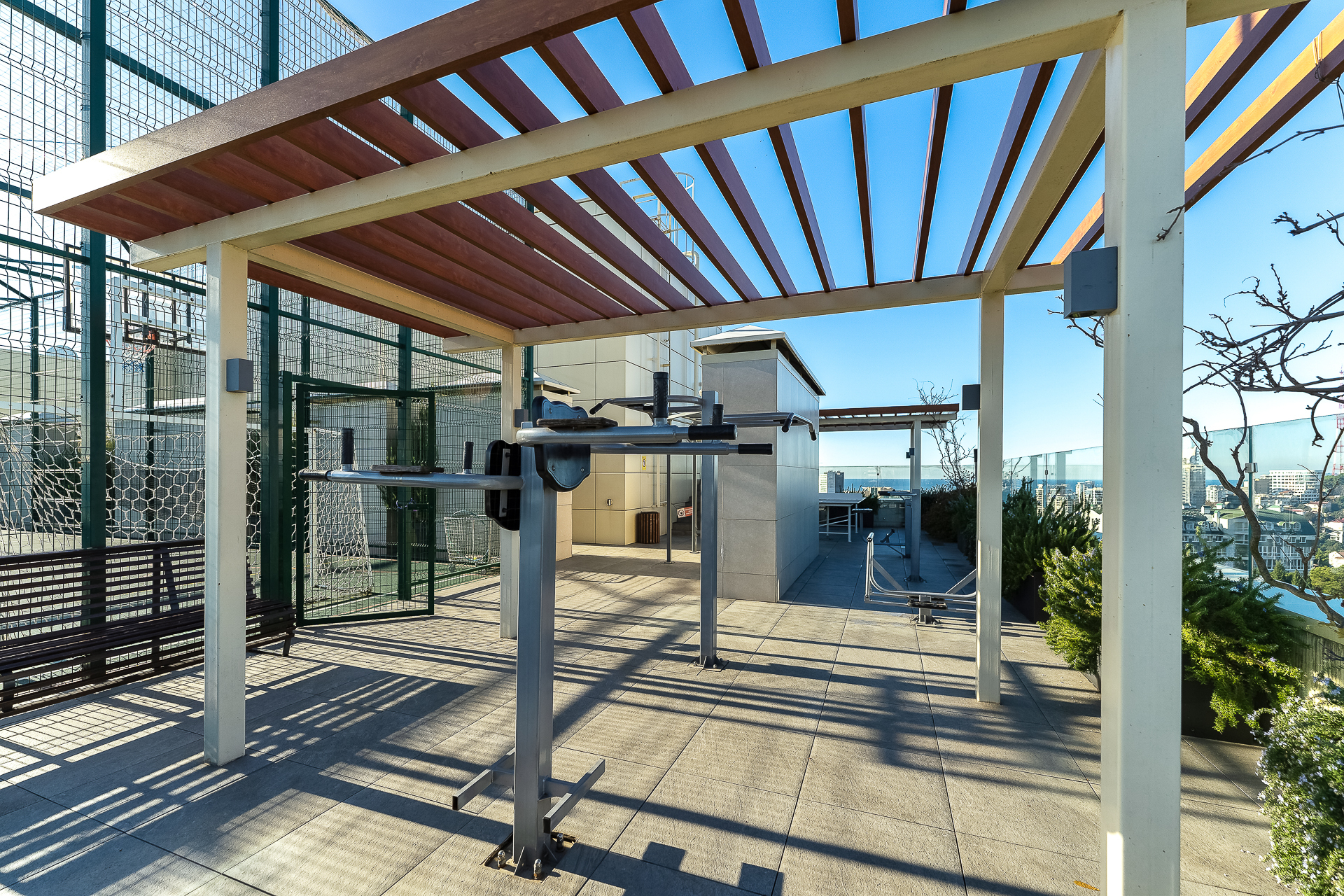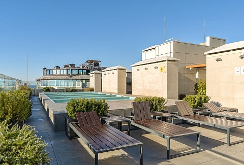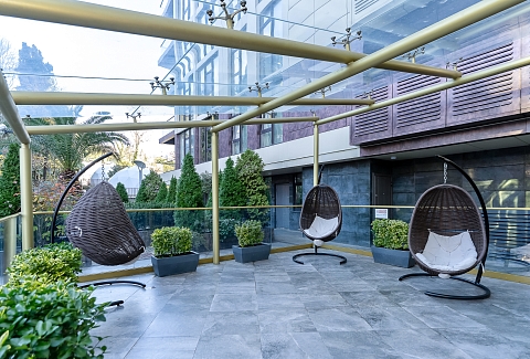 До Морского вокзала можно дойти за четверть часа. Прямо напротив комплекса — рестораны и кафе на любой вкус, а также гипермаркет «Перекрёсток», «Красное&Белое» и пункты выдачи Ozon и Wildberries, что делает отдых максимально автономным. Транспортная доступность также безупречна. Остановка «Светлана» находится в трёх минутах ходьбы, откуда можно быстро добраться до Платановой аллеи, парка «Ривьера» и Железнодорожного вокзала.Для гостей подготовлен номер Студия, который продуман до мелочей. В ней предусмотрено абсолютно всё для беззаботного проживания: от белоснежного постельного белья, пушистых полотенец и уютных халатов до комплектов для персональной гигиены. Безопасность гостей стоит на первом месте: круглосуточная охрана и система видеонаблюдения в комплексе следят за спокойствием всех гостей.Входная группа комплекса встречает гостей гостеприимством, а уже внутри открывается целый мир продуманной инфраструктуры. Поднимаясь на верхнюю платформу, попадаешь на смотровую площадку с панорамой 360 градусов — отсюда открываются захватывающие дух виды на морскую гавань с яхтами, сверкающий Олимпийский парк, зелёный массив парка «Дендрарий» и величественные вершины Главного Кавказского хребта. Здесь же, под открытым небом, расположилась купальная зона с подогреваемыми ваннами и удобными шезлонгами, где можно расслабиться после долгих прогулок. Для тех, кто не мыслит отдыха без движения, работают спортивные площадки для баскетбола, большого и настольного тенниса, а также современные тренажёры. Открытая терраса зовёт поработать с ноутбуком на свежем воздухе или провести вечер за настольными играми, пока дети резвятся на отдельной игровой площадке.Нижняя платформа комплекса — это оазис для неспешного общения и уединения. Здесь, в тени зелёных насаждений, покачиваются подвесные качели, а свежий фонтан наполняет воздух прохладой. Основная детская площадка и зона ожидания на открытом воздухе, а также внутри зоны ресепшен, созданы для того, чтобы каждая минута пребывания в «Метрополе» была комфортной.