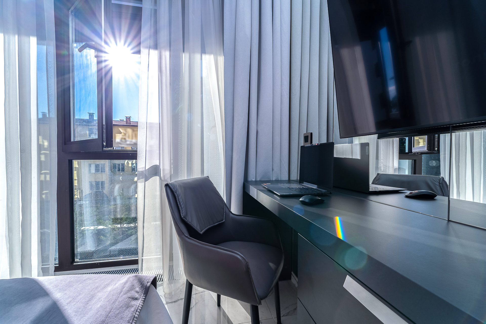 Апартаменты расположены в самом сердце Сочи, в современном жилом комплексе «Метрополь». Всего за пять минут можно оказаться у Сочинского цирка, за семь — у входа в Дендрарий. Центральные пляжи и шумная набережная ждут через семь минут неспешной ходьбы, а величественный Зимний театр распахнёт свои двери уже через десять минут.