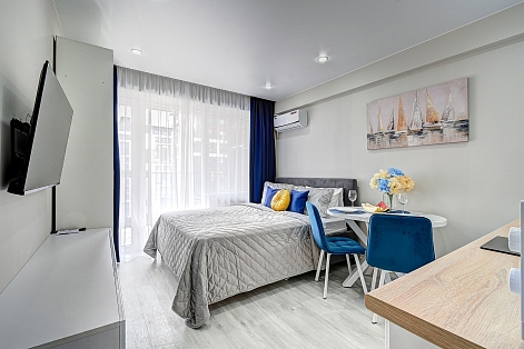 Современные апартаменты «МореСолнцеАпарт в ЖК Каравелла Португалии» расположены на территории курорта Дагомыс, в нескольких минутах ходьбы от пляжа. Осуществляется пропускной режим, охрана, видеонаблюдение.Апартаменты-студио с мини-кухней оборудованы: кондиционером, телевизором со Smary TV, холодильником, варочной панелью, микроволновой печью, чайником, посудой, стиральной машиной, утюгом, гладильной доской, интернетом Wi-Fi, санузлом с душевой кабиной, феном.На территории жилого комплекса есть: взрослый и детский бассейны, спортивные площадки, тренажеры на улице, настольный теннис, территория для пробежек, детская игровая площадка, кафе с завтраками, бар у бассейна.Рядом с апартаментами: магазины у выходов из комплекса, вокруг комплекса продуктово-вещевой рынок, столовые, магазинчики, кафе, рестораны с вечерней программой. Набережная современная, недавно проведена реконструкция.На пляже для посетителей предусмотрены: широкая полоса с галькой, навесами, шезлонгами, лежаками, с lounge-зонами, вечерние кафе с пуфиками и кальяном, прогулки на яхте, бананы и еще много развлечений для детей и взрослых.