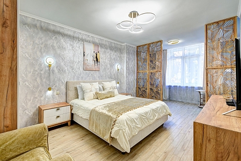 Трехкомнатные апартаменты находятся на 1 этаже и имеют максимальную комплектацию всем необходимым для комфортного проживания. Изюминкой жилья является просторный балкон, где установлен телескоп, который позволит наблюдать за небесными светилами.До ближайшего галечного пляжа — всего 20 минут пешком, который находится на территории санатория «Салют». Любителям песчано-галечного покрытия подойдёт пляж «Альбатрос» — до него всего 7 минут на автомобиле или 40 минут прогулочным шагом. На пляже гостей ждёт множество развлечений: аренда шезлонгов и зонтов, водные аттракционы, экскурсионные туры, сувенирные лавки и многое другое.