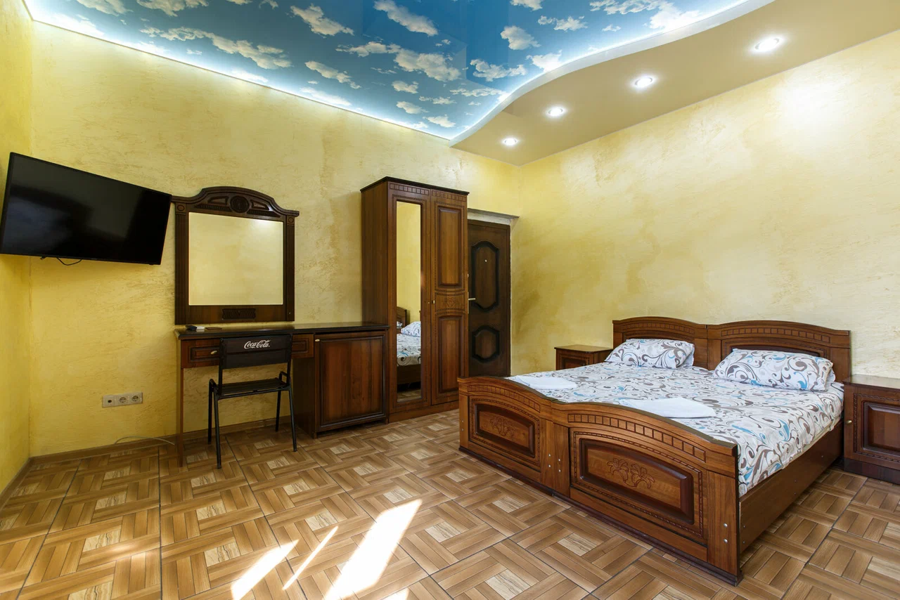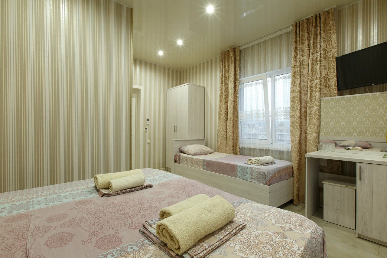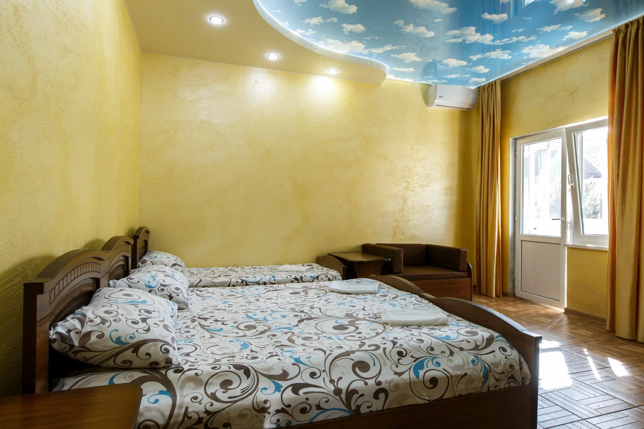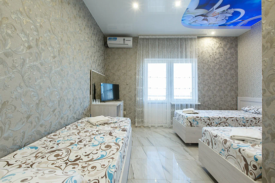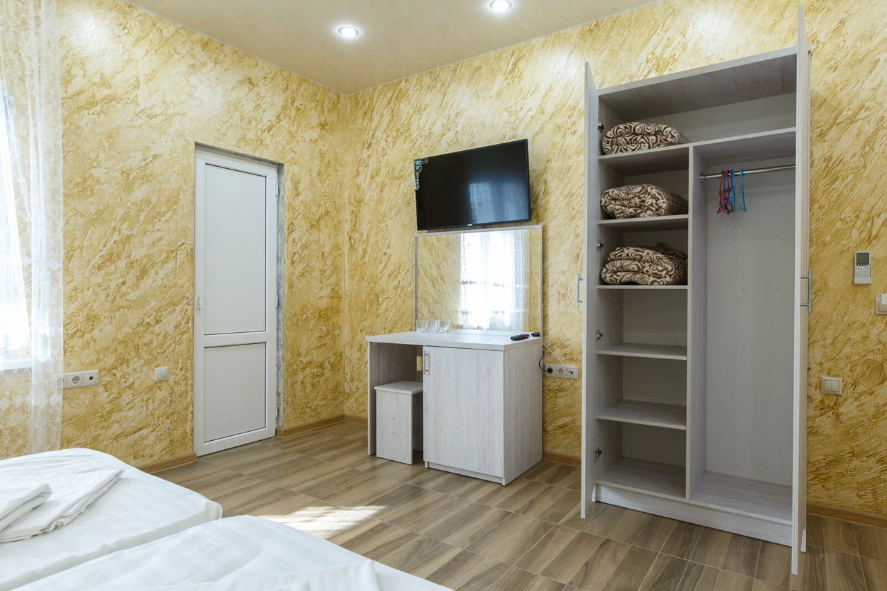 В номере: диван раскладной, зеркало, кровати односпальные /одна двуспальная кровать, стол, стул, шкаф, кондиционер, телевизор ЖК, холодильник