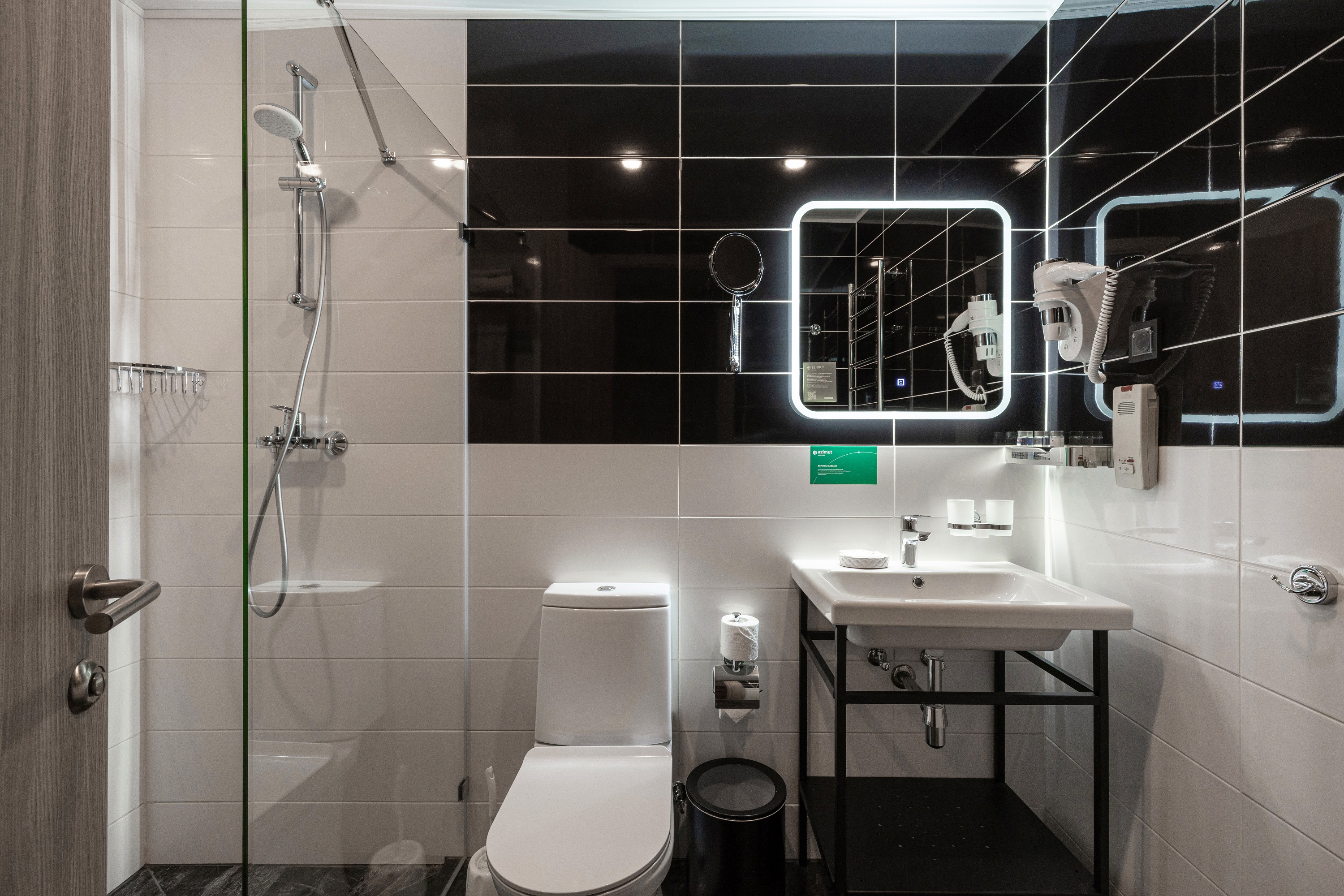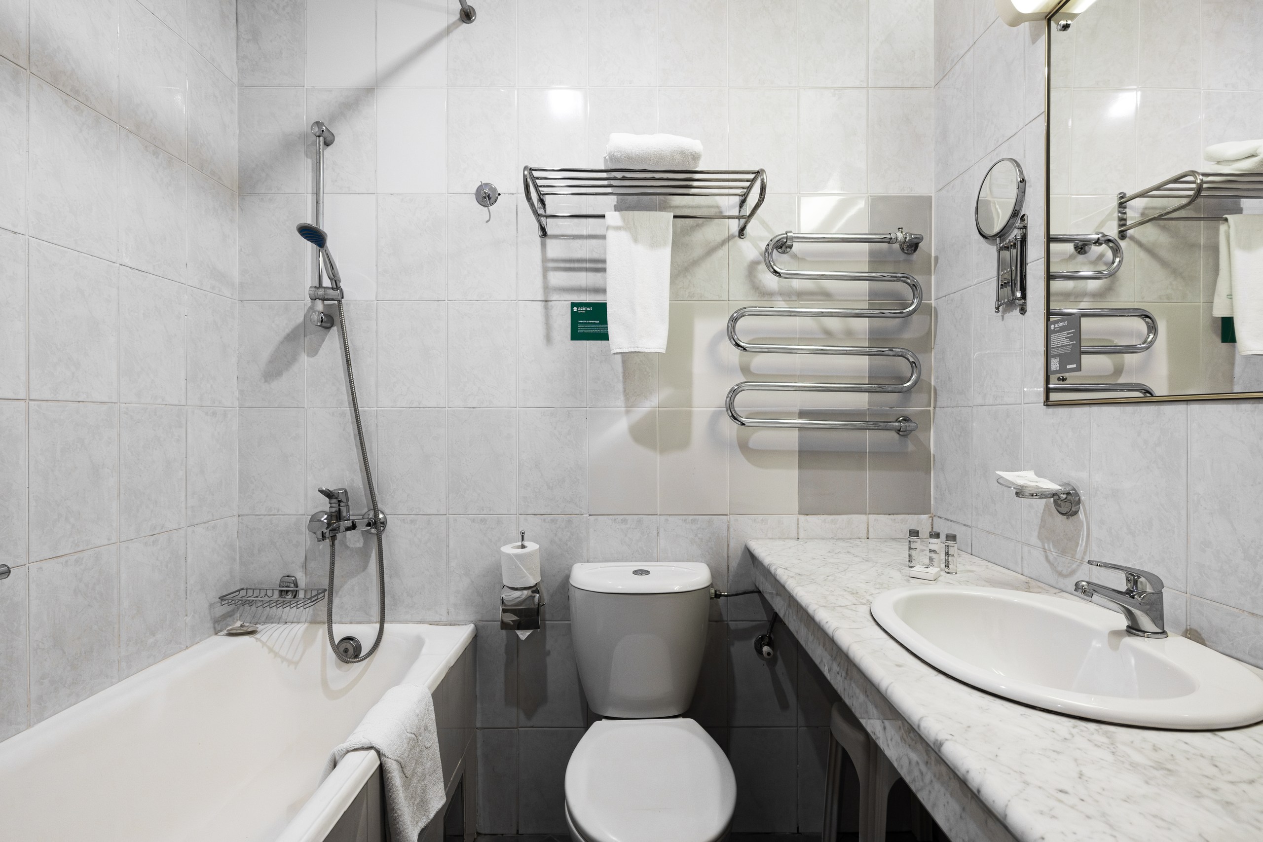Санузел: с душем, туалетные принадлежности, фен, халат