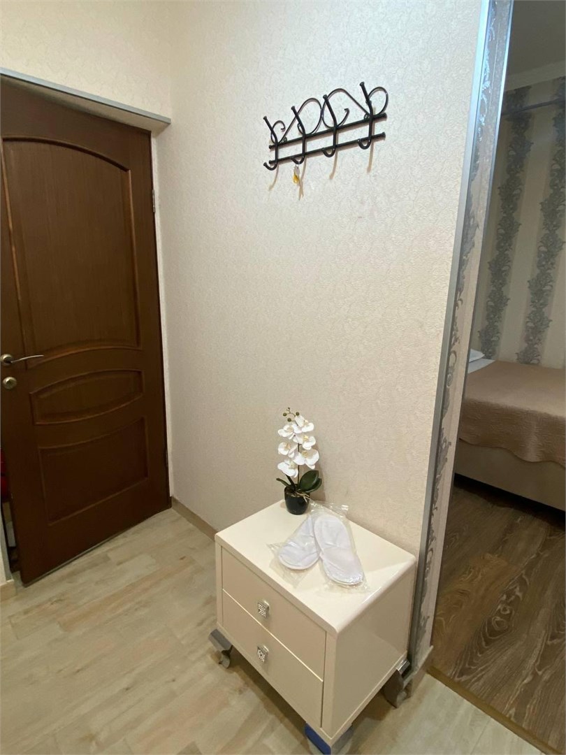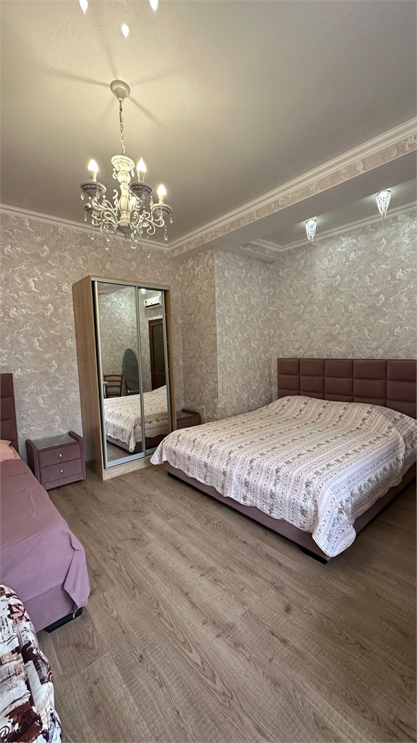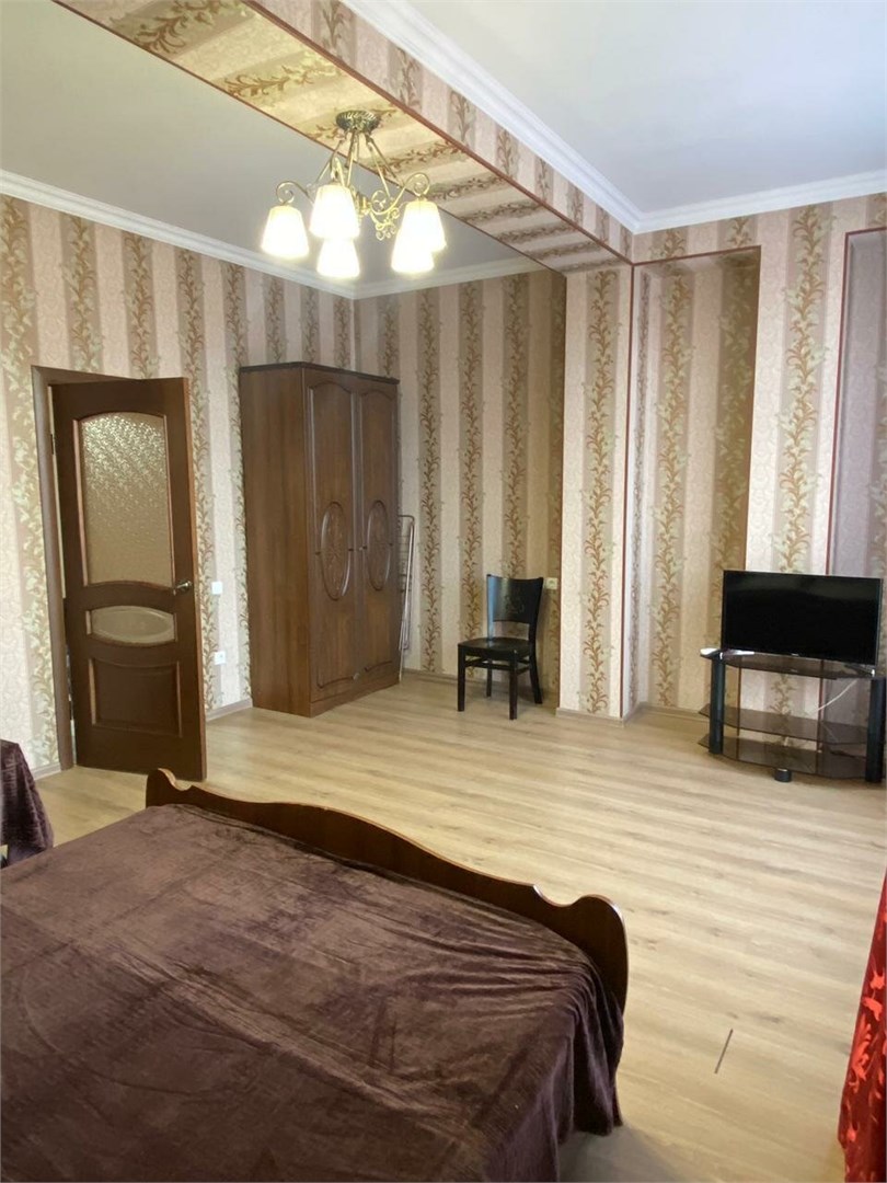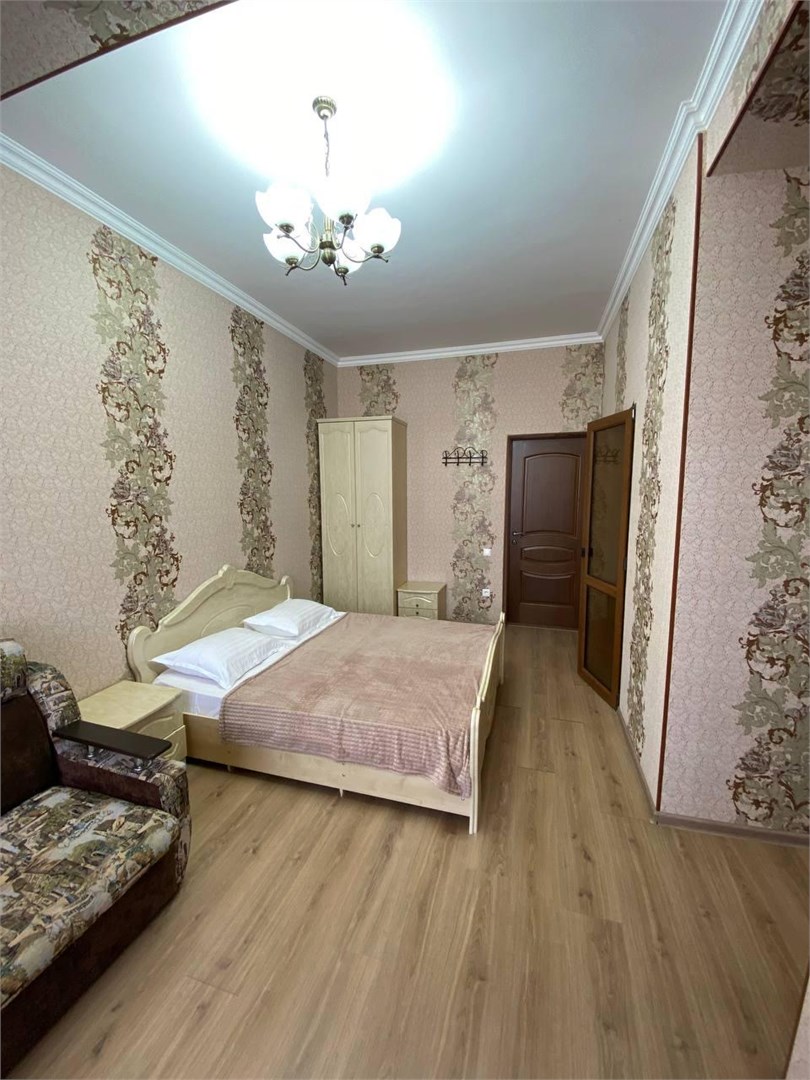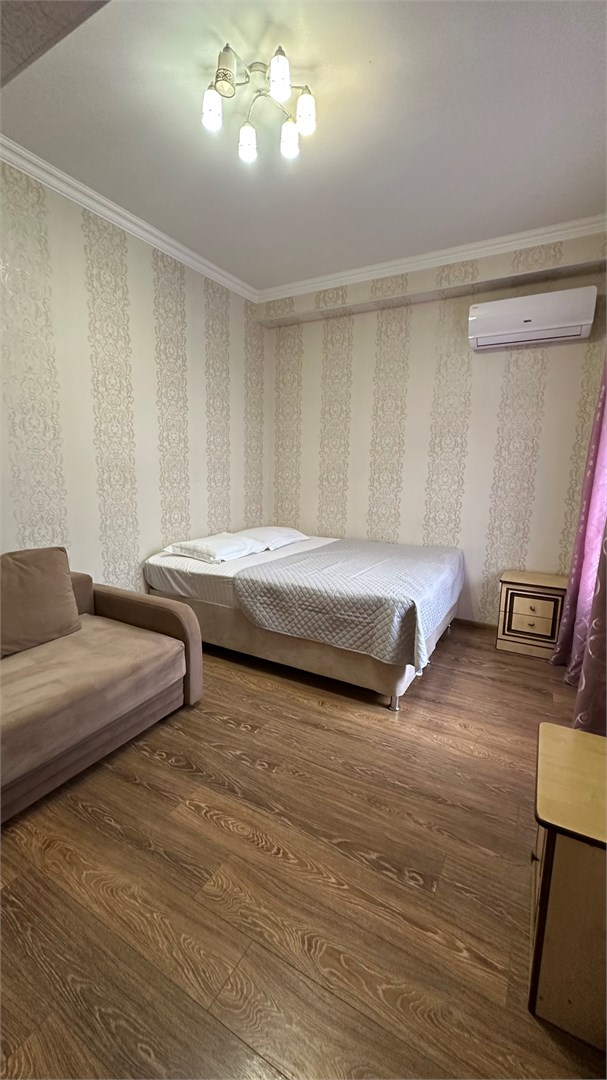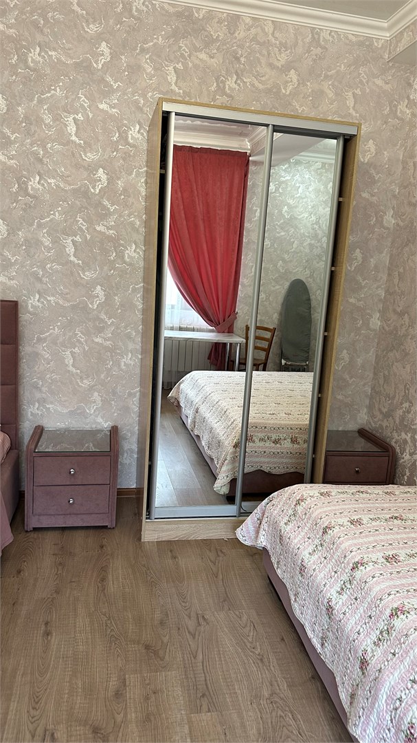 В номере: диван раскладной, зеркало, кровать двуспальная, прикроватные тумбочки, стол, стулья, шкаф, кондиционер, микроволновая печь, набор посуды, плита индукционная, сушилка для белья, телевизор, холодильник, чайник