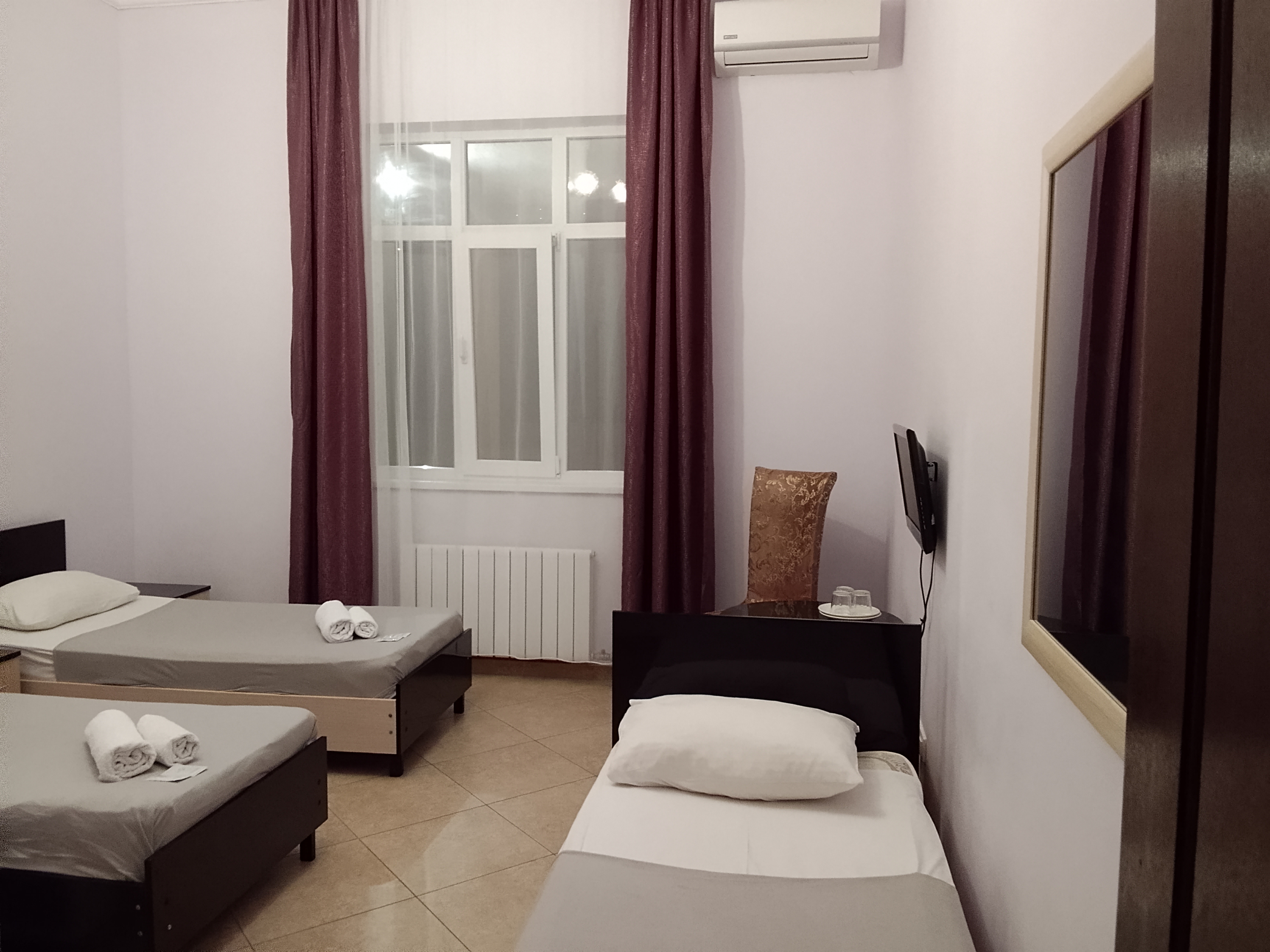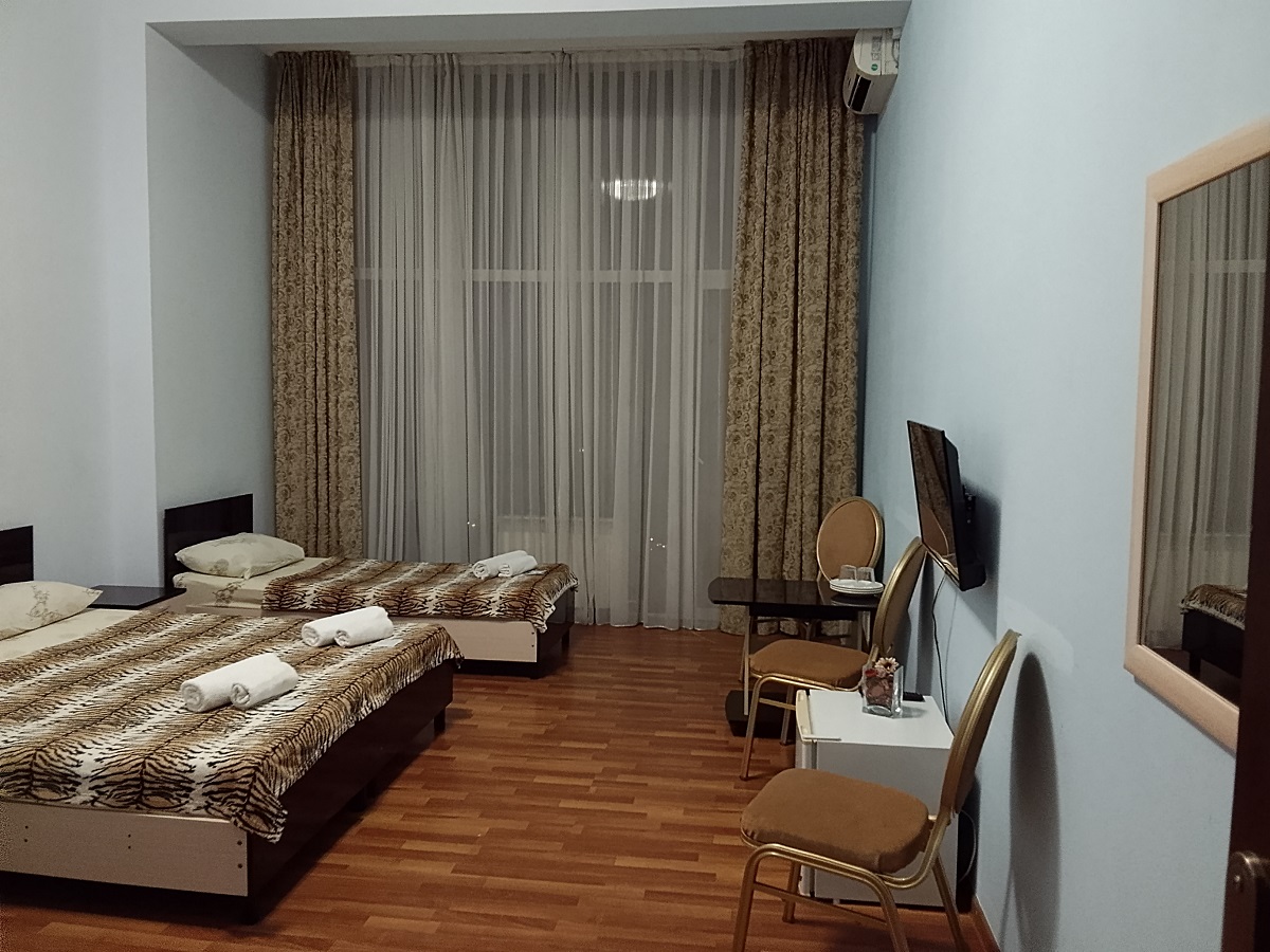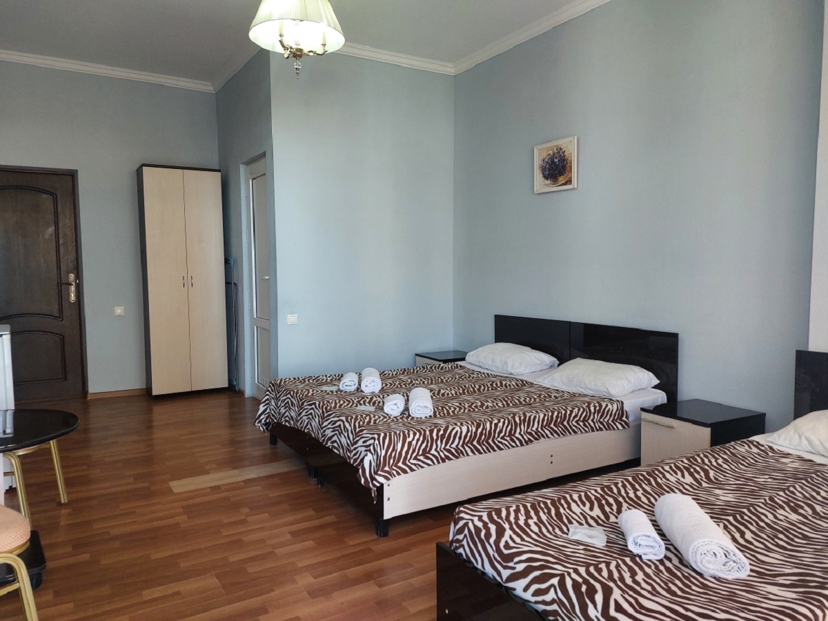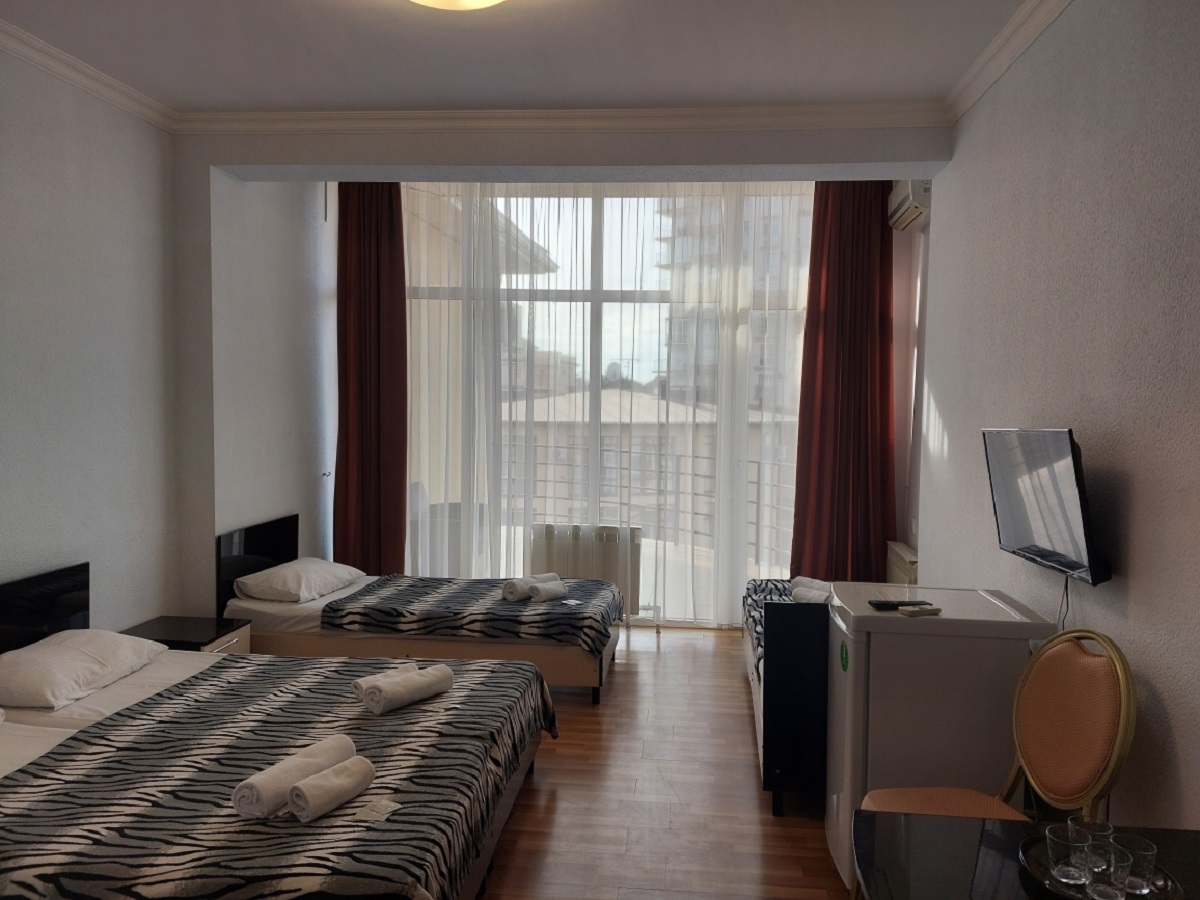 Жилой фонд включает в себя стандартные двух и трехместные номера. В каждом есть автономный санузел, панорамные окна, кондиционер, а в некоторых комнатах имеются балконы.Для отдыхающих открыт уличный бассейн, для автовладельцев доступна парковка, оснащенная видеокамерами. В 15 минутах ходьбы – городской галечный пляж. На побережье есть раздевалки, теневые навесы, зонтики и шезлонги.
