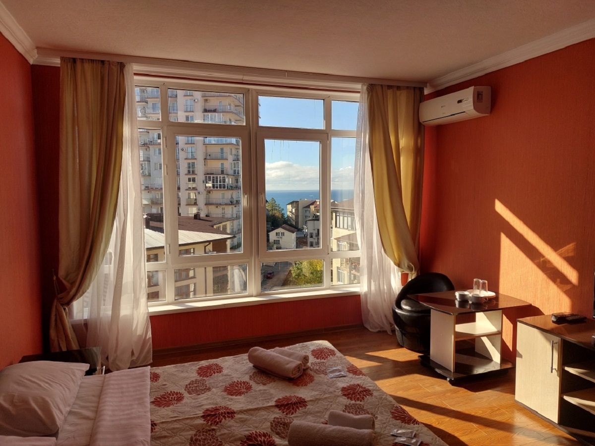 Самолетом до аэропорта г. Сочи, далее на автобусе №105с до остановки «Сбербанк», далее на автобусе №30 до остановки «ул. Стартовая», далее 490 м до отеля.