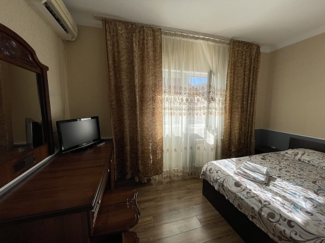 В номере: зеркало, кровати односпальные /одна двуспальная кровать, прикроватные тумбочки, шкаф, кондиционер, мини-холодильник, телевизор ЖК