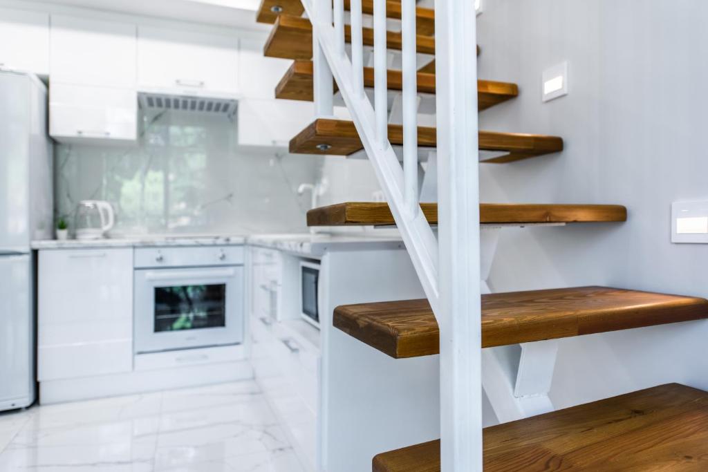 В номерах есть все необходимое для длительного отдыха: санузел с душем, мини-кухня, оборудованная посудой и бытовой техникой, включая электрическую плиту и стиральную машину, также в комнатах есть кондиционер и плазменный телевизор. В апартаментах доступен беспроводной интернет.В 10 минутах ходьбы — благоустроенный пляж «Мандарин». На галечном побережье установлены навесы, шезлонги, лежаки, работают кафе, большой выбор водных развлечений и аттракционов.